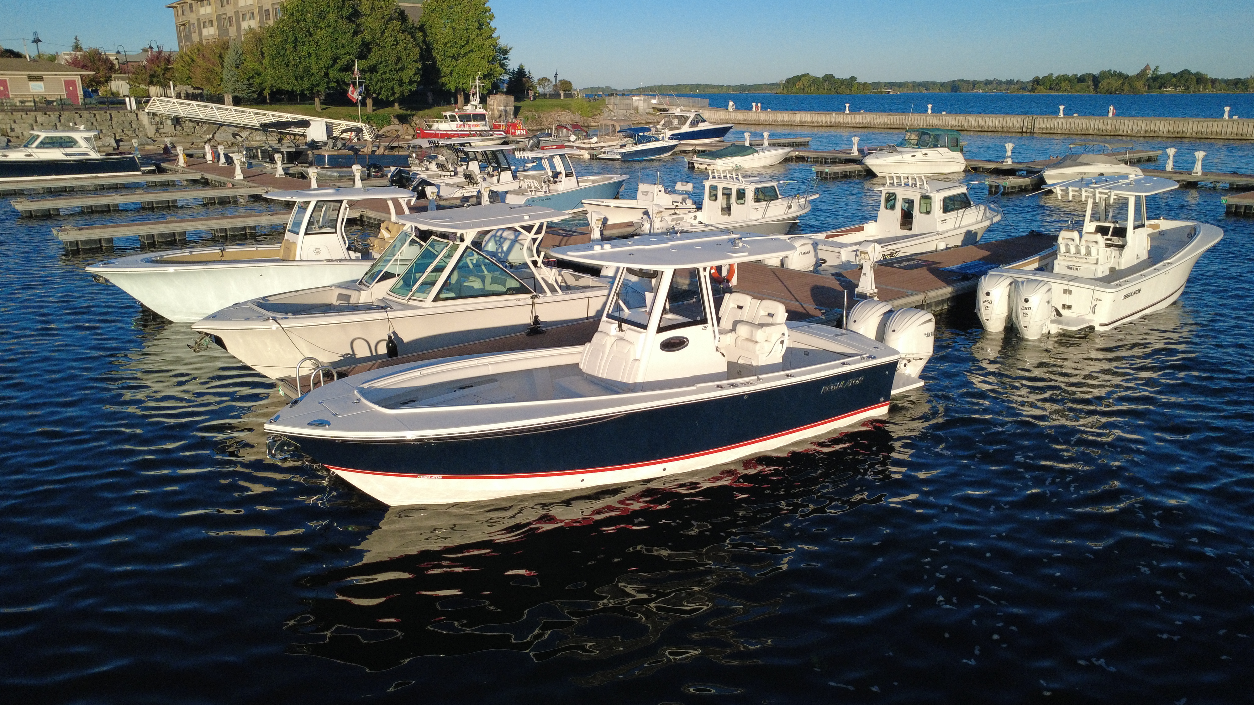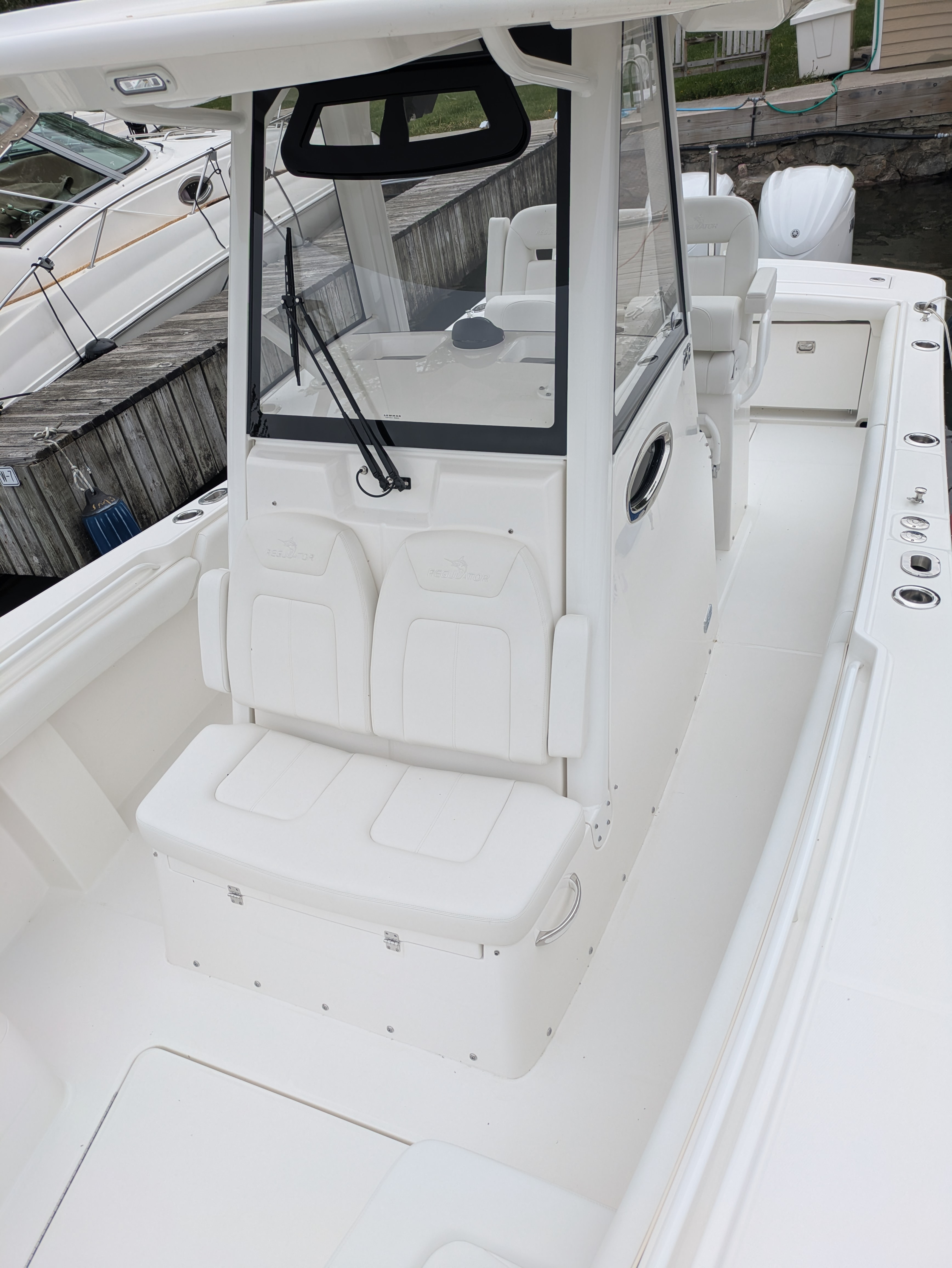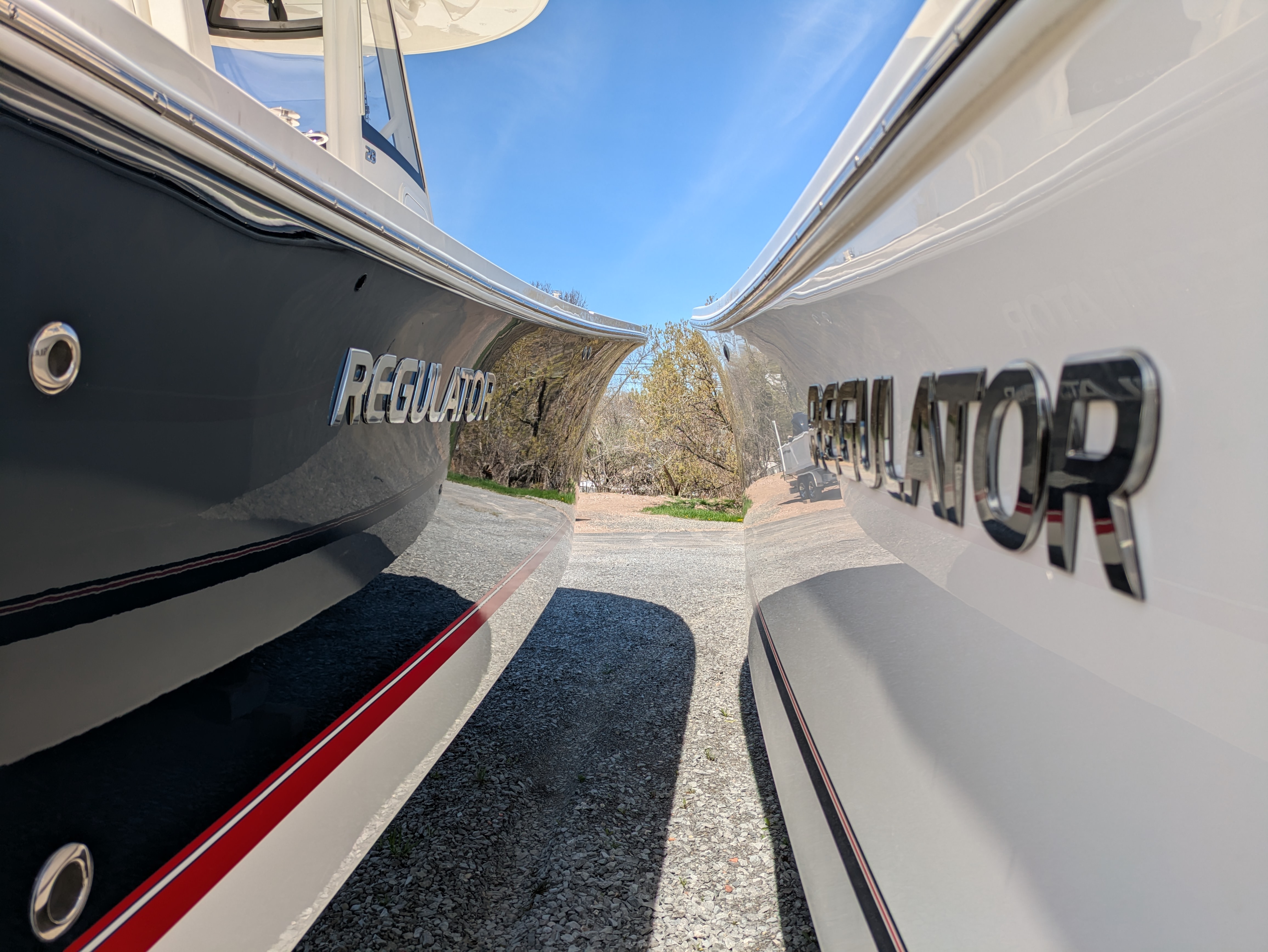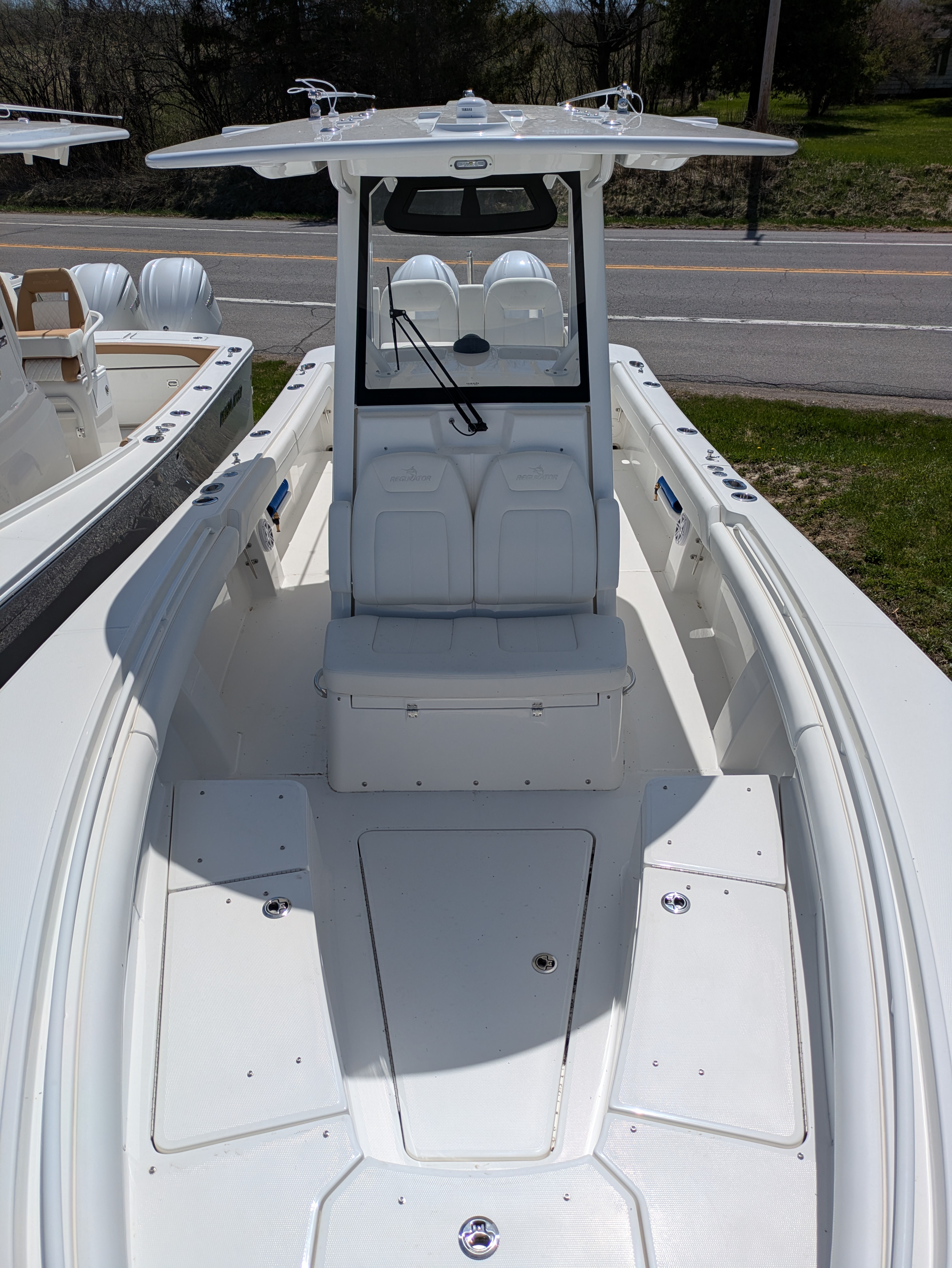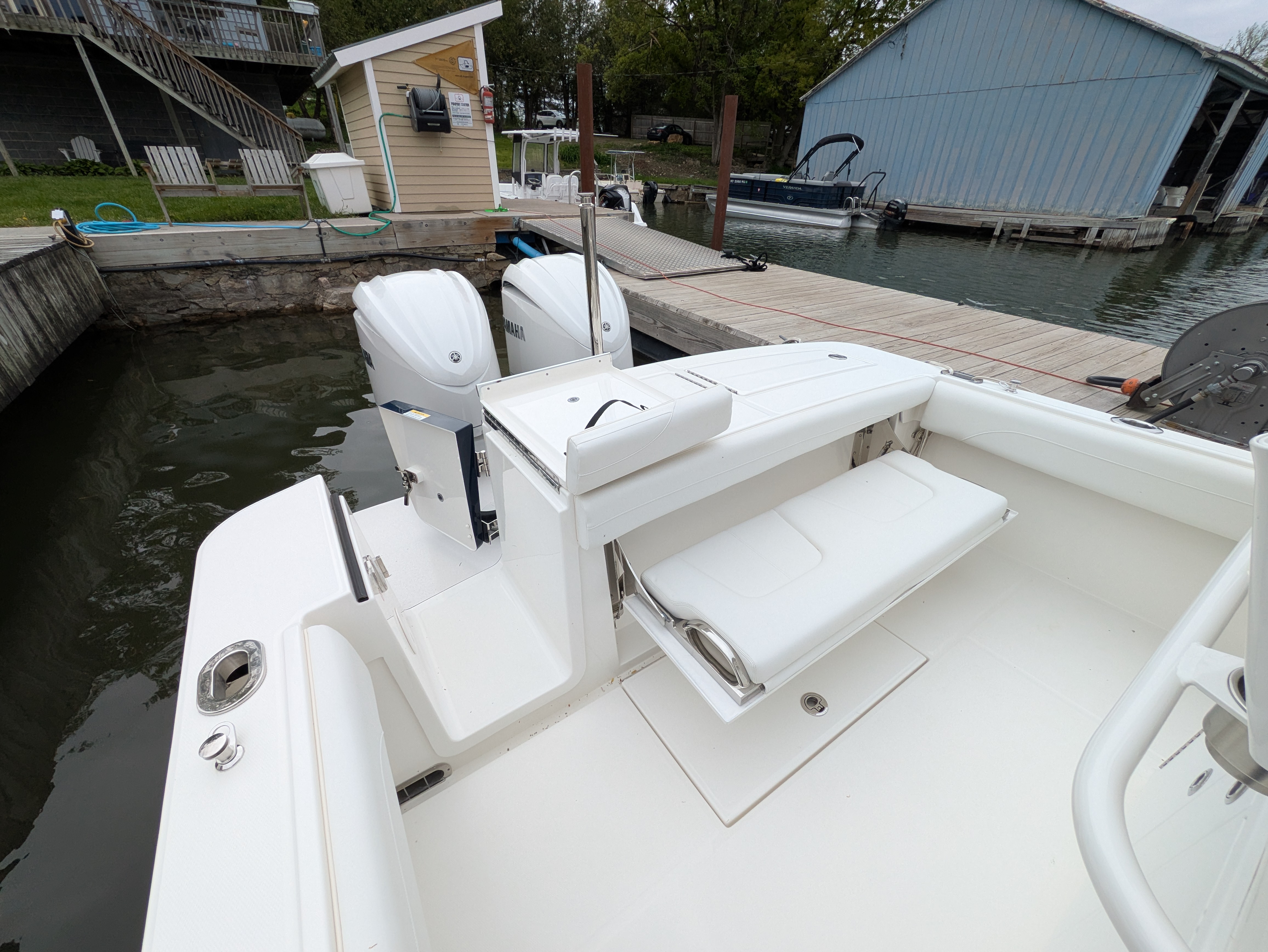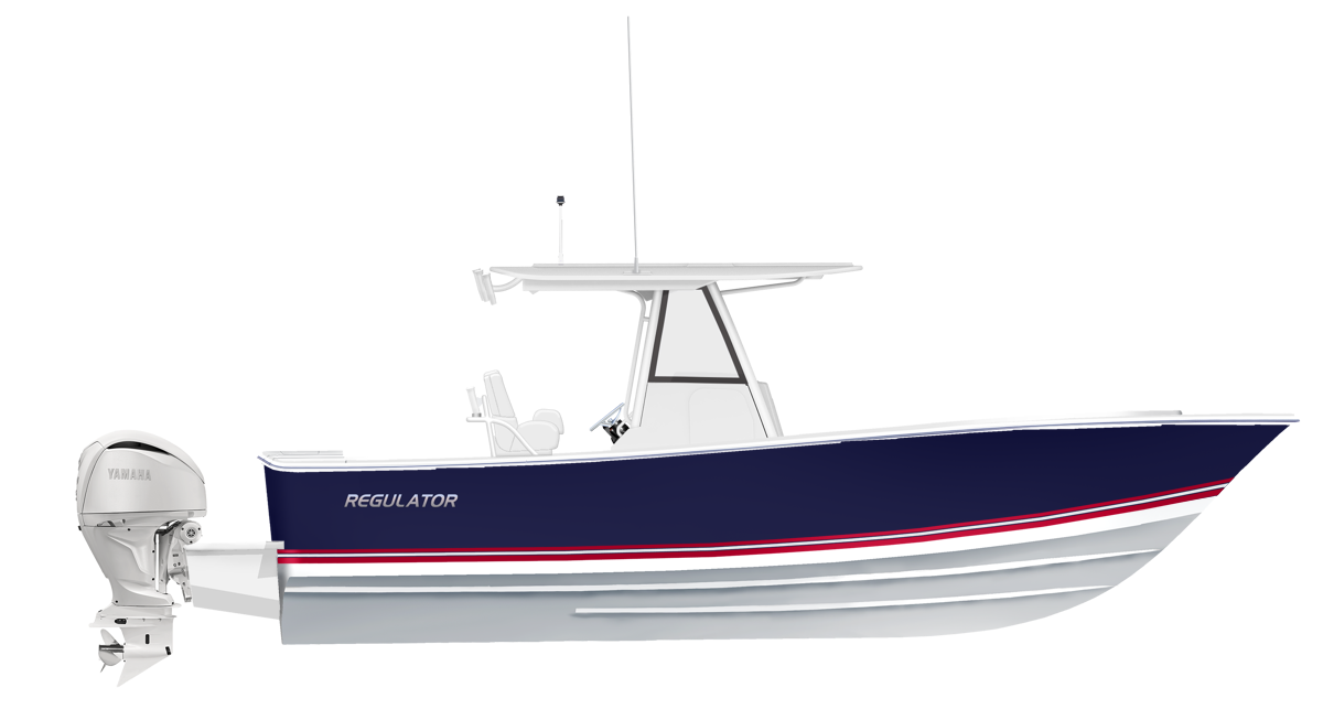 2025 Regulator 28, powered by Twin White Yamaha F300 4-Stroke Engines with DES Tilt Helm and DEC – Plus Helm Master® EX Joystick w/ Multimode Set Point™ and EX Autopilot w/ Waypoint Deceleration