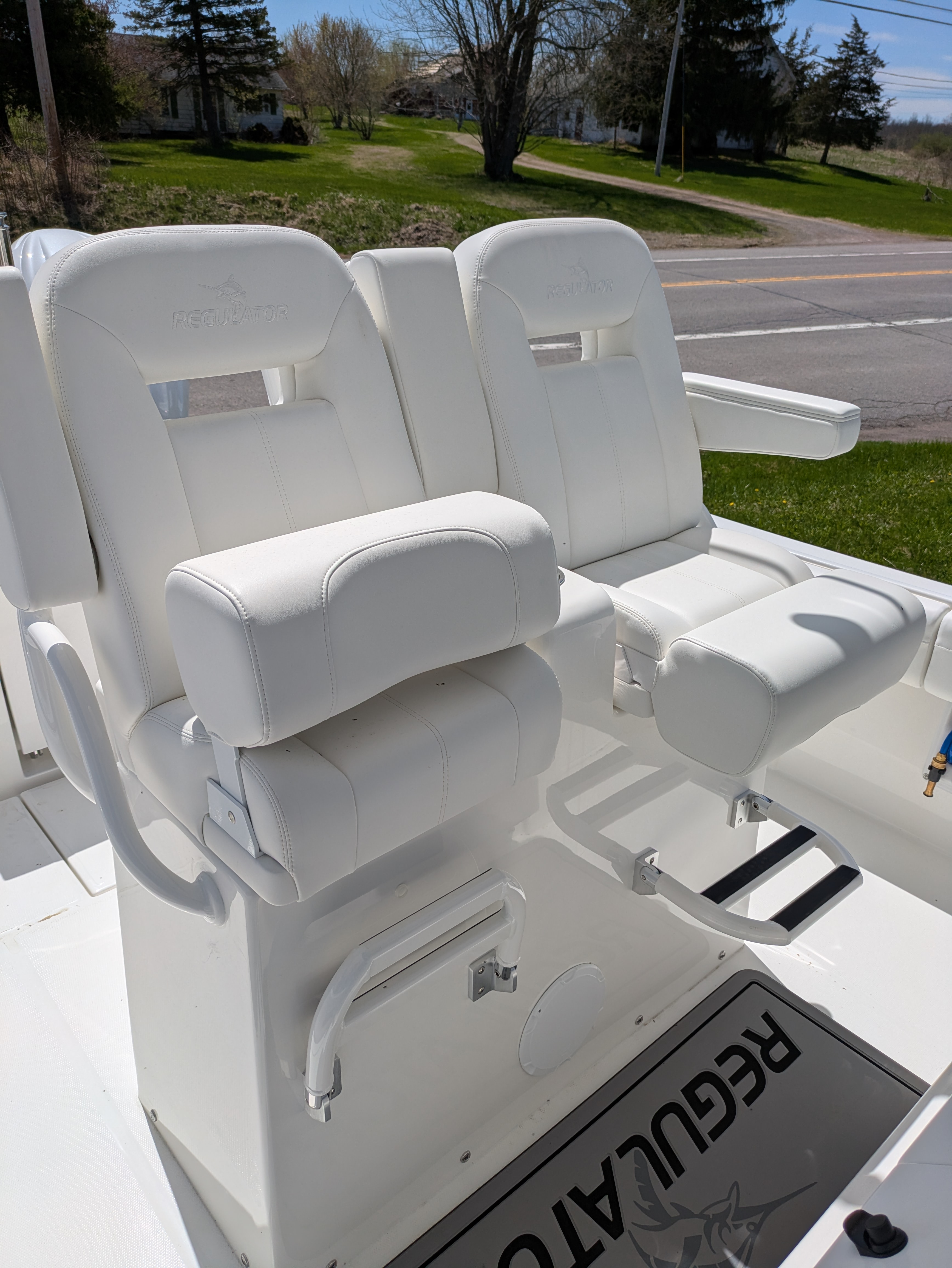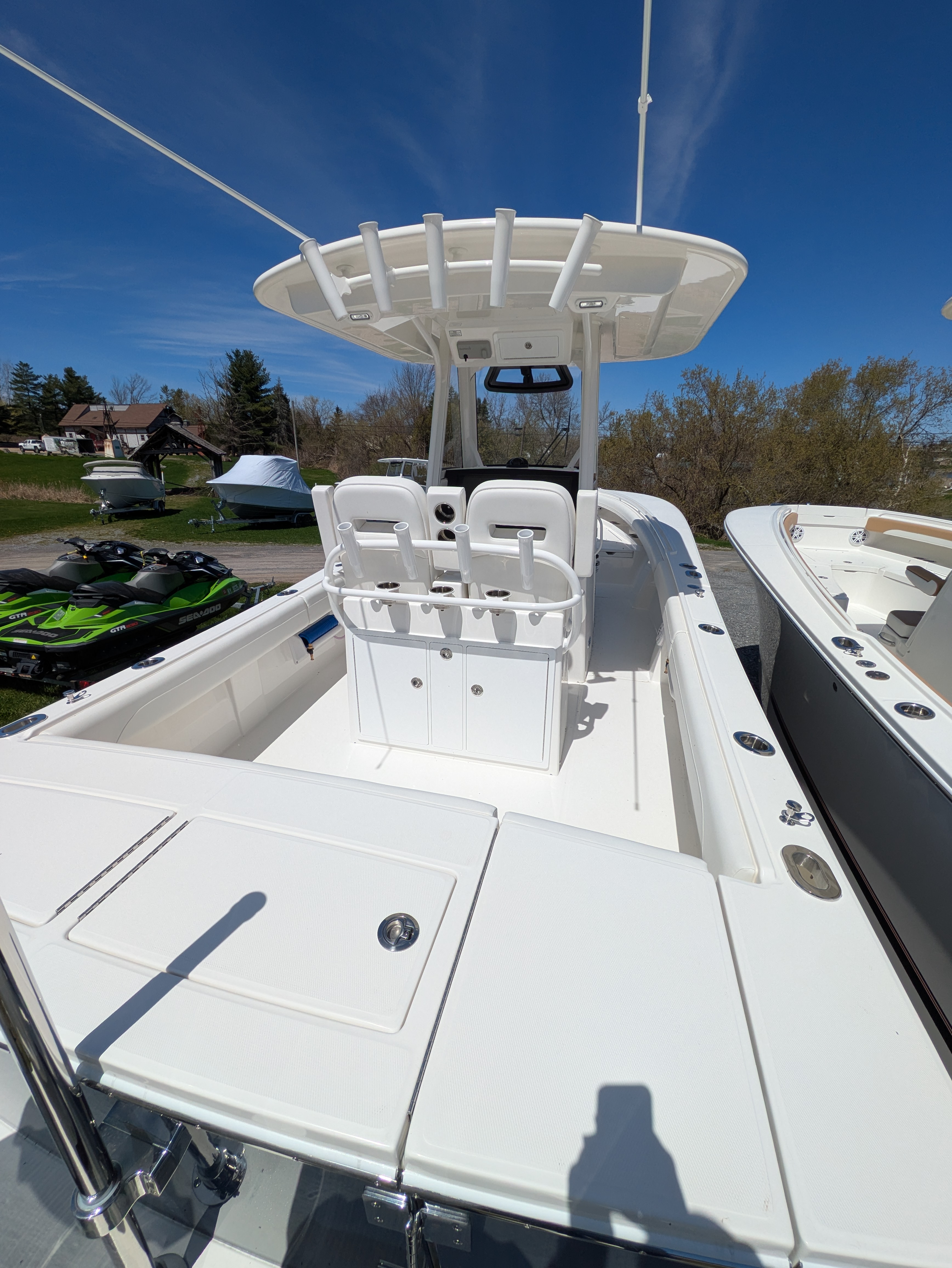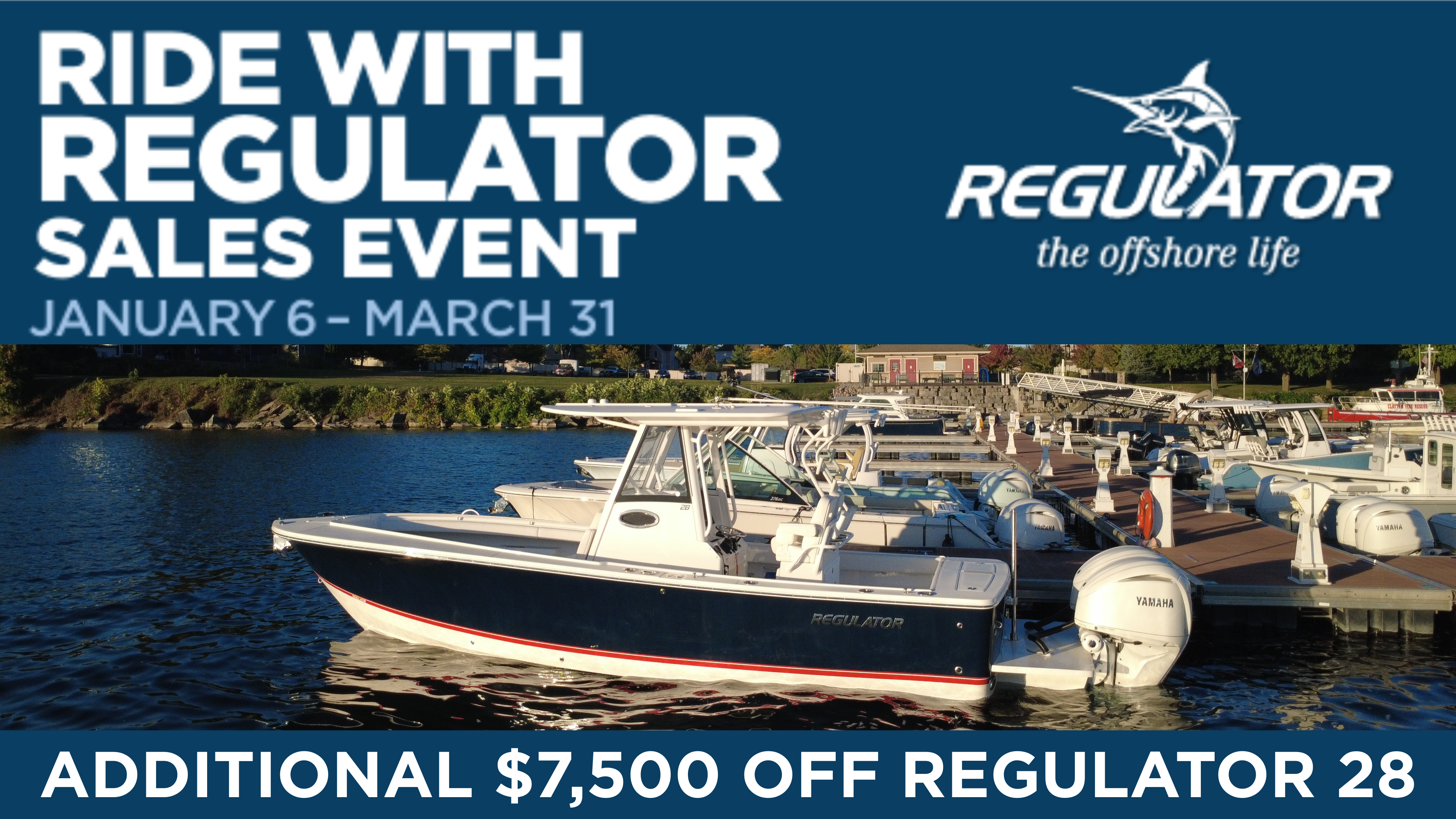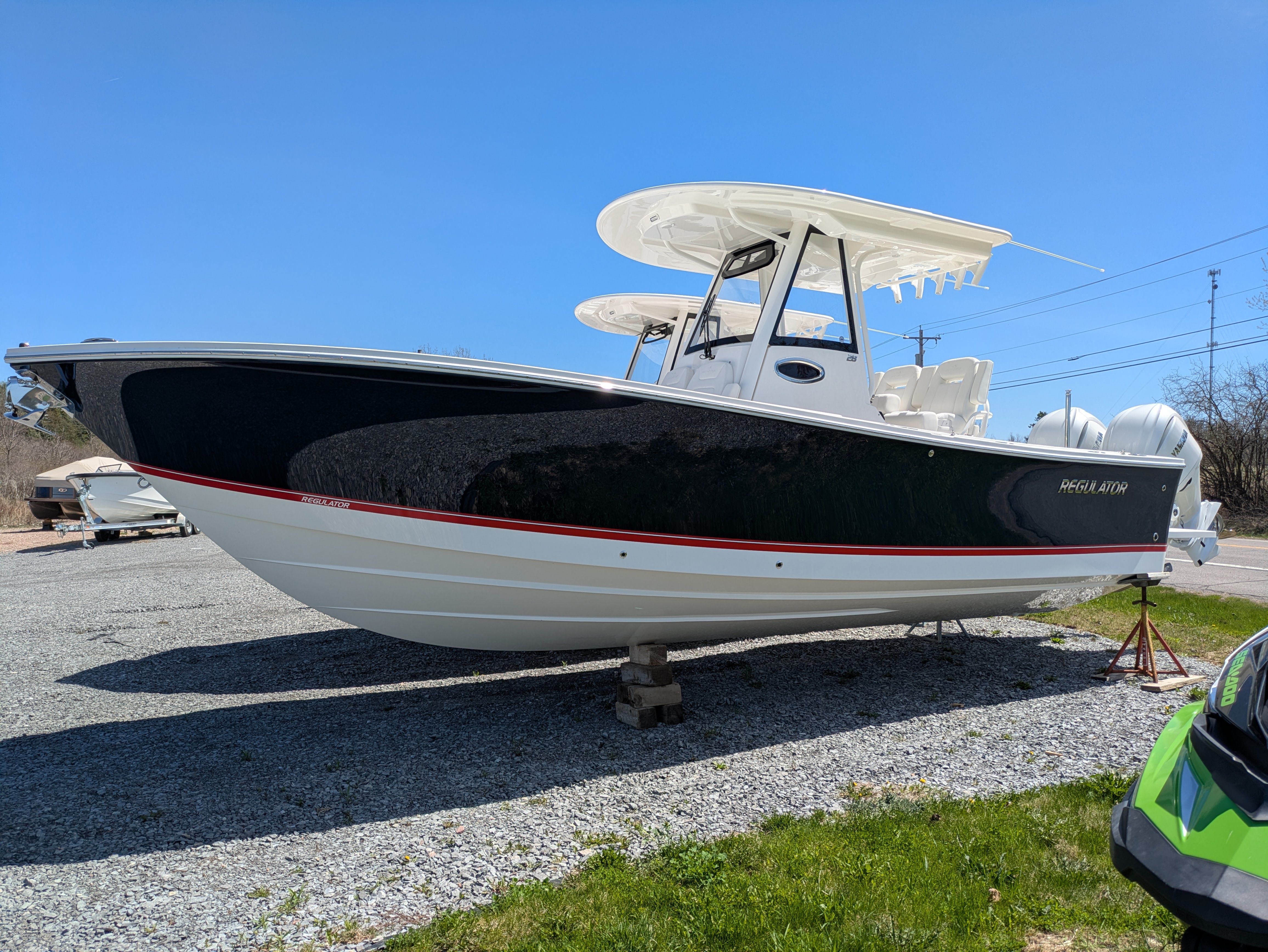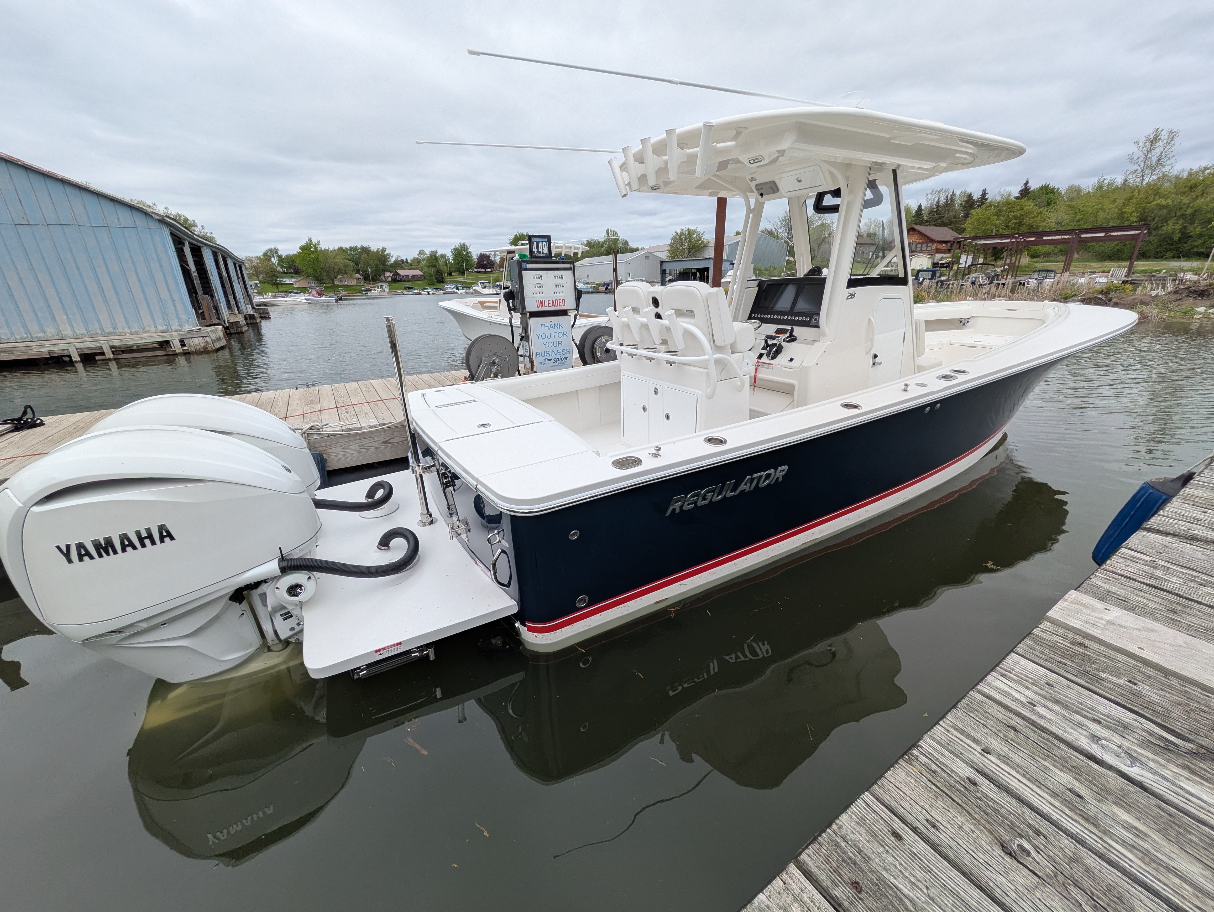 2025 Regulator 28, powered by Twin White Yamaha F300 4-Stroke Engines with DES Tilt Helm and DEC – Plus Helm Master® EX Joystick w/ Multimode Set Point™ and EX Autopilot w/ Waypoint Deceleration