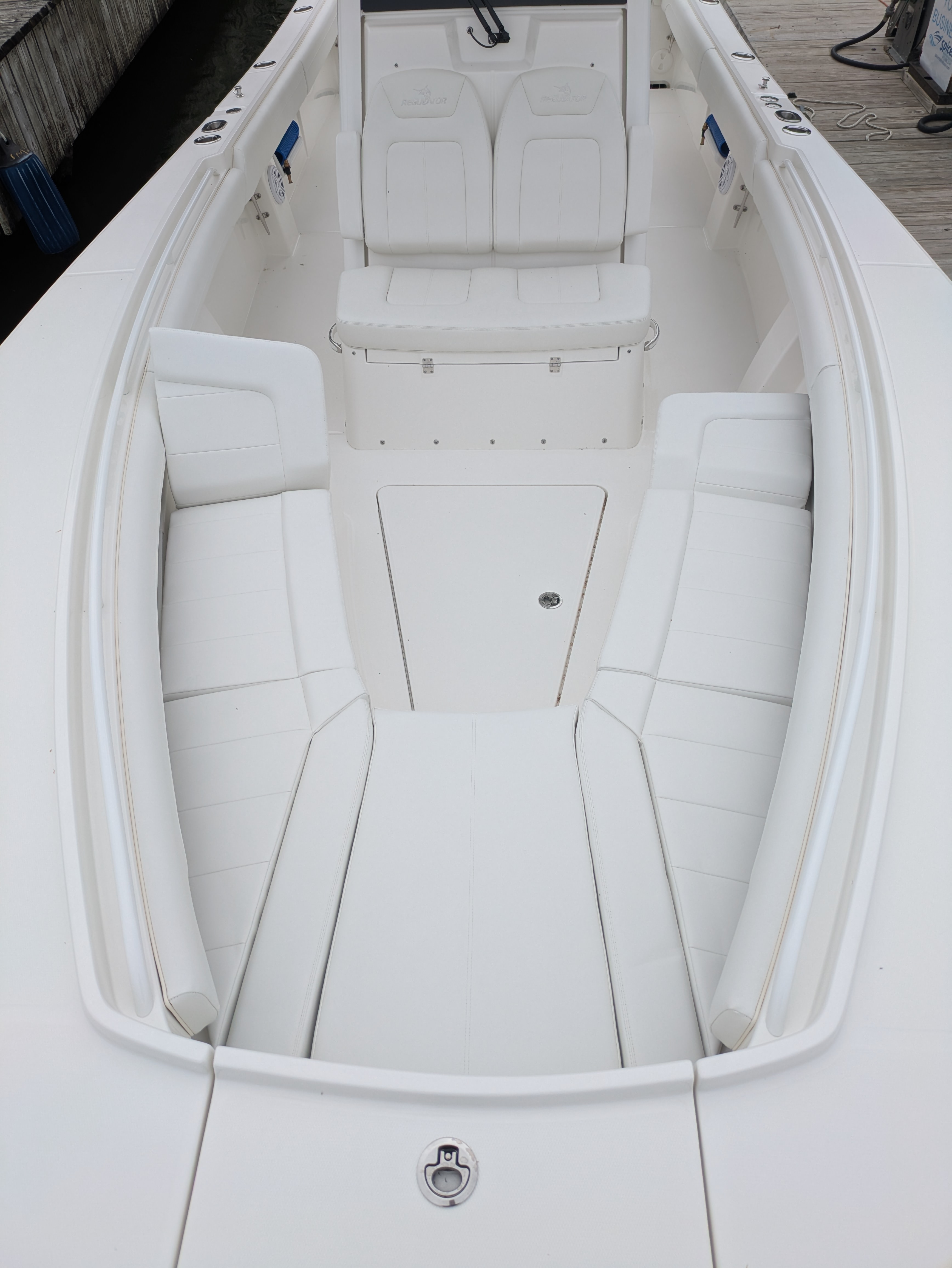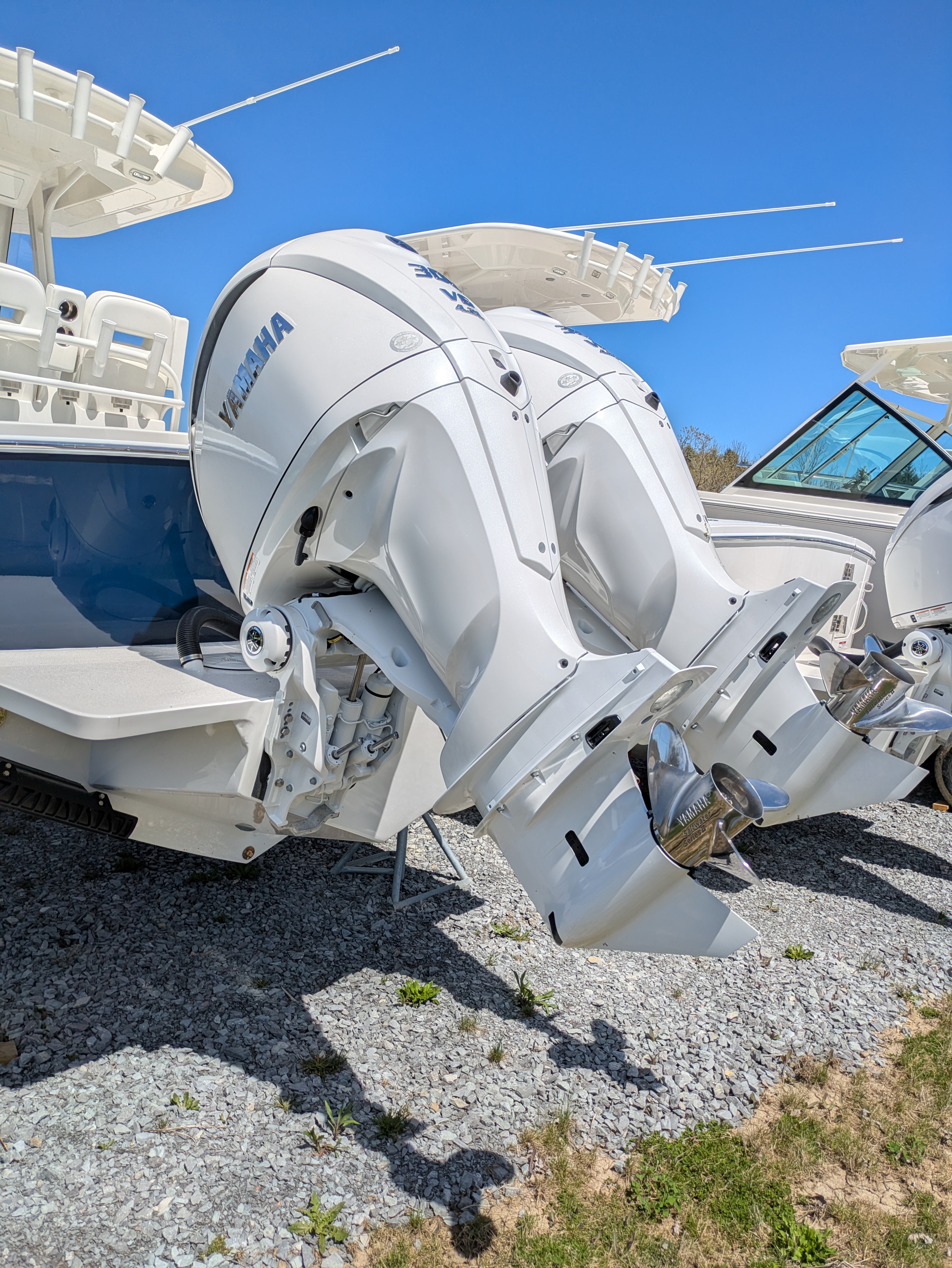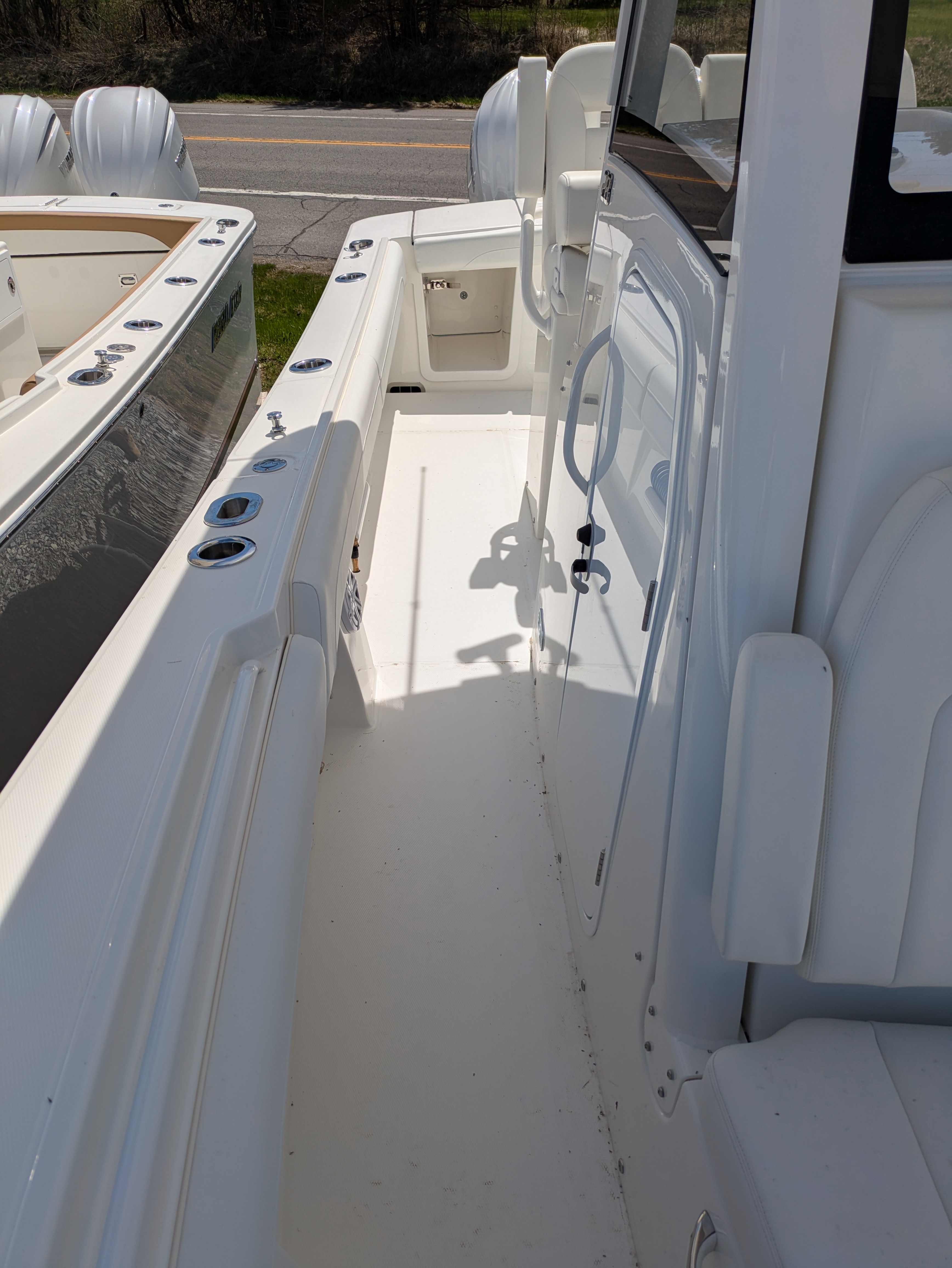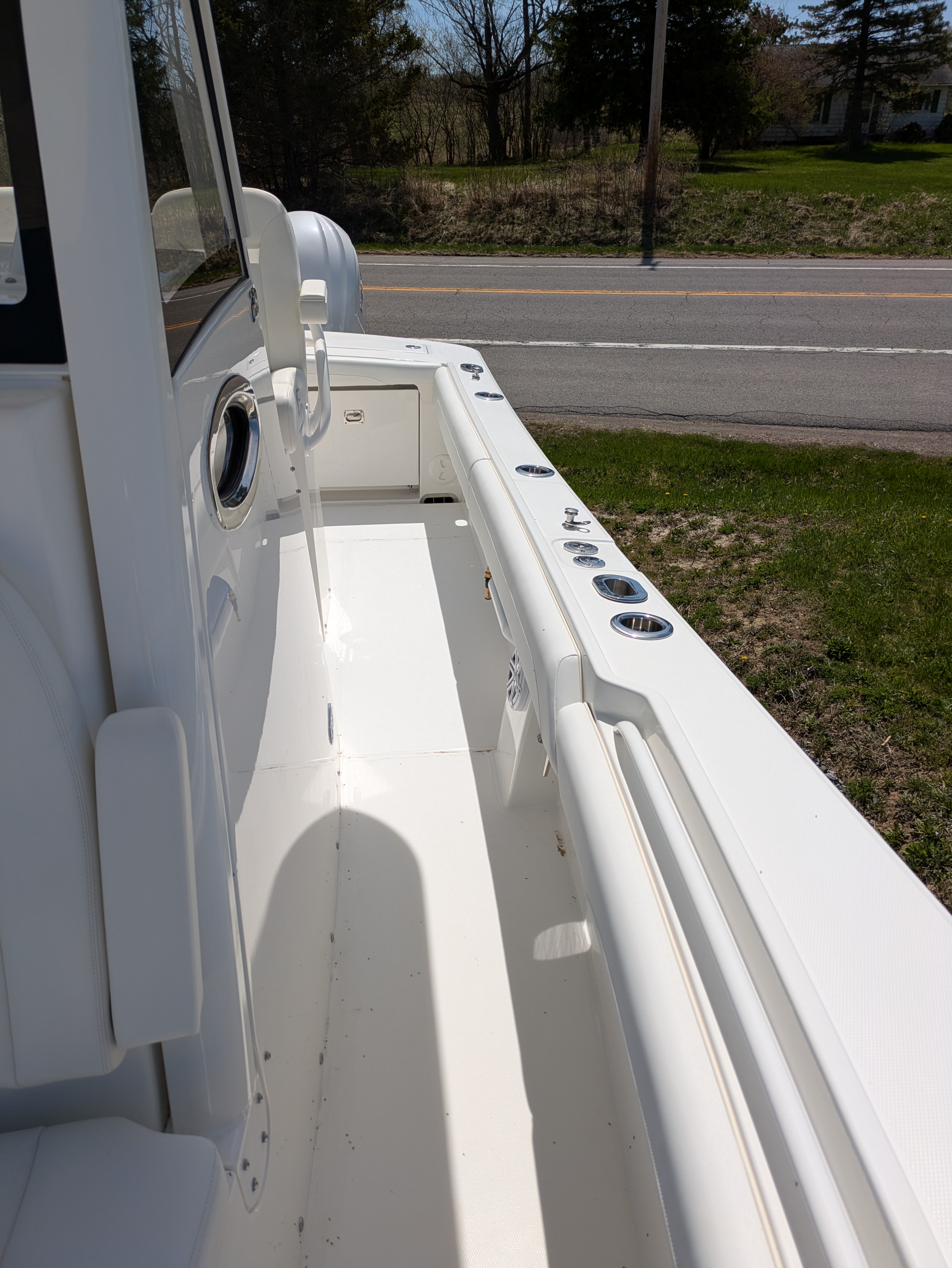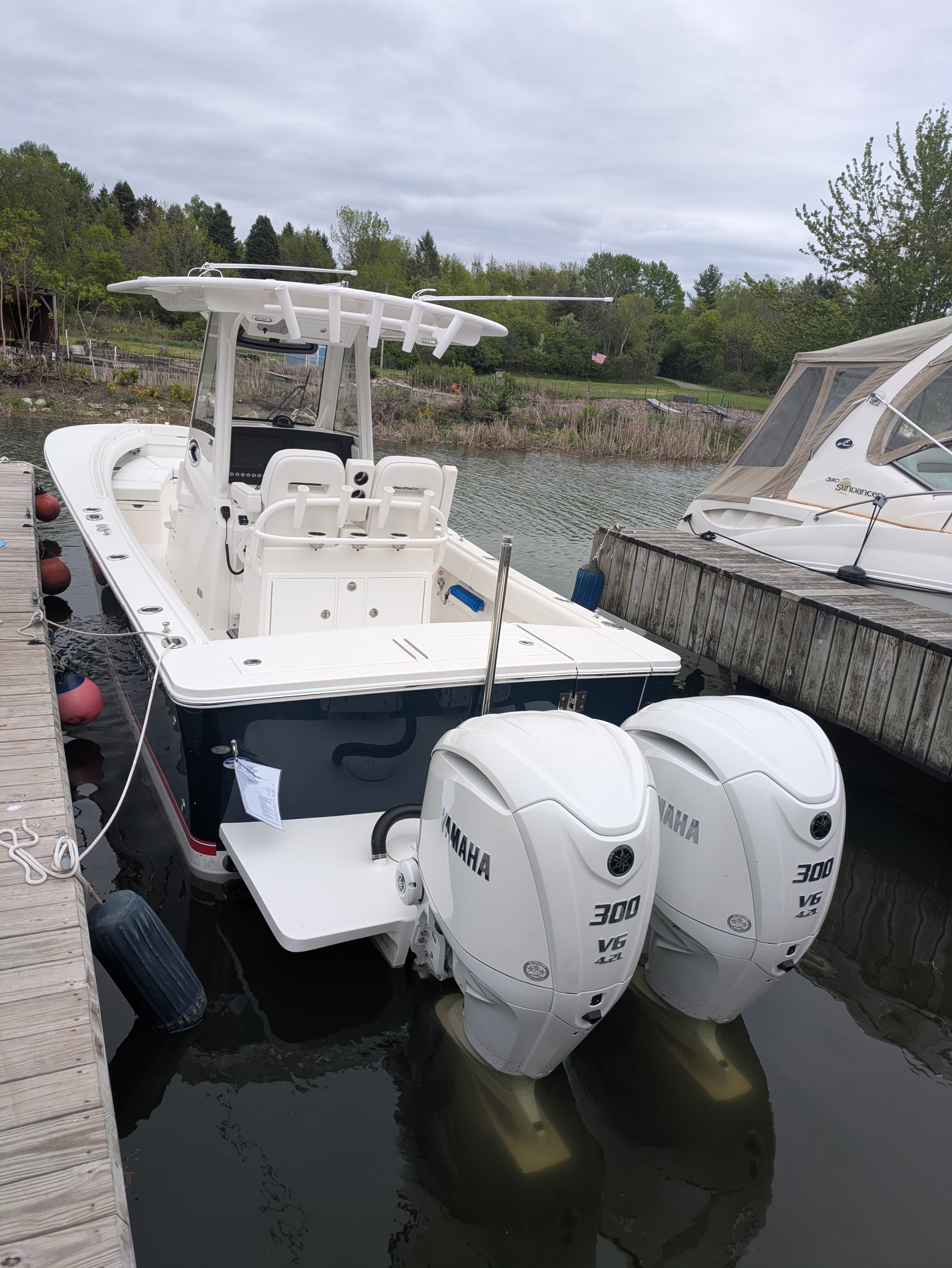 2025 Regulator 28, powered by Twin White Yamaha F300 4-Stroke Engines with DES Tilt Helm and DEC – Plus Helm Master® EX Joystick w/ Multimode Set Point™ and EX Autopilot w/ Waypoint Deceleration