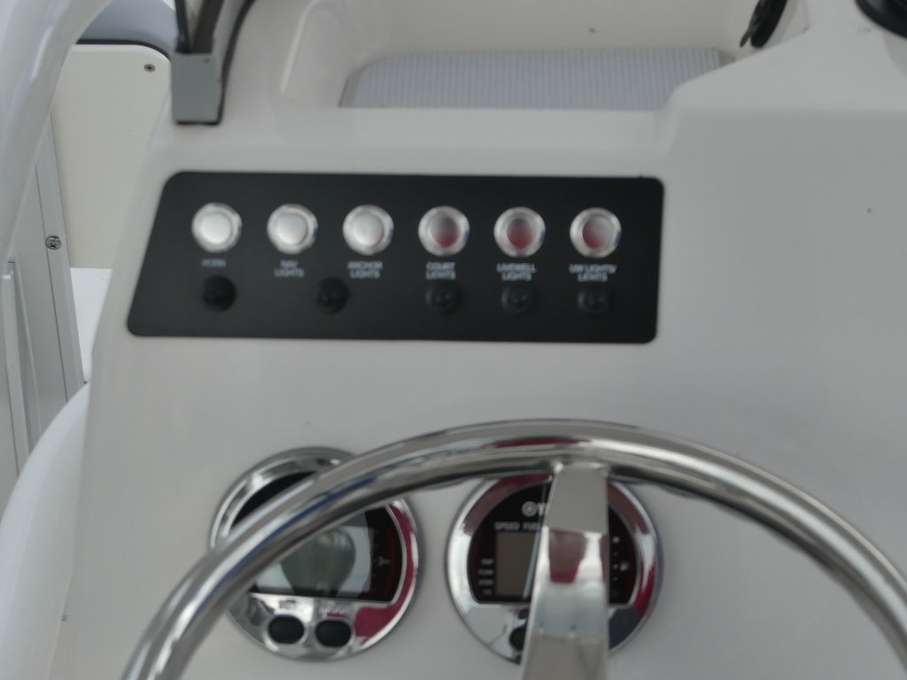 - Aft Insulated Livewell (15 gallon) with Overboard Drain, LED Lighting, Blue Gelcoat Finish and Adjustable Flow Valve