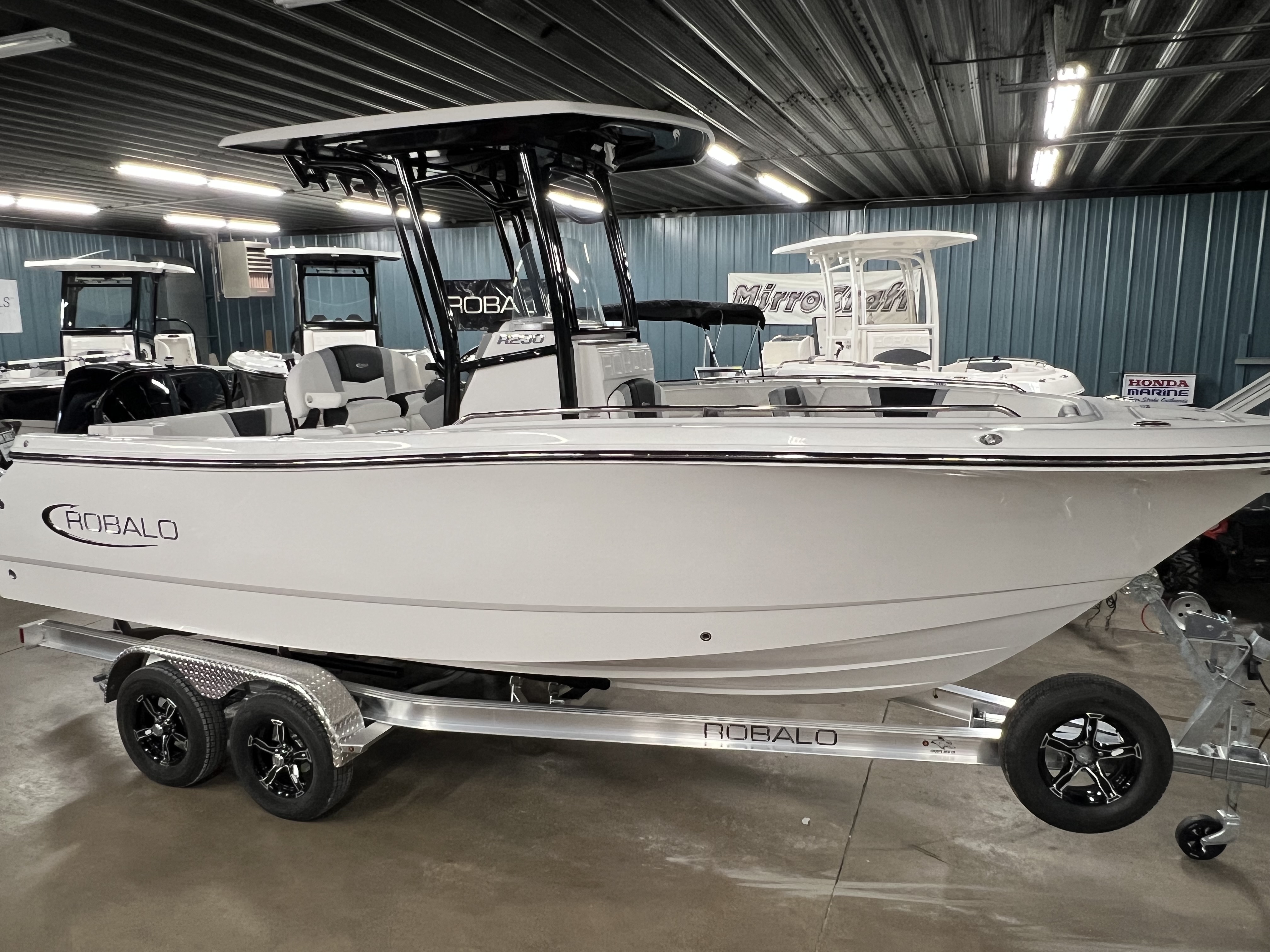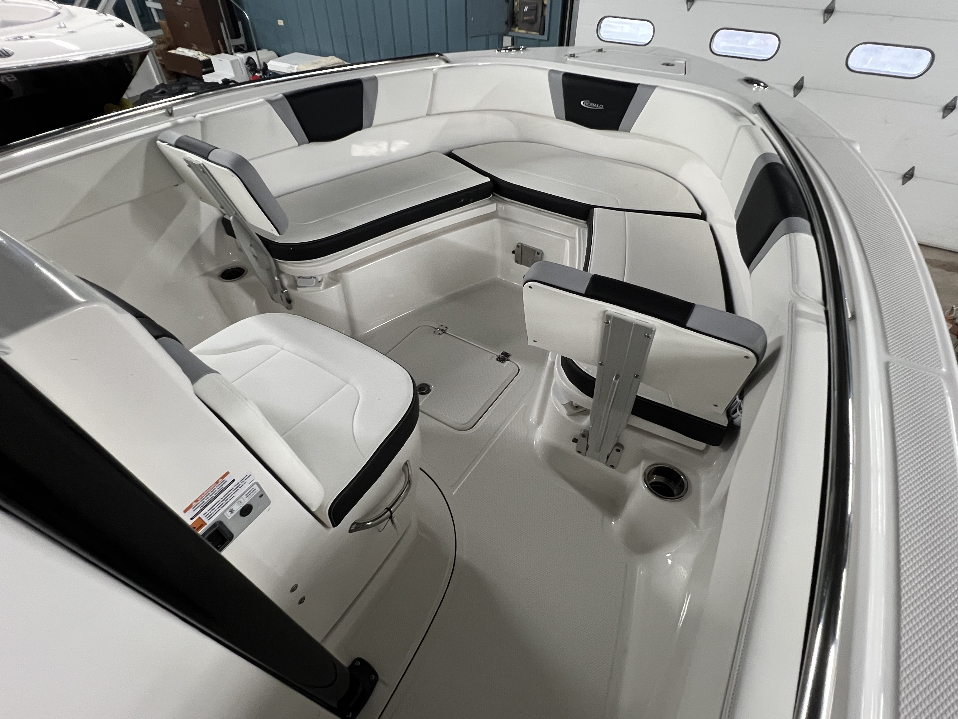 • Fiberglass Hardtop with Powdercoated Frame: Includes: Rod Holders, Storage Box, LED Spreader Lights, & Integrated Console Grab Rails