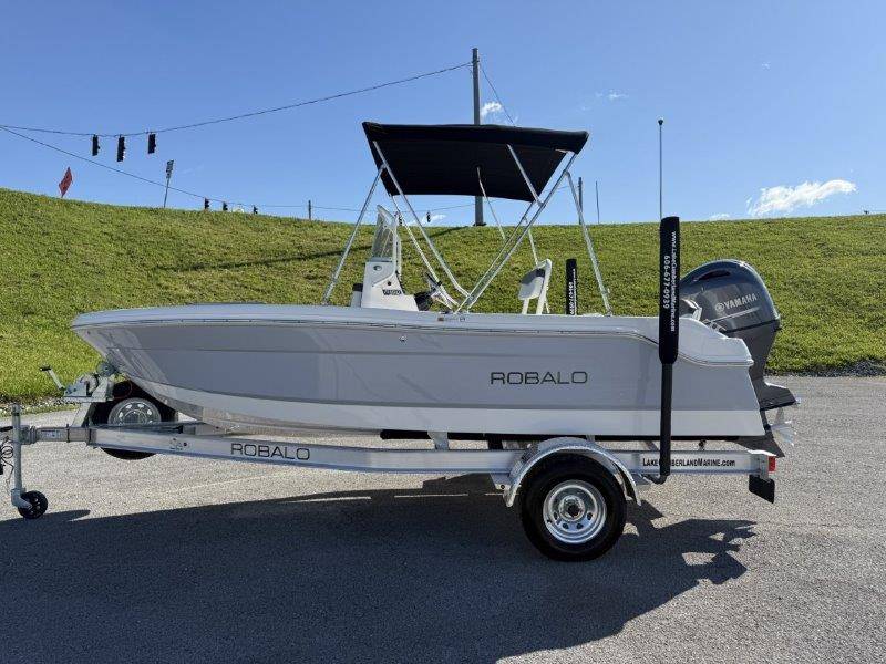 2025 Robalo R160 UNIQUE KEY FEATURES • 5-Year Premium Level Limited Component Warranty • Access into Console Storage from Forward Side Console Seat Cushion • Aft Jump Seats with Folding Backrests and Custom Aluminum Hardware • Aluminum Framed Acrylic Windshield • Analog Gauges-Tachometer and Fuel • Bilge Pump with Automatic Switch • Bow Insulated Storage Compartment (16.5 gallon) with Overboard Drain • Cockpit LED Courtesy Lights - Blue/White • Dive Swim Platform w/Three Step Boarding Ladder - Starboard • Forward Console Seat and Bolster • Helm Panel with Weatherproof Toggle Switches and Circuit Breakers • Insulated Livewell (49 Quart) with Overboard Drain, Blue Gelcoat Finish and Vertical Rod Storage (6) • Integrated Footrest under Console • Kevlar Reinforced Hull • Leaning Post with Backrest (Powdercoated White) With 36QT Cooler Underneath • Limited Lifetime Hull Warranty • Premium Stain Resistant Silicone Cockpit Fabric • Stainless Steel Cockpit Grab Rails • Stainless Steel Drink Holders (2) in Cockpit • Stainless Steel Drink Holders (2) on Console • Stainless Steel Two-Bolt Cleats (2) with Robalo Logo with Backing Plates and Pull Up Cleat • Stereo System - AM/ FM Radio with Bluetooth and Water Resistant Speakers (2) with BlueLED Lighting • Storage Under Aft Seat-Designated Storage - 5 Gallon Bucket •Yamaha Four Stroke F90LB 90HP 20" OPTIONS Hull Side Gelcoat - Alloy Gray Standard Aluminum Prop Cockpit Interior - Mist Canvas Color - Black (If Equipped) Bimini Top with Stainless Steel Bows and Boot Digital Gauges SeaStar Safe-T Quick Connect Tilt Steering Fold Down Console Windshield and Grab Rail Stainless Steel Rod Holders Bow Cushion - Removable 5 Year Premium Level Limited Component Warranty Standard Trailer Spare Tire Kit - Galvanized Wheel