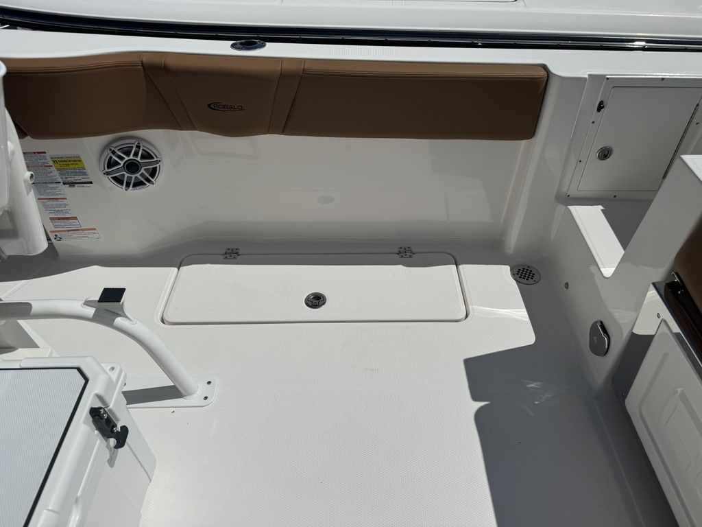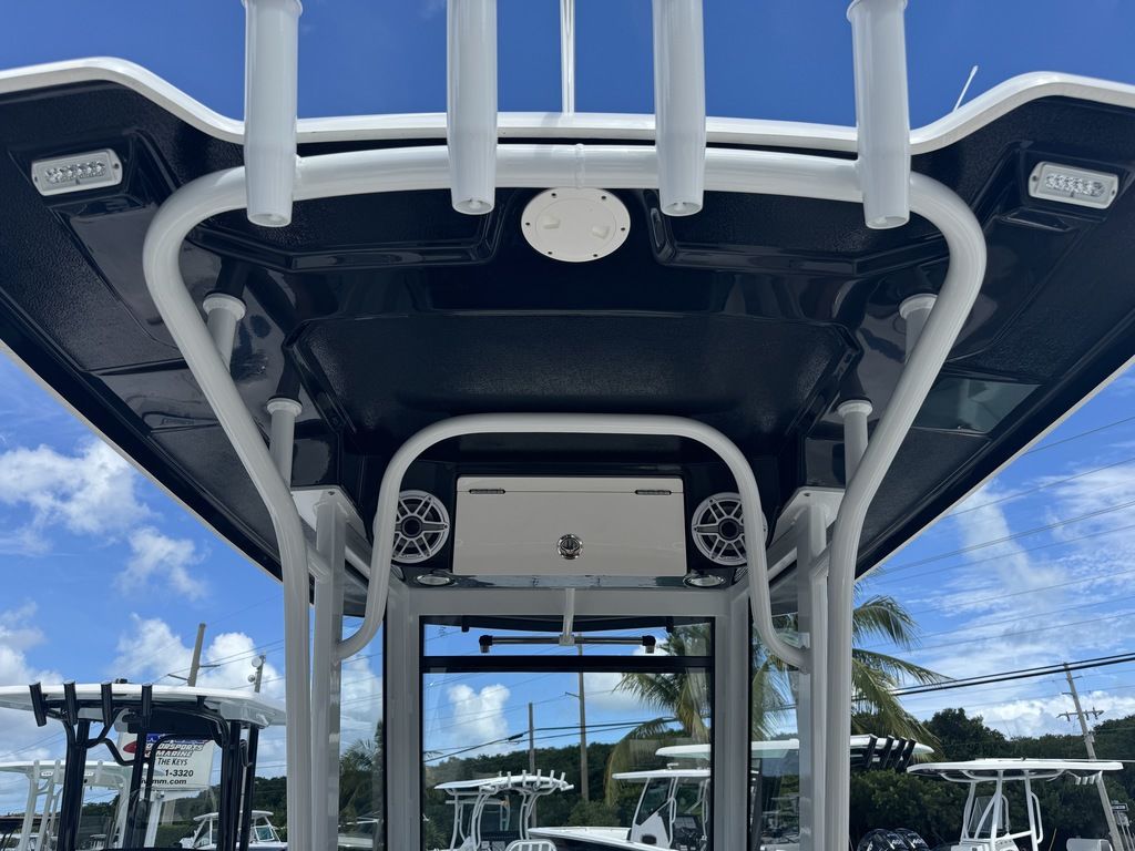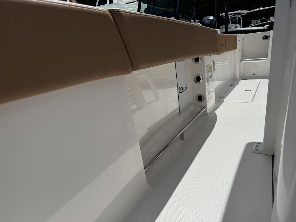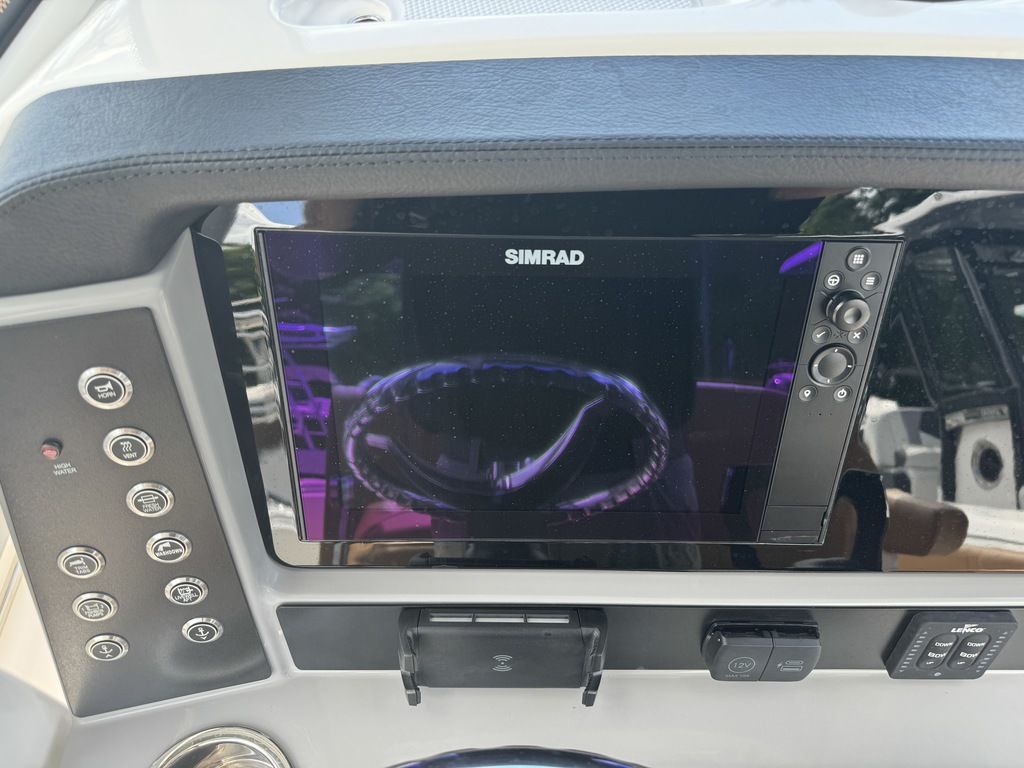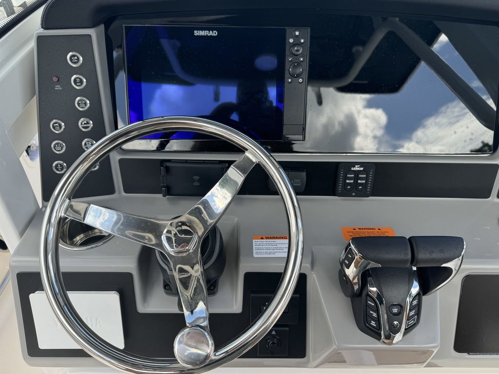 - Factory Options: Black Hull Color, Cayenne Interior, White Powder Coating, Simrad NSS12 EVO3S GPS, NMEA Starter Package with Audio Interface, VHF Radio, JL Audio Sound System, Gravity Discharge Porcelain Toilet System with Holding Tank and Discharge, Seadek Helm Mat, Leaning Post with Reversible Backrest, Windlass Package, 5-Year Premium Level Component Warranty, Aluminum Tandem Axle Trailer with Galvanized Wheels and Spare.