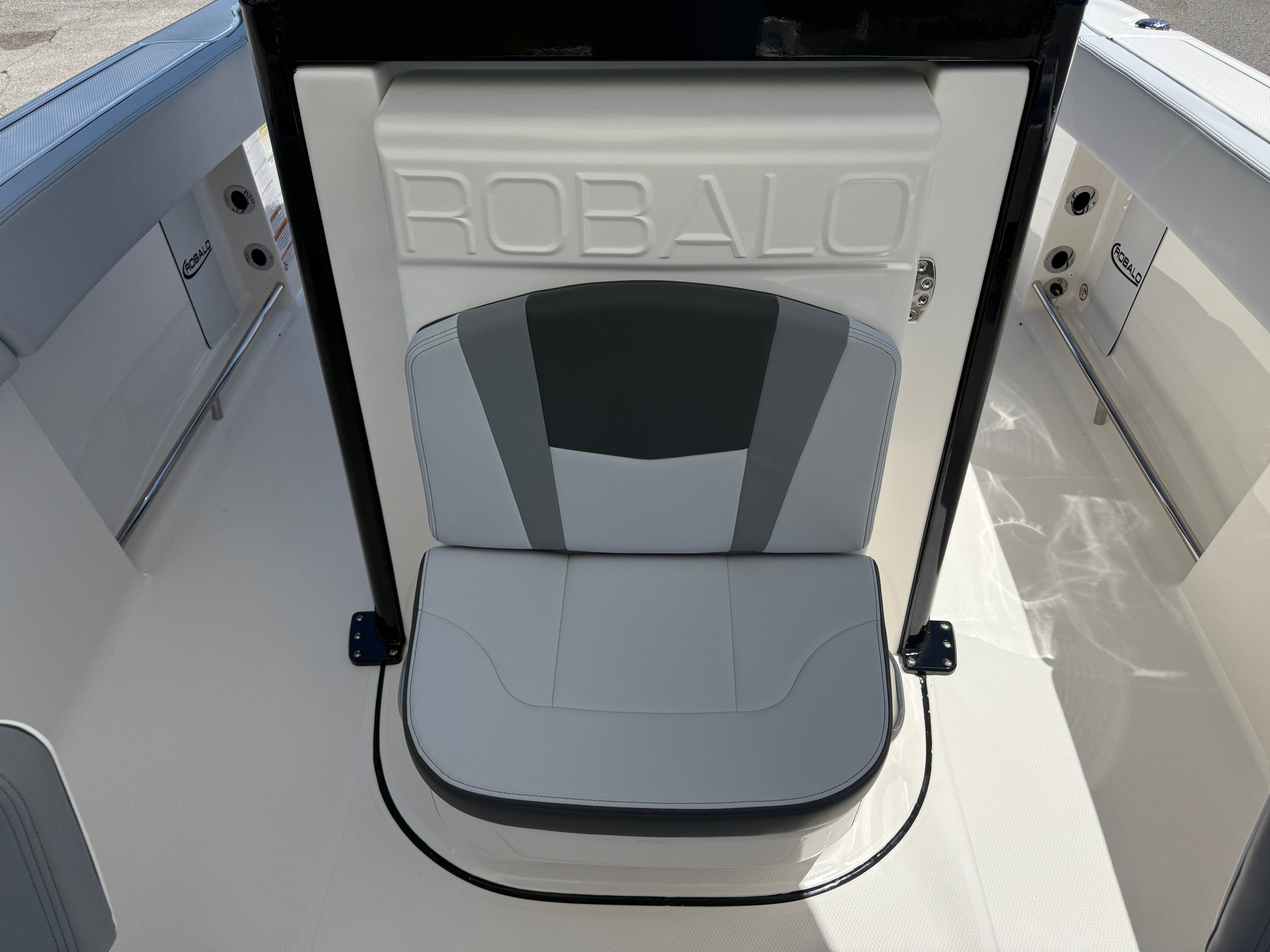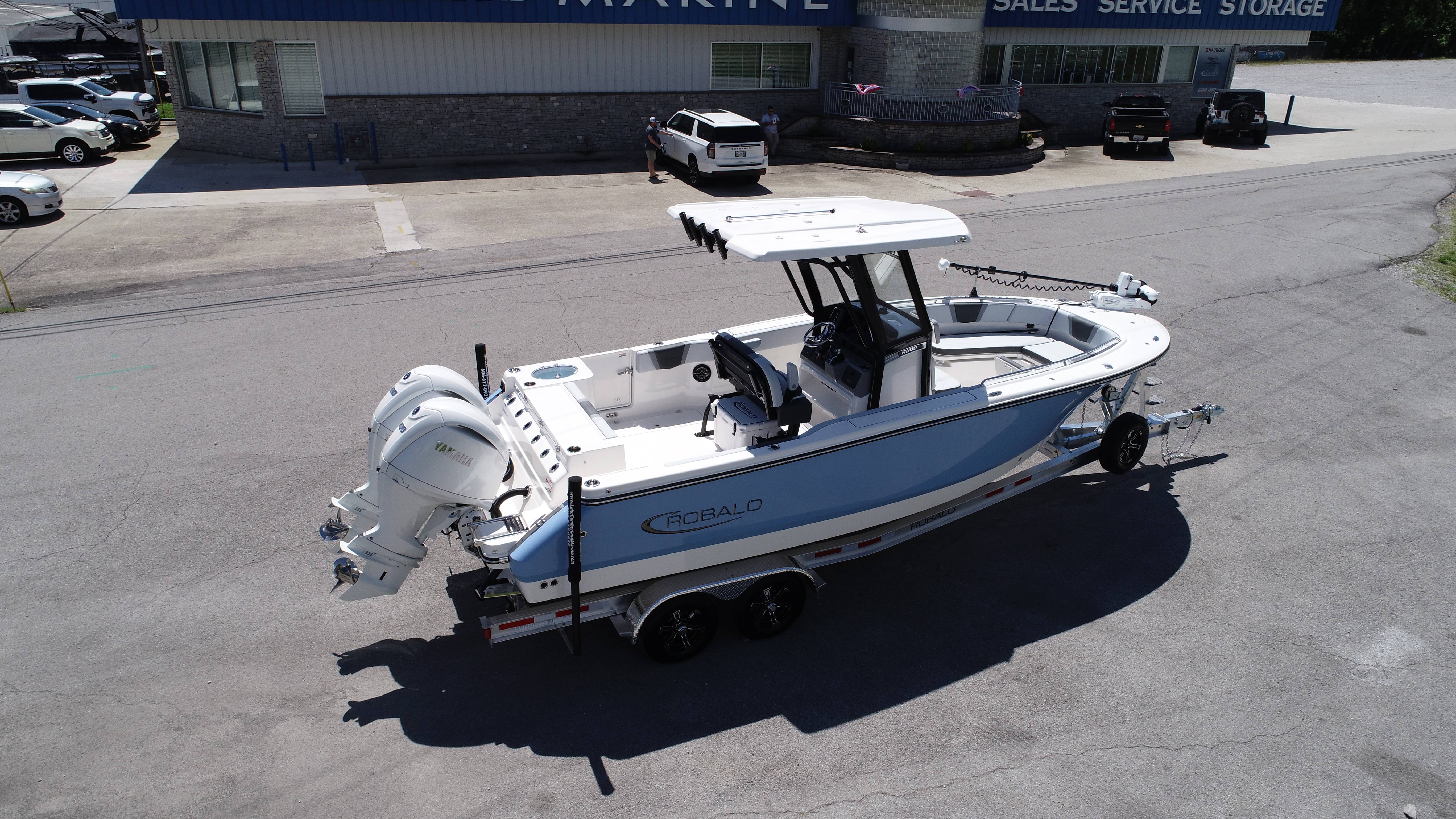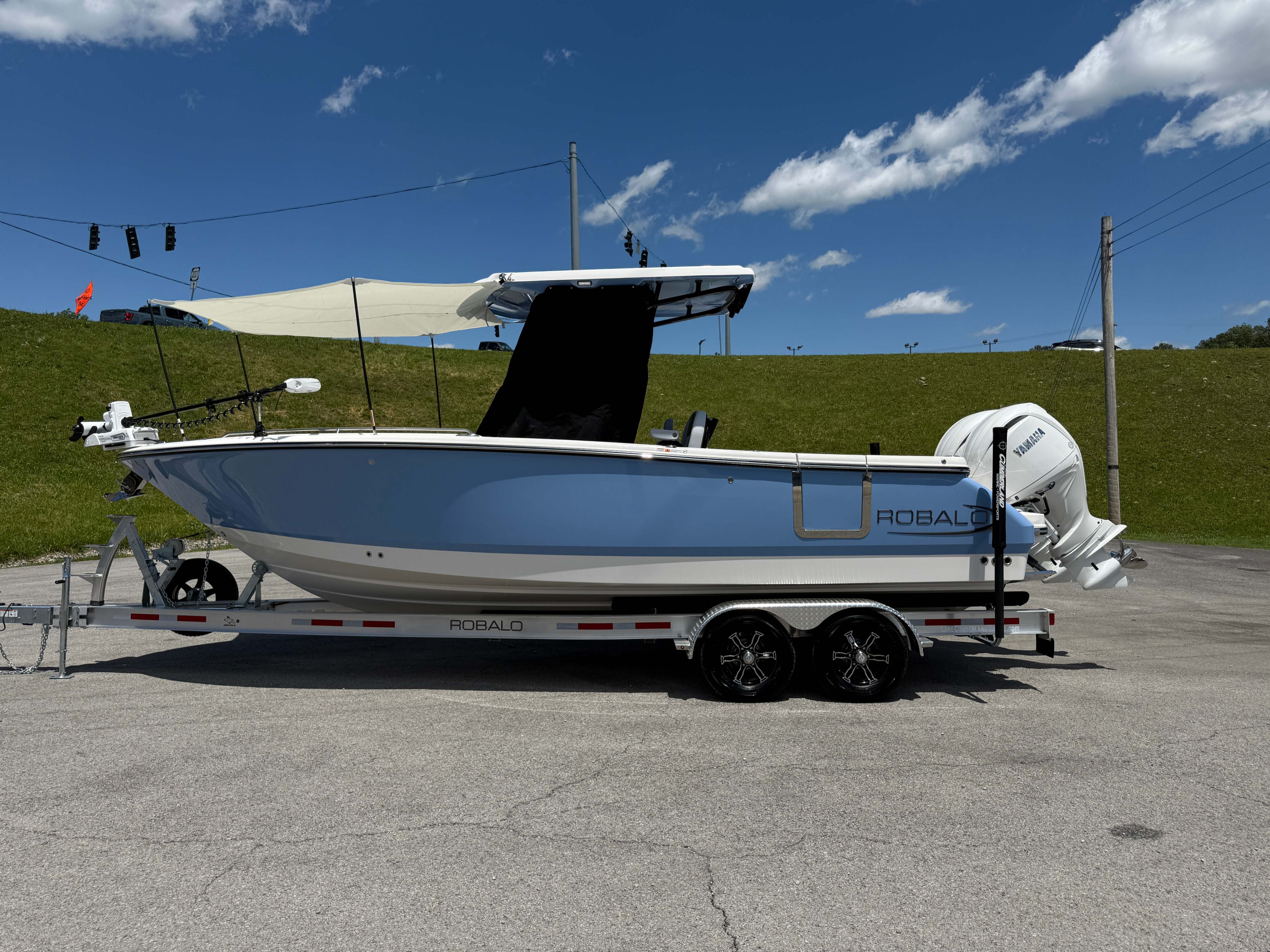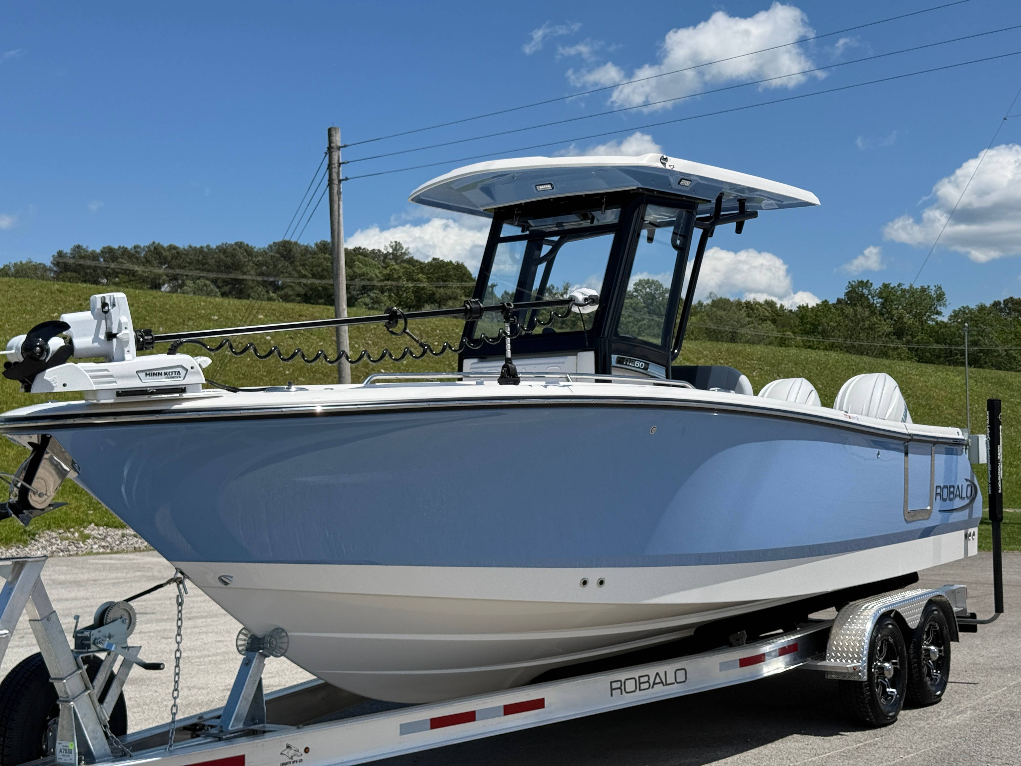 2025 Robalo R250 UNIQUE KEY FEATURES • 20 lb. Galvanized Anchor, 200 Anchor Rope, 15 Chain • 5-Year Premium Level Limited Component Warranty • Cockpit Side Entry Door with Custom SS Frame and Hardware • Digital Gauges • Dual Battery System with Crossover Switch and Voltage Regulating System (VSR) • Fiberglass Hardtop with Powdercoated Frame Includes: Rod Holders, Storage Box, LED Spreader Lights, and Speakers • Freshwater & Raw Water Washdowns/Showers • Full Transom Seat Folds Flush into Transom Wall • In-Floor Storage • Insulated and Overboard Draining Bow Fishboxes • Kevlar Reinforced Hull • Leaning Post Powder Coated with Dual Flip-Up Bolsters, Backrests, Rodholders, and Cooler • Limited Lifetime Hull Warranty • NMMA Certified • Poured Composite Transom Coring • Premium Envision Marine Silicone Upholstery • Transom Livewell • Transom Walkthrough Door • Trim Tabs w/ LED Indicator Lights • Walk-In Head Compartment w/Light & Opening Window • Waterproof Wireless Phone Charging Dock • Wrap Around Cockpit Bolster Padding & Removable Bow Cushions Hull Side Gelcoat - Steel Blue Cockpit Interior - Harbor Mist Hard Top Complete (Black Powder Coated) Hardtop Underside Gel Color - Steel Blue Forward Canvas Fly - White Canvas Leaning Post Cover and Console Cover Twin Simrad NSS12 EVO3S Simrad NMEA 2000 Package with Engine Data and Audio Interface VHF Radio Simrad SS175M Transducer JL Audio Sound System Upgrade Trolling Motor with Triple Bank Charger - Minn Kota Riptide Terrova Quest 36V 115lb Thrust, 87" Gravity Discharge Porcelain Toilet System with 6.5 Gallon Holding Tank and Overboard Discharge Seadek Helm Mat - White Bow Table with Dedicated Storage Bow Filler Cushion Stainless Steel Drink/Rod Holders (2) Leaning Post with Reversible Backrest, 2 Rod Holders and Arm Rest- Black Powder Coated Stainless Steel 20lbs Anchor Stowable Stainless Steel Side Entry Boarding Ladder Windlass Package 5 Year Premium Level Limited Component Warranty Aluminum Tandem Axle Trailer with Aluminum Wheels and Side Guides Spare Tire Kit - Aluminum Wheel
