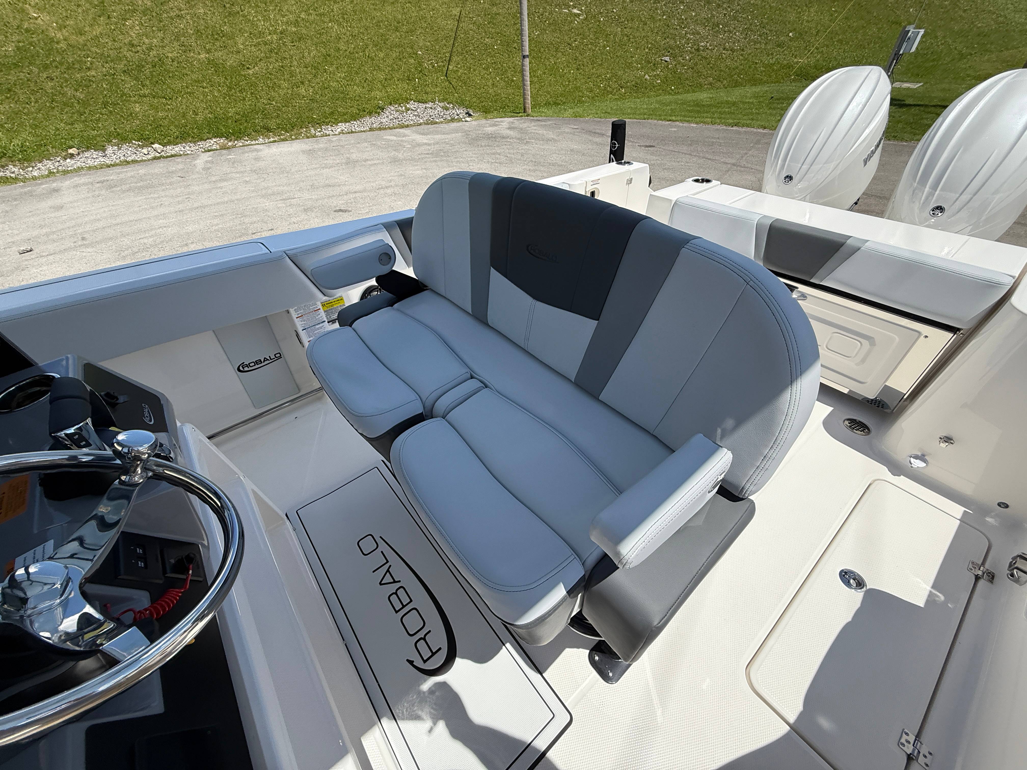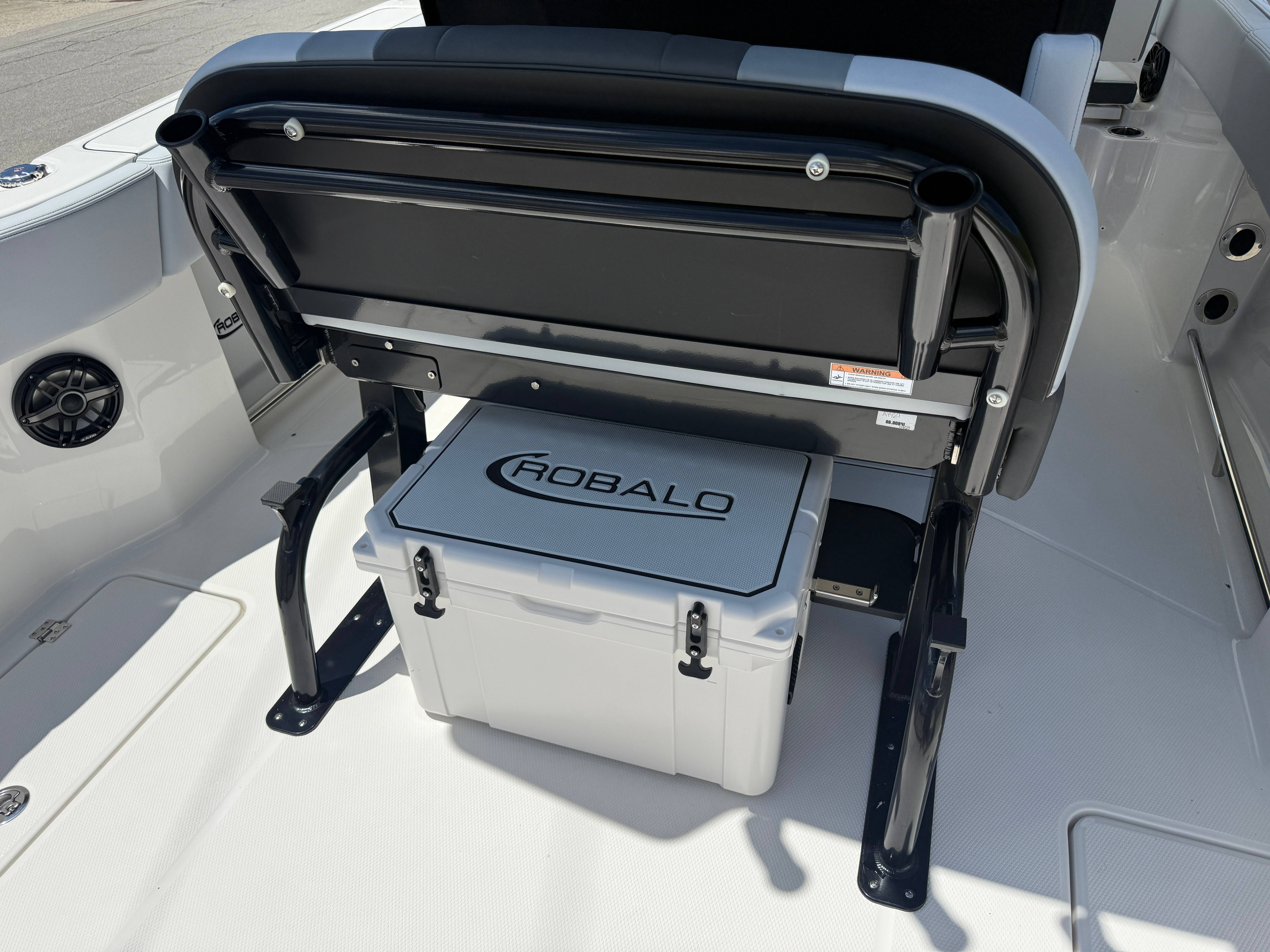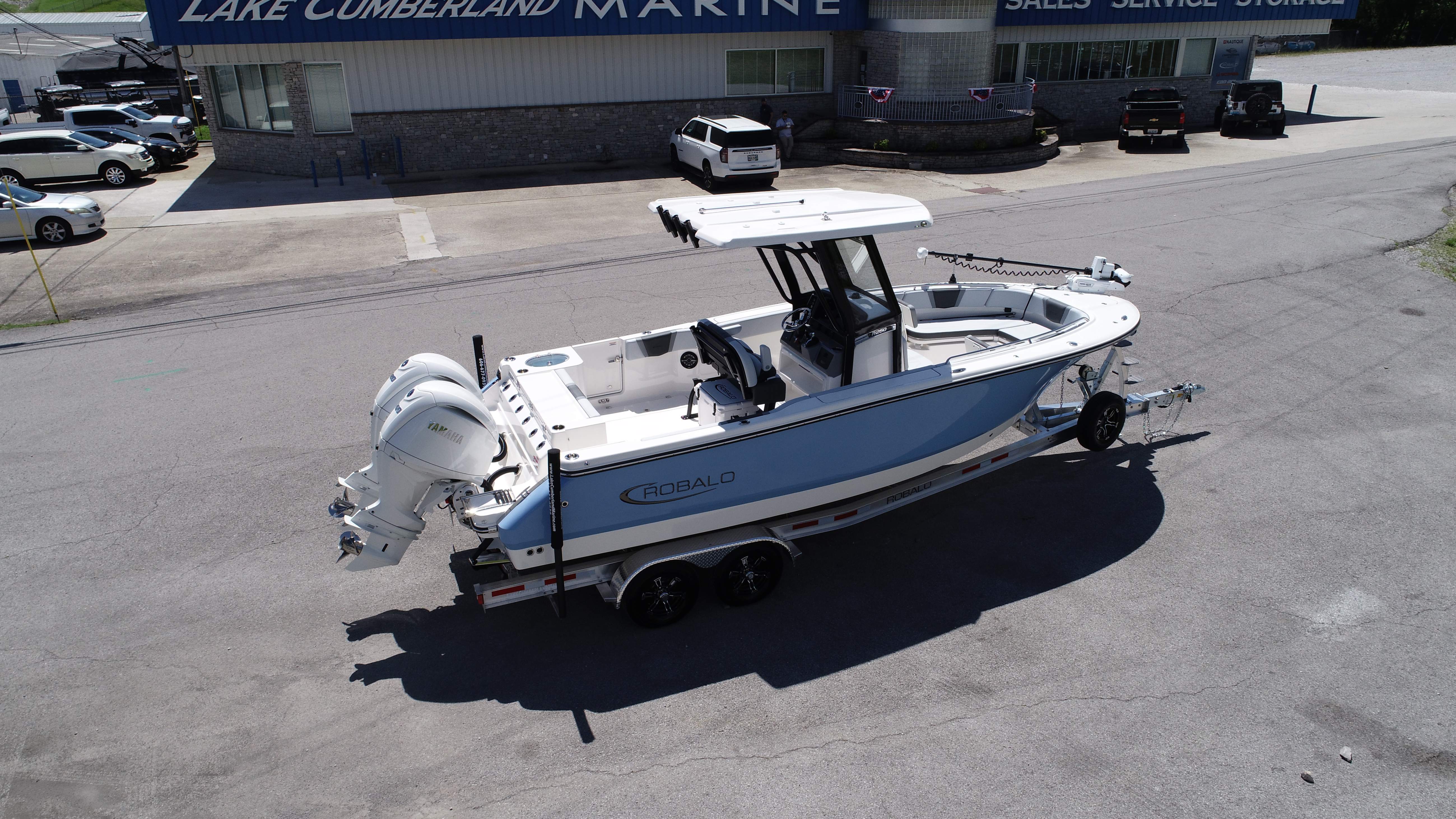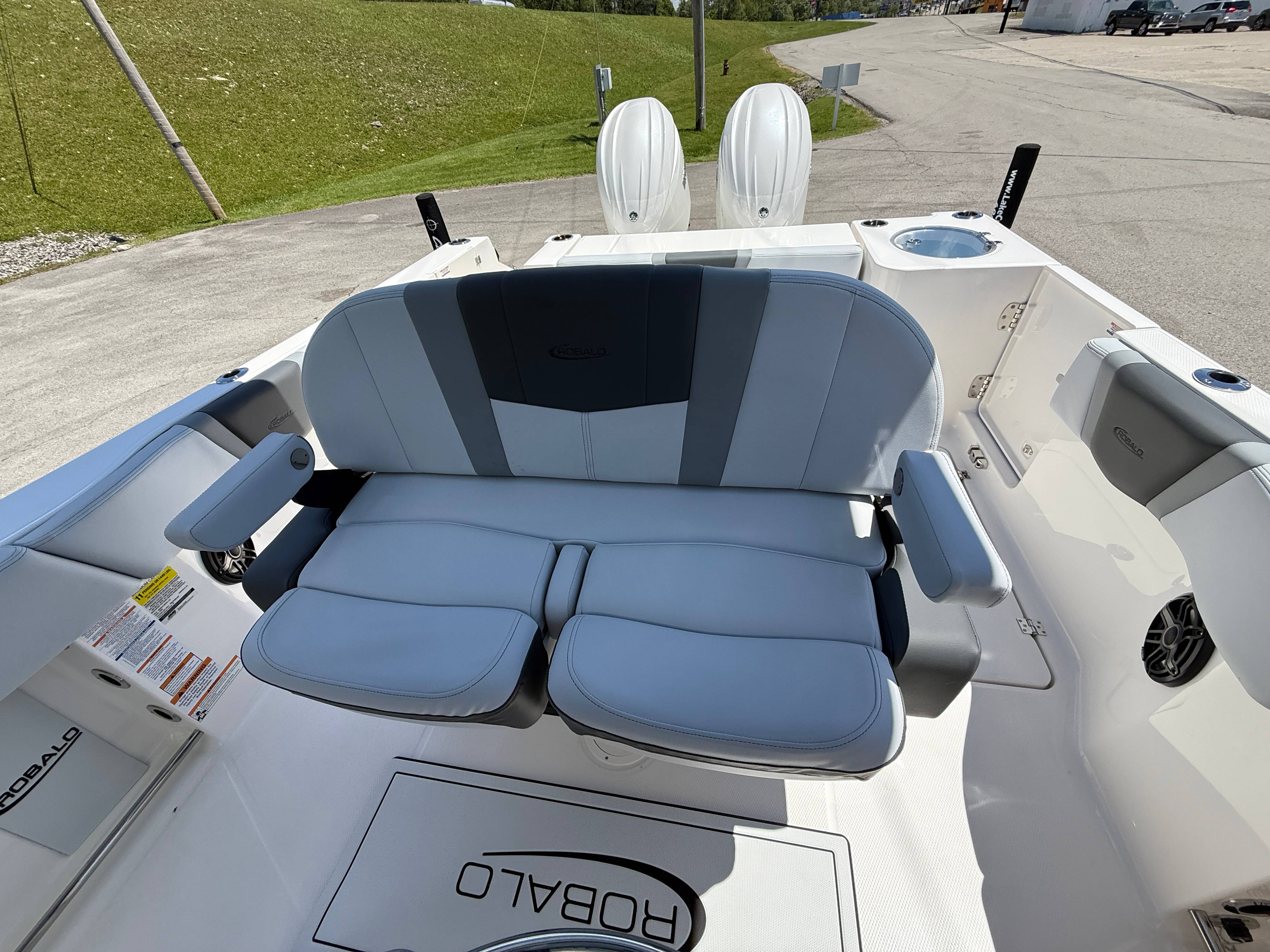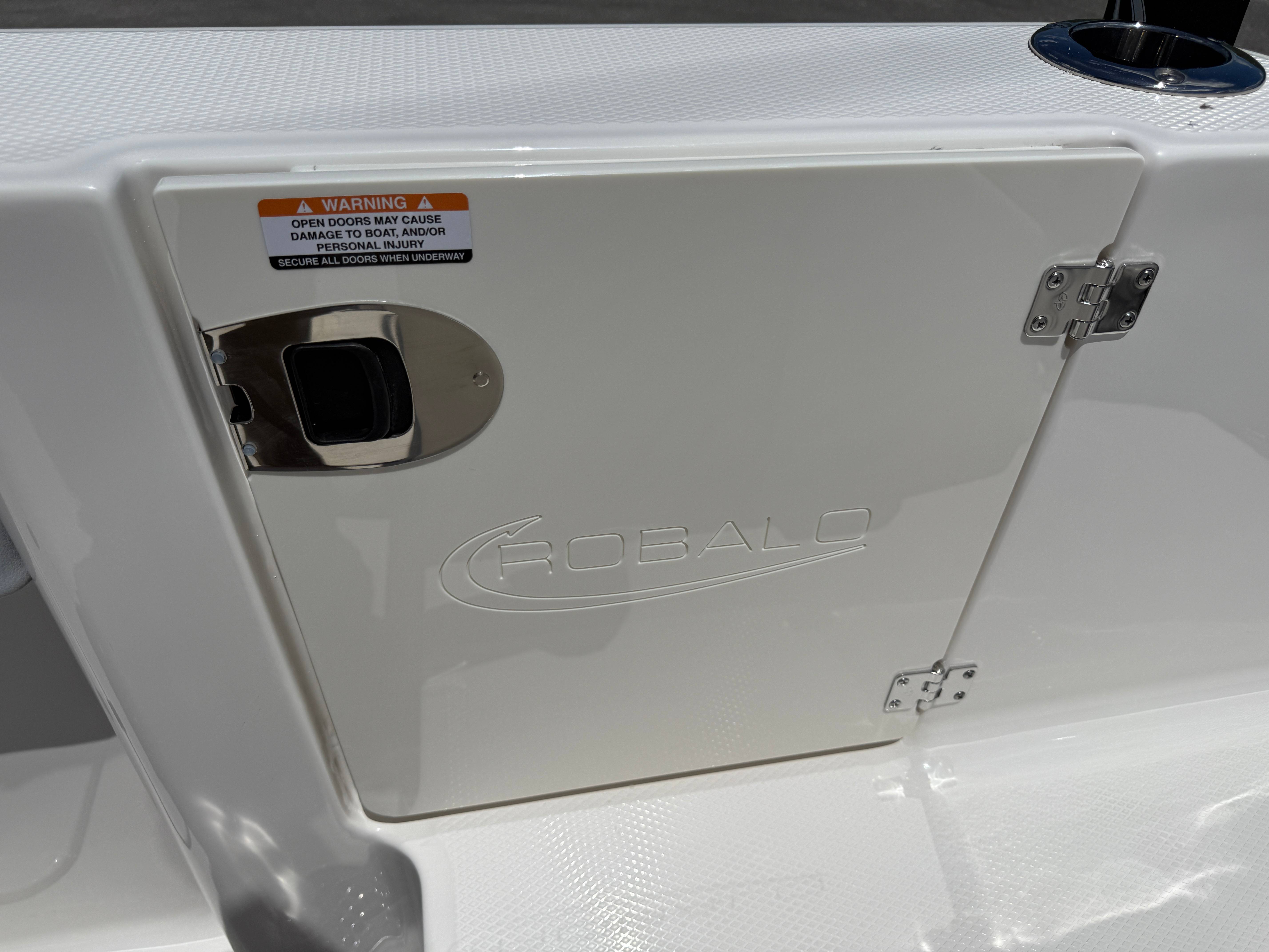 2025 Robalo R250 UNIQUE KEY FEATURES • 20 lb. Galvanized Anchor, 200 Anchor Rope, 15 Chain • 5-Year Premium Level Limited Component Warranty • Cockpit Side Entry Door with Custom SS Frame and Hardware • Digital Gauges • Dual Battery System with Crossover Switch and Voltage Regulating System (VSR) • Fiberglass Hardtop with Powdercoated Frame Includes: Rod Holders, Storage Box, LED Spreader Lights, and Speakers • Freshwater & Raw Water Washdowns/Showers • Full Transom Seat Folds Flush into Transom Wall • In-Floor Storage • Insulated and Overboard Draining Bow Fishboxes • Kevlar Reinforced Hull • Leaning Post Powder Coated with Dual Flip-Up Bolsters, Backrests, Rodholders, and Cooler • Limited Lifetime Hull Warranty • NMMA Certified • Poured Composite Transom Coring • Premium Envision Marine Silicone Upholstery • Transom Livewell • Transom Walkthrough Door • Trim Tabs w/ LED Indicator Lights • Walk-In Head Compartment w/Light & Opening Window • Waterproof Wireless Phone Charging Dock • Wrap Around Cockpit Bolster Padding & Removable Bow Cushions Hull Side Gelcoat - Steel Blue Cockpit Interior - Harbor Mist Hard Top Complete (Black Powder Coated) Hardtop Underside Gel Color - Steel Blue Forward Canvas Fly - White Canvas Leaning Post Cover and Console Cover Twin Simrad NSS12 EVO3S Simrad NMEA 2000 Package with Engine Data and Audio Interface VHF Radio Simrad SS175M Transducer JL Audio Sound System Upgrade Trolling Motor with Triple Bank Charger - Minn Kota Riptide Terrova Quest 36V 115lb Thrust, 87" Gravity Discharge Porcelain Toilet System with 6.5 Gallon Holding Tank and Overboard Discharge Seadek Helm Mat - White Bow Table with Dedicated Storage Bow Filler Cushion Stainless Steel Drink/Rod Holders (2) Leaning Post with Reversible Backrest, 2 Rod Holders and Arm Rest- Black Powder Coated Stainless Steel 20lbs Anchor Stowable Stainless Steel Side Entry Boarding Ladder Windlass Package 5 Year Premium Level Limited Component Warranty Aluminum Tandem Axle Trailer with Aluminum Wheels and Side Guides Spare Tire Kit - Aluminum Wheel