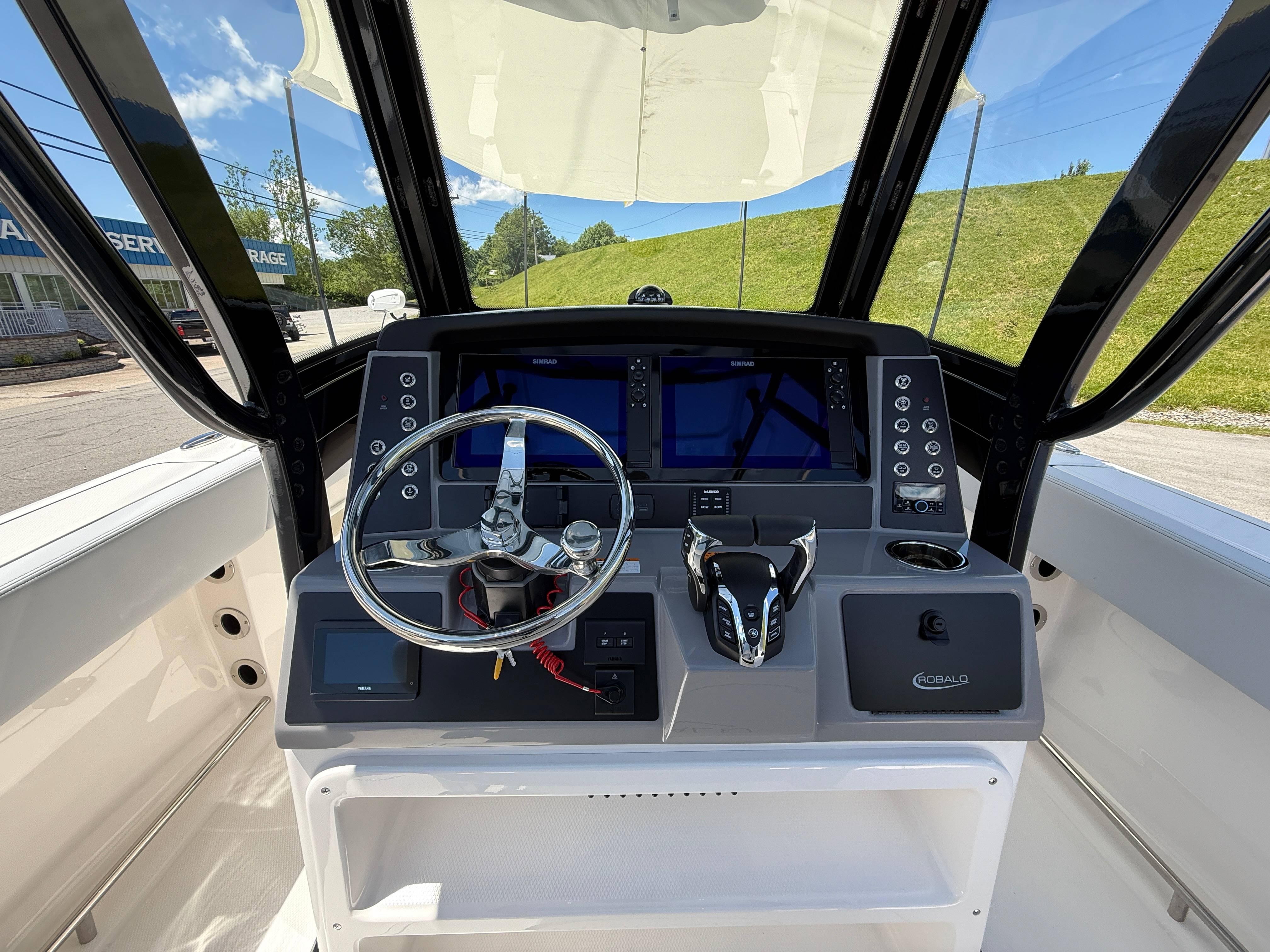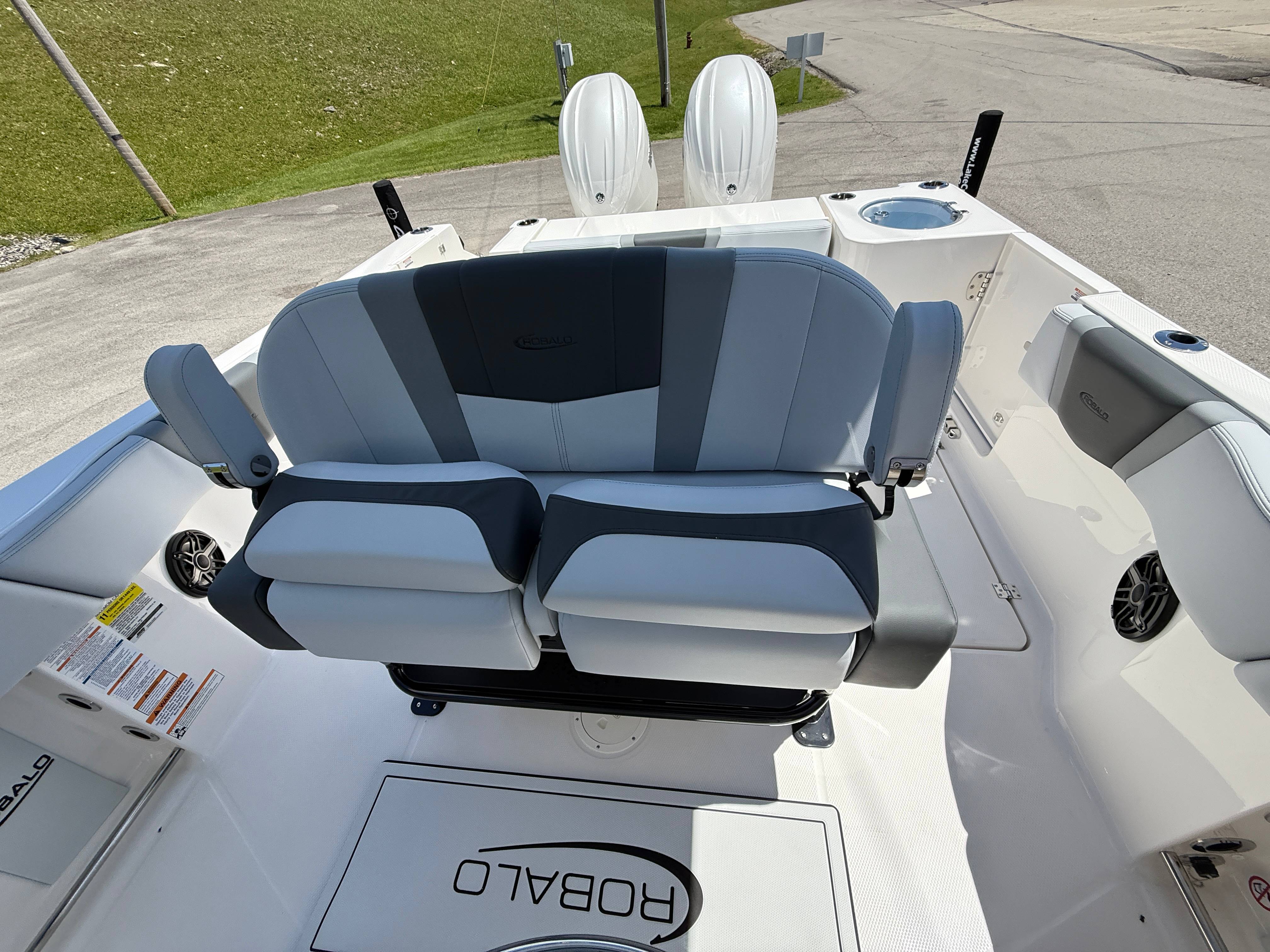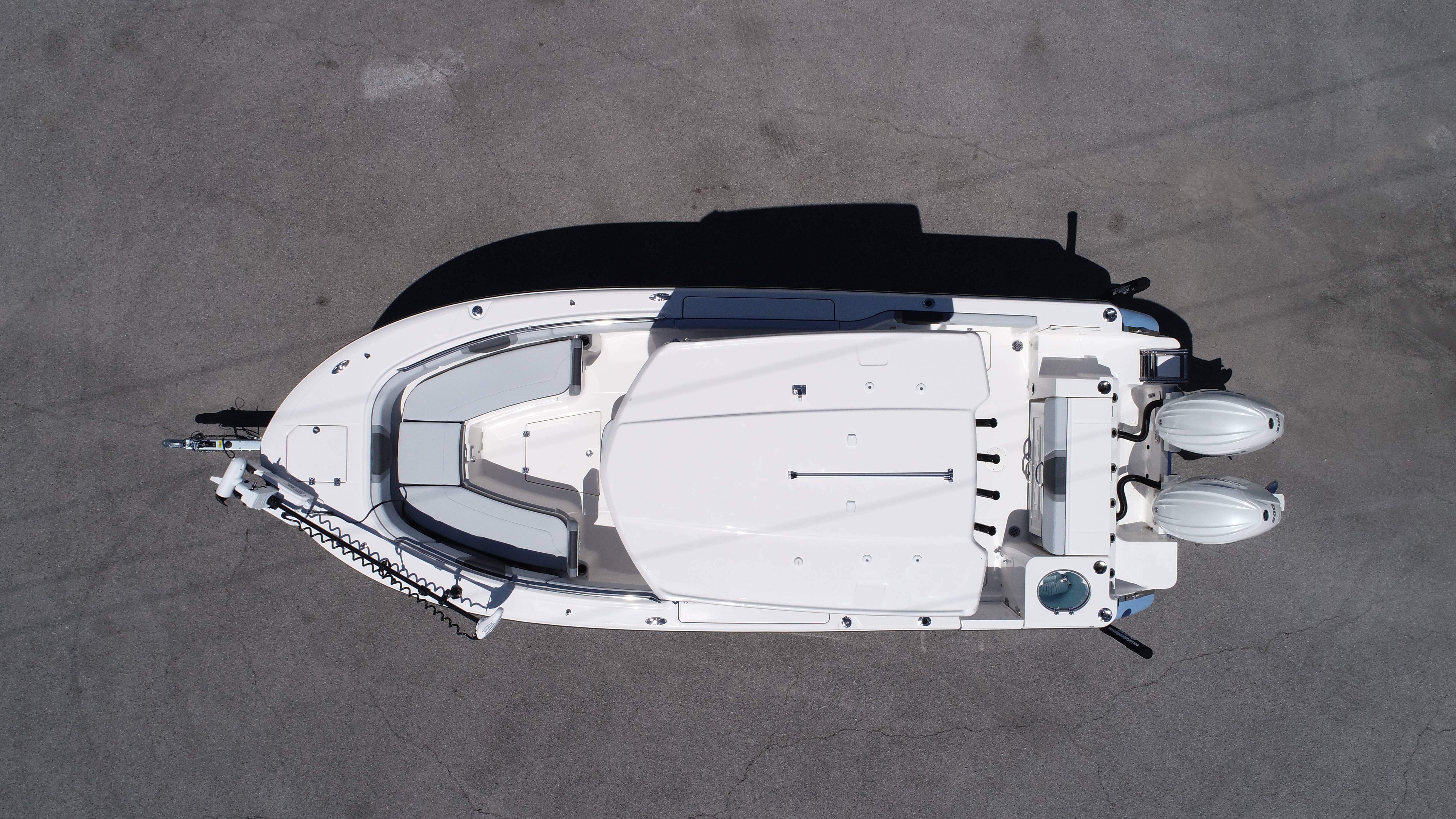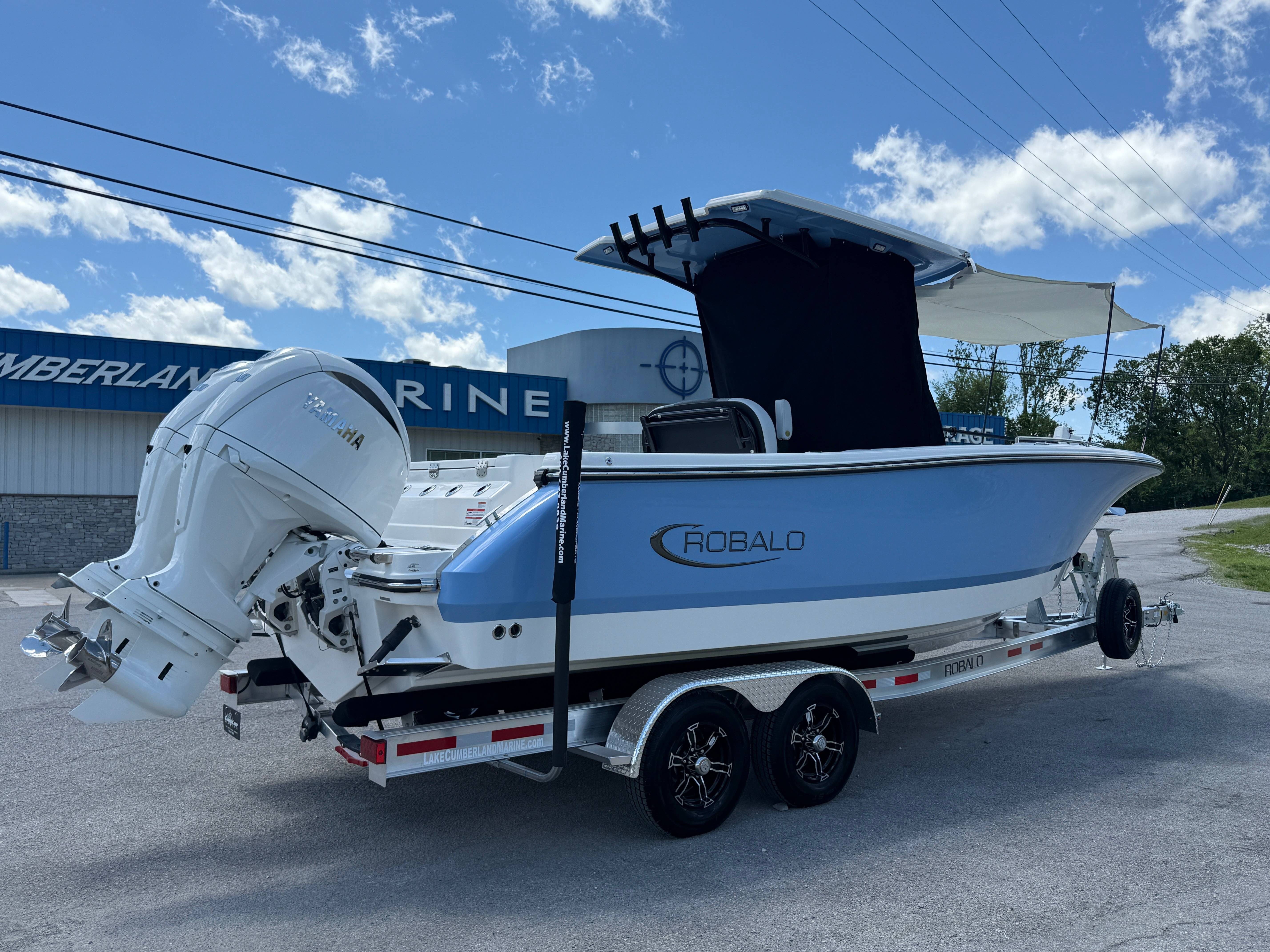 2025 Robalo R250 UNIQUE KEY FEATURES • 20 lb. Galvanized Anchor, 200 Anchor Rope, 15 Chain • 5-Year Premium Level Limited Component Warranty • Cockpit Side Entry Door with Custom SS Frame and Hardware • Digital Gauges • Dual Battery System with Crossover Switch and Voltage Regulating System (VSR) • Fiberglass Hardtop with Powdercoated Frame Includes: Rod Holders, Storage Box, LED Spreader Lights, and Speakers • Freshwater & Raw Water Washdowns/Showers • Full Transom Seat Folds Flush into Transom Wall • In-Floor Storage • Insulated and Overboard Draining Bow Fishboxes • Kevlar Reinforced Hull • Leaning Post Powder Coated with Dual Flip-Up Bolsters, Backrests, Rodholders, and Cooler • Limited Lifetime Hull Warranty • NMMA Certified • Poured Composite Transom Coring • Premium Envision Marine Silicone Upholstery • Transom Livewell • Transom Walkthrough Door • Trim Tabs w/ LED Indicator Lights • Walk-In Head Compartment w/Light & Opening Window • Waterproof Wireless Phone Charging Dock • Wrap Around Cockpit Bolster Padding & Removable Bow Cushions Hull Side Gelcoat - Steel Blue Cockpit Interior - Harbor Mist Hard Top Complete (Black Powder Coated) Hardtop Underside Gel Color - Steel Blue Forward Canvas Fly - White Canvas Leaning Post Cover and Console Cover Twin Simrad NSS12 EVO3S Simrad NMEA 2000 Package with Engine Data and Audio Interface VHF Radio Simrad SS175M Transducer JL Audio Sound System Upgrade Trolling Motor with Triple Bank Charger - Minn Kota Riptide Terrova Quest 36V 115lb Thrust, 87" Gravity Discharge Porcelain Toilet System with 6.5 Gallon Holding Tank and Overboard Discharge Seadek Helm Mat - White Bow Table with Dedicated Storage Bow Filler Cushion Stainless Steel Drink/Rod Holders (2) Leaning Post with Reversible Backrest, 2 Rod Holders and Arm Rest- Black Powder Coated Stainless Steel 20lbs Anchor Stowable Stainless Steel Side Entry Boarding Ladder Windlass Package 5 Year Premium Level Limited Component Warranty Aluminum Tandem Axle Trailer with Aluminum Wheels and Side Guides Spare Tire Kit - Aluminum Wheel