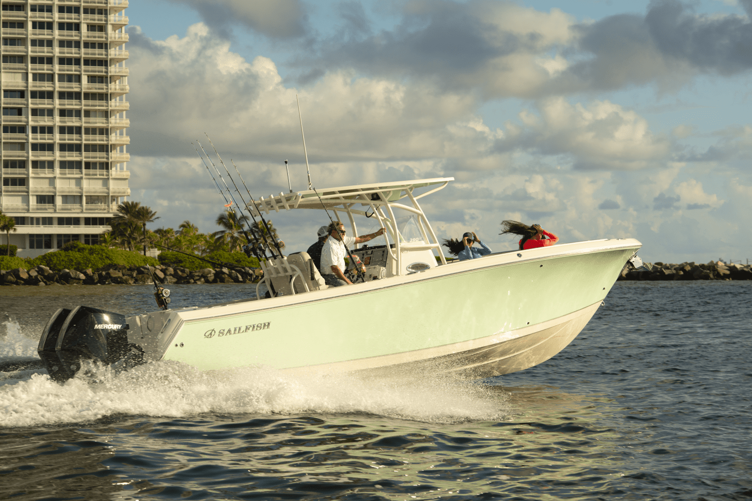 Experience the finest in marine engineering with the Sailfish 290 CC's top-notch construction and precision detailing. Every inch of this vessel exudes elegance and quality.