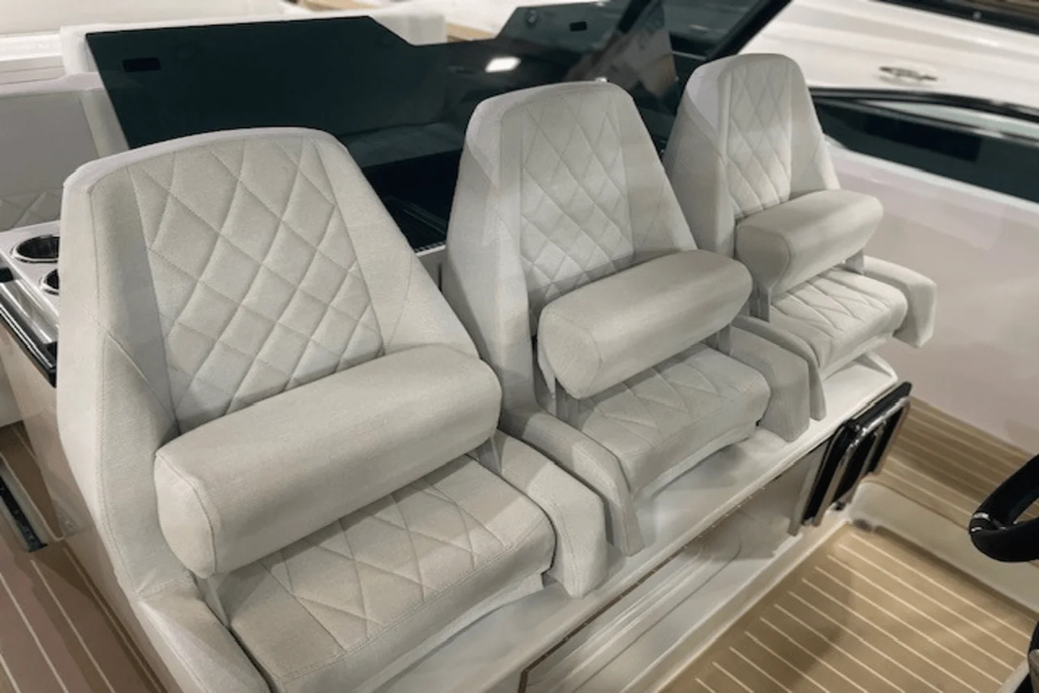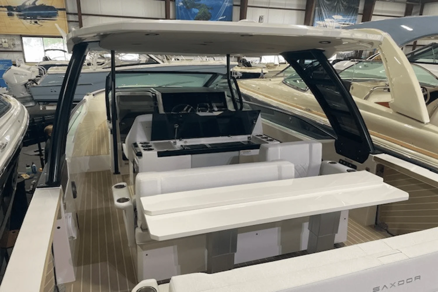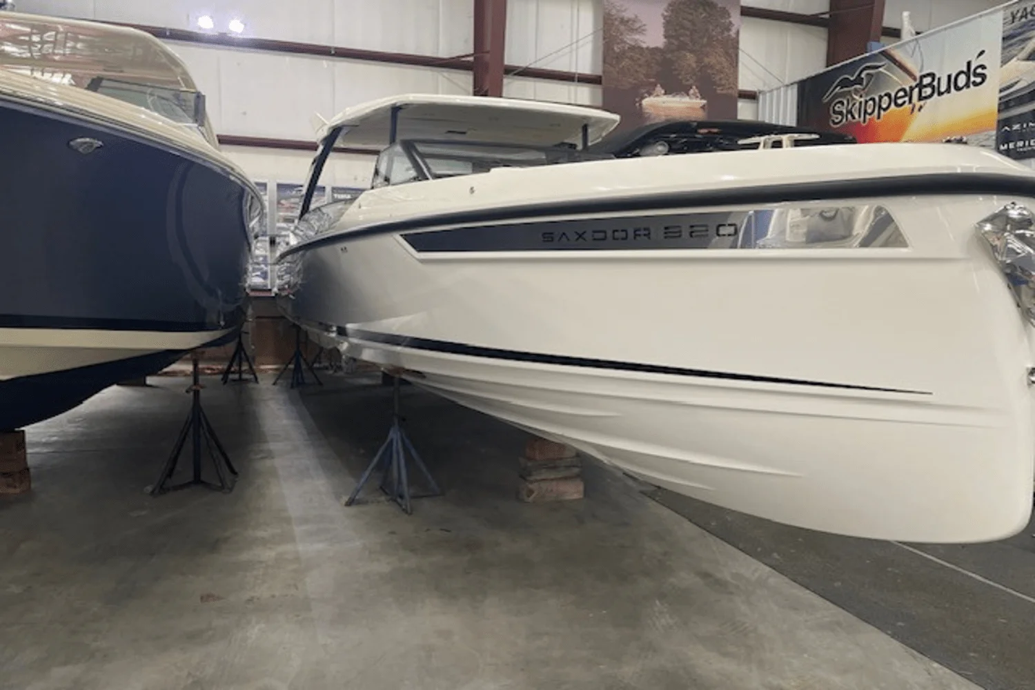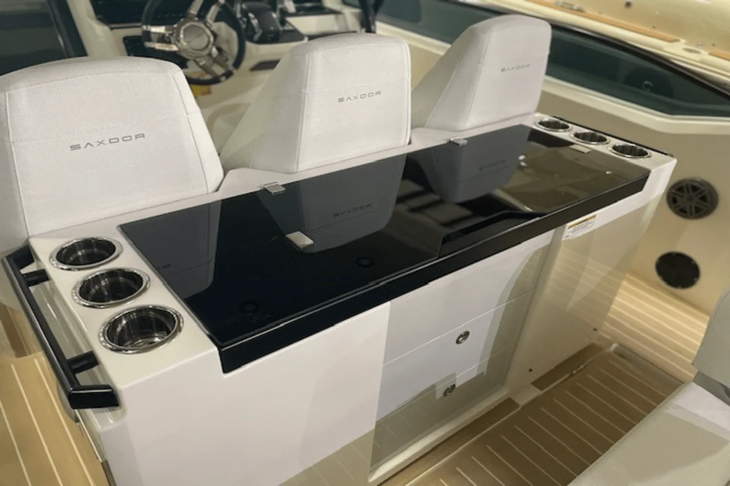 Act fast on this limited-time offer! Saxdor 320 GTO with a T-top and walk-around deck is the first boat in the series, but two different deck variations will follow. All three versions share exquisite design, fast, powerful outboard performance, and a refined, economical hull shape. Maximum power will be twin 300hp Mercurys while the single V8 engine with 300hp is estimated to have a 40-knot top speed with cruising speed close to 30 knots. With twin 300hp outboards, Saxdor 320 will achieve a top speed of well over 50 knots with an optimum cruising band between 20 and 40 knots.