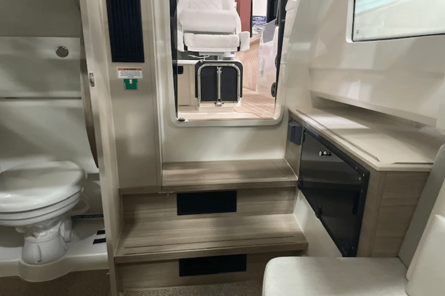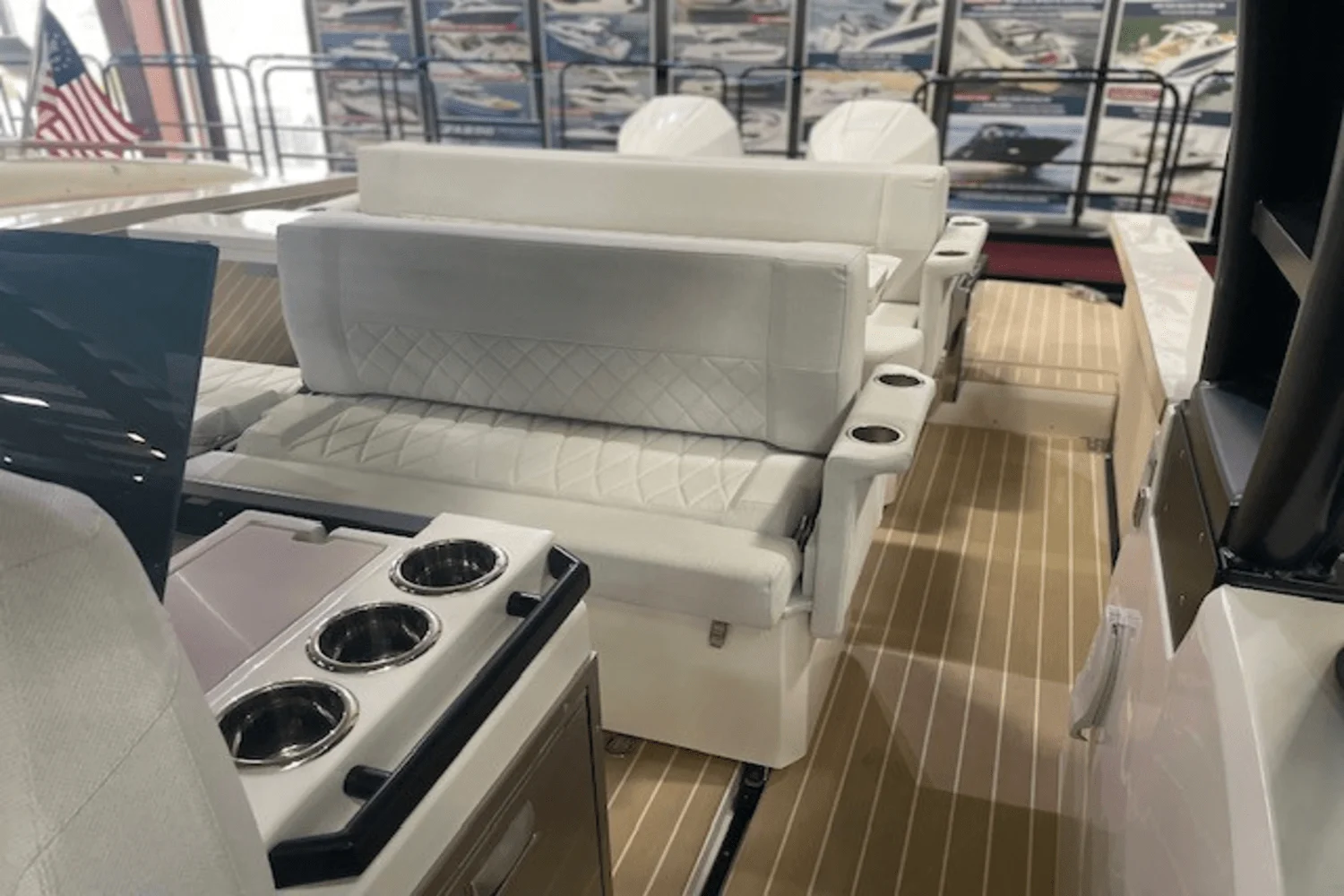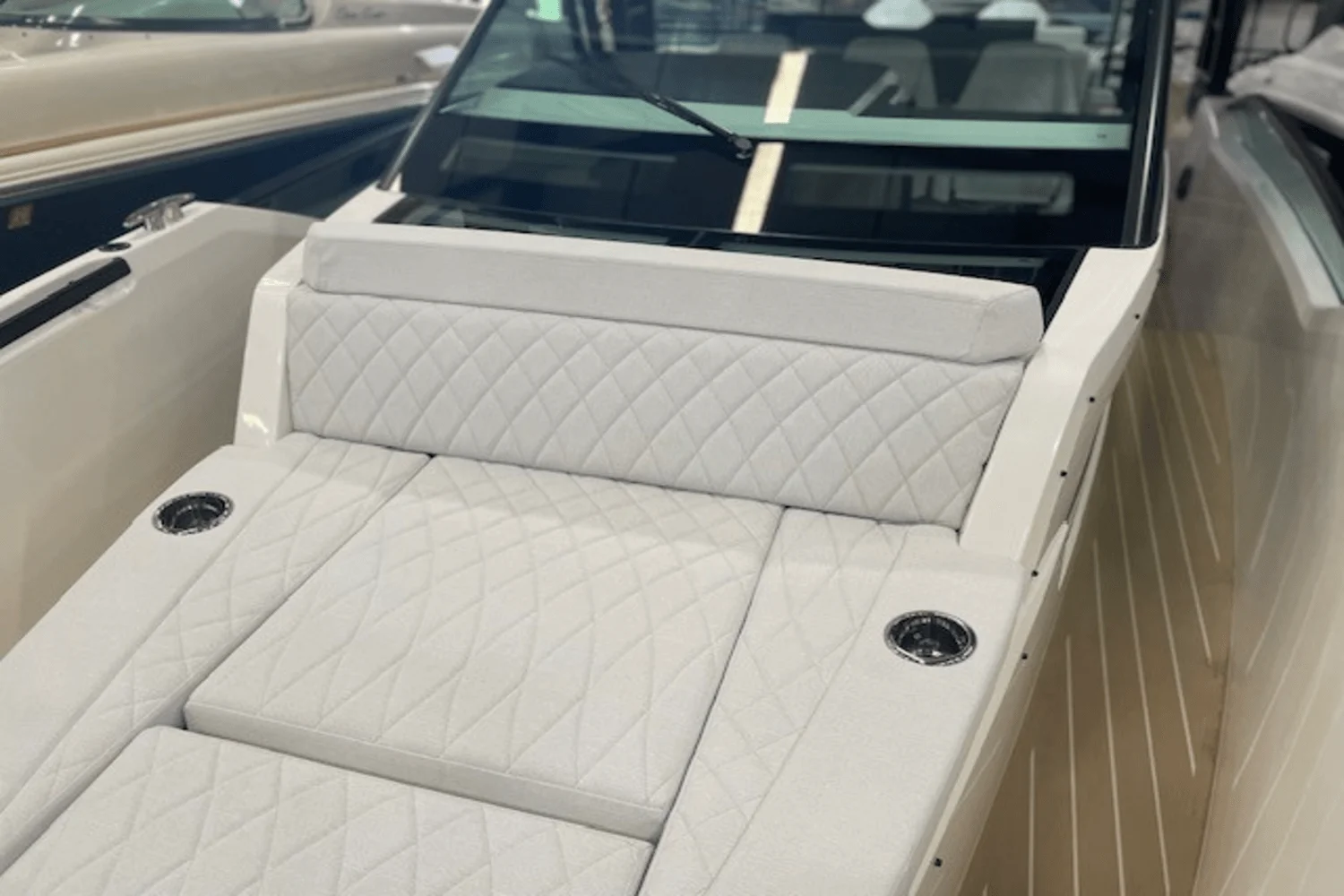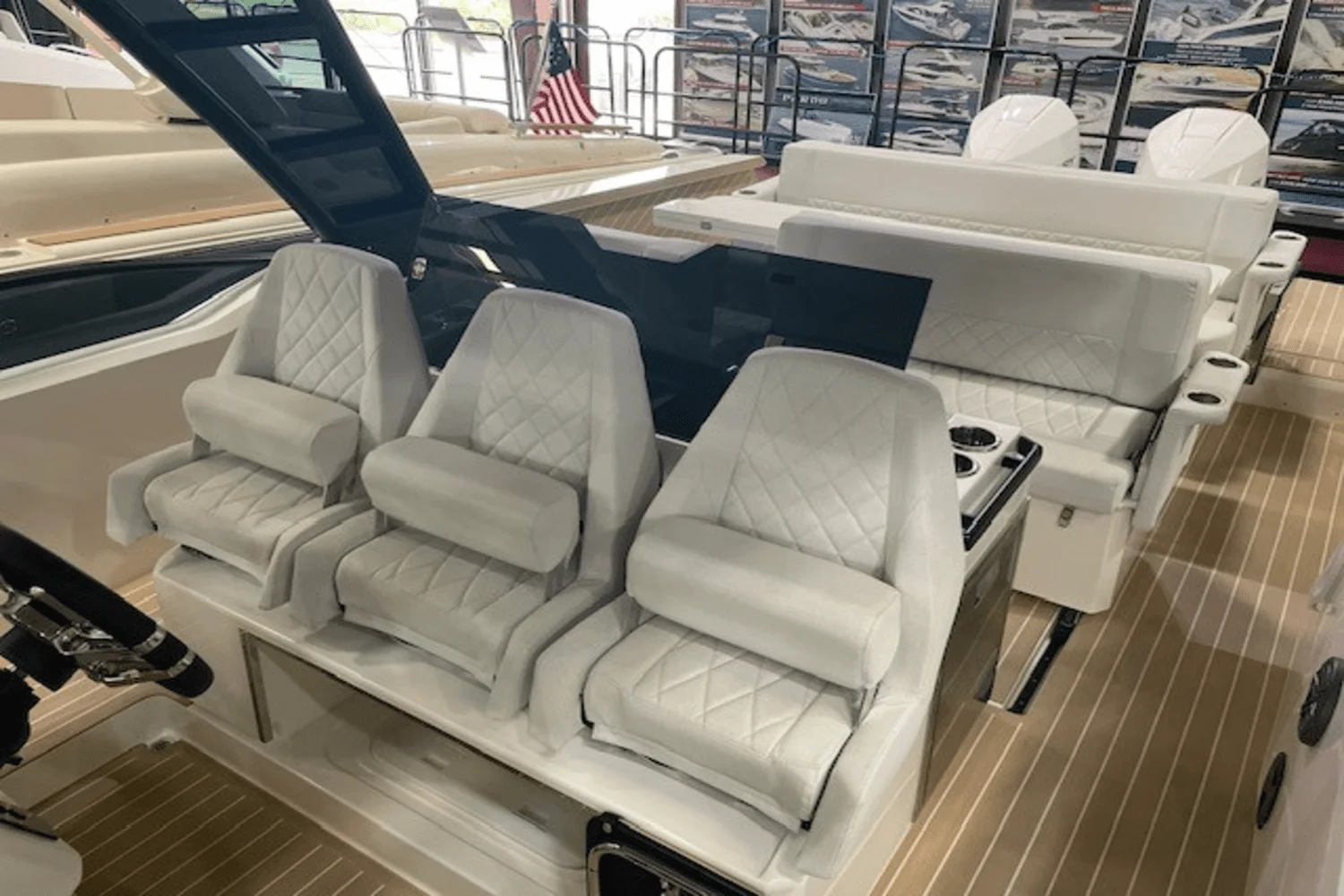 Act fast on this limited-time offer! Saxdor 320 GTO with a T-top and walk-around deck is the first boat in the series, but two different deck variations will follow. All three versions share exquisite design, fast, powerful outboard performance, and a refined, economical hull shape. Maximum power will be twin 300hp Mercurys while the single V8 engine with 300hp is estimated to have a 40-knot top speed with cruising speed close to 30 knots. With twin 300hp outboards, Saxdor 320 will achieve a top speed of well over 50 knots with an optimum cruising band between 20 and 40 knots.