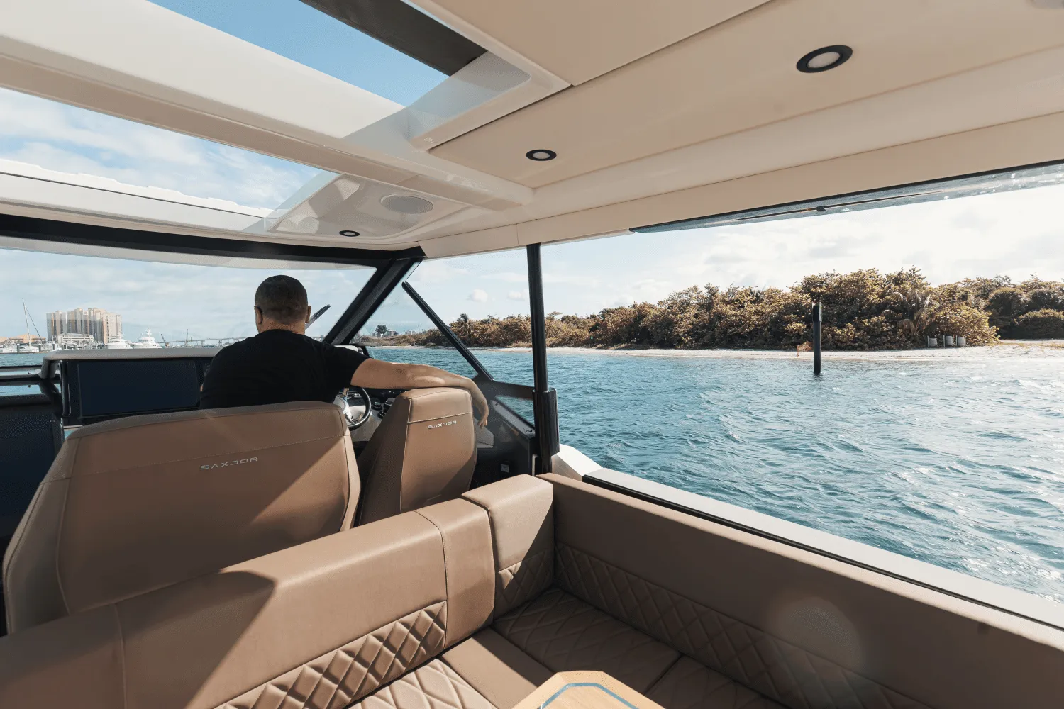Craftsmanship Step aboard this new vessel with gleaming Saxdor design, known for its premium quality and attention to detail, ensuring a sophisticated boating experience.