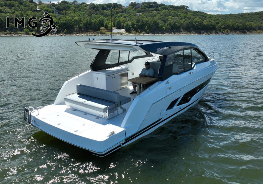 Step aboard the brand new 2025 Schaefer 375, a luxury sport cruiser powered by twin MerCruiser 8.2 MAG HO engines. This powerhouse combination delivers exhilarating performance with 860 total horsepower, effortlessly blending speed and elegance on the water.