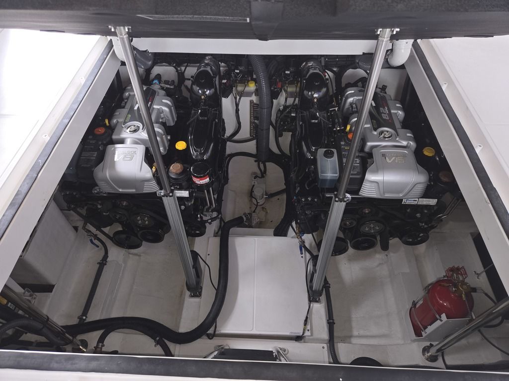 Twin MerCruiser 8.2 MAG HO engines: Unmatched power and reliability, pushing you across the waves with thrilling acceleration and smooth cruising.