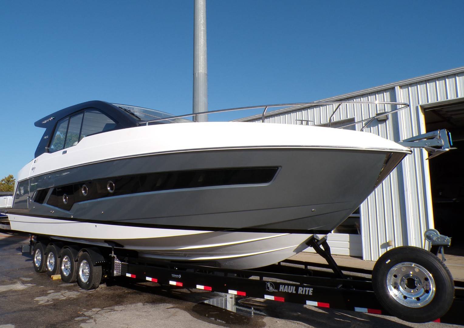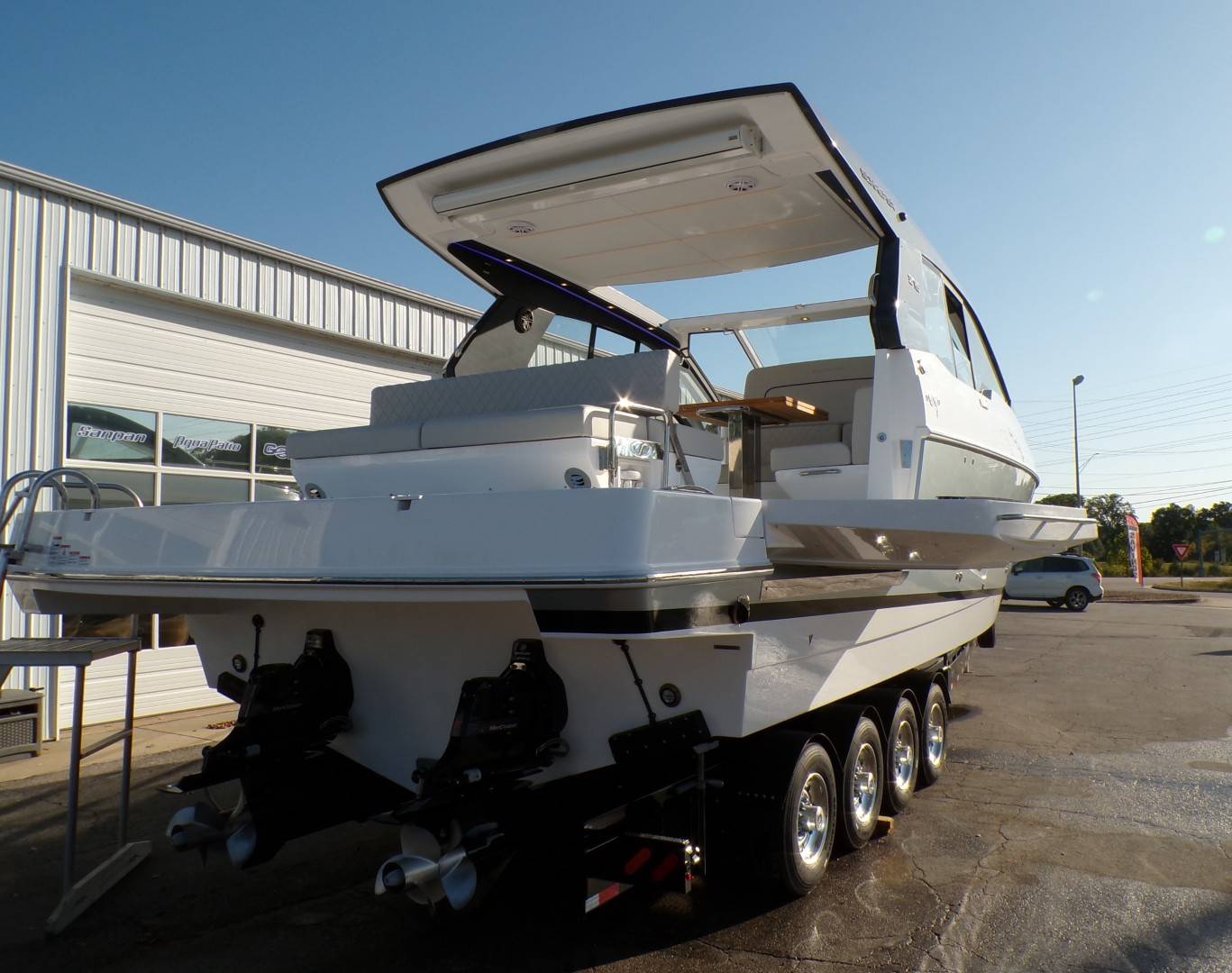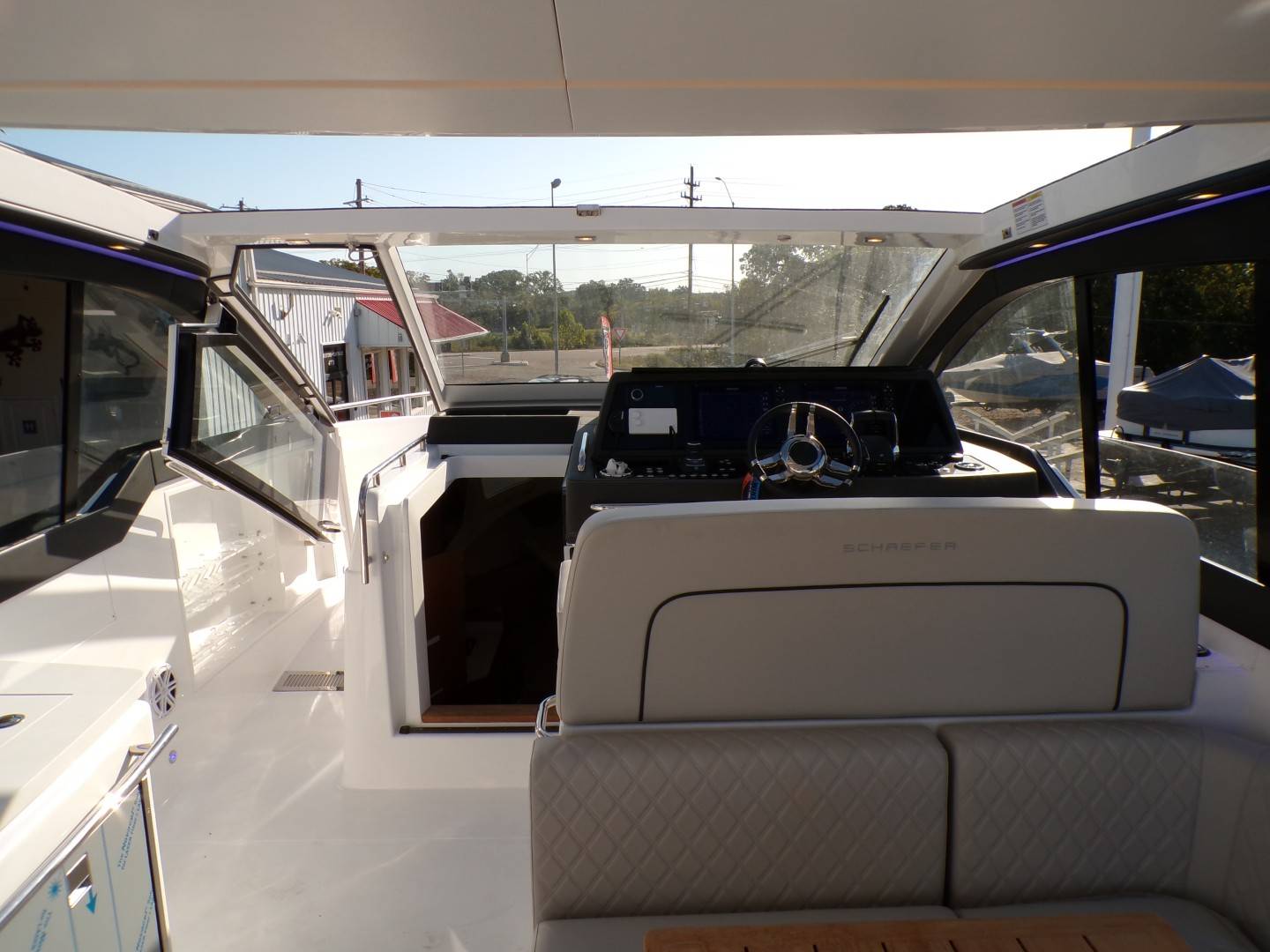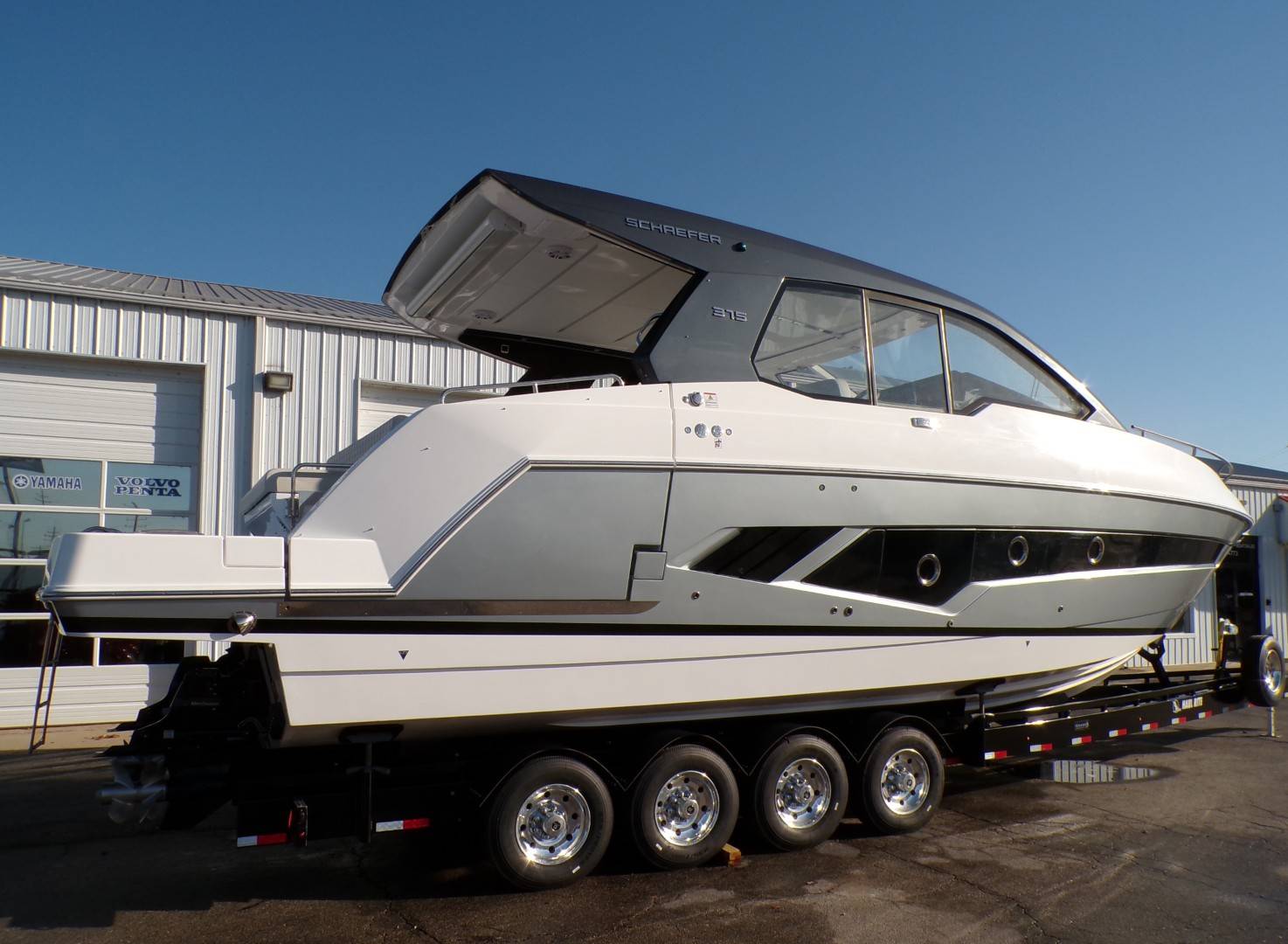 Experience Unsurpassed Luxury With the 2025 Schaefer Yacht 380 Introducing the impressive 2025 Schaefer Yacht 380 , a sophisticated blend of exceptional engineering and unparalleled design. This luxury yacht is boldly equipped with twin powerhouse MerCruiser 8.2 HO Mag motors , acclaimed for their first-rate power performance and remarkable fuel efficiency. Navigate the open waters with confidence and pleasure using the yacht's state-of-the-art technologies, including the Mercury Joystick, Axius, and Skyhook systems . These revolutionary systems enhance steering precision, vessel stability, and maneuverability, ensuring seamlessly smooth and worry-free boating experiences throughout the entire year. Premium Standard Features The Schaefer Yacht 380 comes fully loaded with an extensive assortment of standard features, designed to guarantee that every voyage is a luxurious, comfortable, and efficient experience: Exterior and cockpit Hard top with an Power retractable sunroof - fiberglass Two automatic, fold-down balconies - Beach doors Gourmet area with a grill, sink, and refrigerator Walk-through windshield to the bow with a secure door Bow area with a sun lounge, armrests, and cup holders Ample seating throughout the cockpit Electric windows and LED lighting Swim platform with a ladder Windlass with a stainless steel anchor Helm Double bolster seat for the helm Air conditioning Phone charging stations Dual large screens for navigation Trim tab and engine controls VHF radio and Fusion sound system Cabin Accommodations for up to four people, including an aft and forward berth Full head with an electric toilet and a separate, enclosed shower Galley with a sink, faucet, storage, microwave, and refrigerator LED TV Solid wood cabinetry and furniture Performance and other features Generator Air conditioning Joy stick functionality for effortless maneuvering Automatic fire suppression system Premium Features and Options on this unit NAVIGATION · 2 x GPS Simrad NSS12 evo3S + Plotter + Sonar · VHF Radio with + Antenna PERFORMANCE AND TECHNOLOGY · Windlass kit with articulated support · Electric Trim Tabs CUSTOM AUDIO SYSTEM · JL Sound System: includes 10 speakers + amplifier + subwoofer by JL + Fusion Apollo RA770 player POWER AND COMFORT · 7.5 kW Diesel Generator · Battery charger + cable + shore power inlet and cord. · 12v Outlet in Dashboard · Cabin A/C · Cockpit A/C · Cockpit refrigerator · Electric Barbecue Grill · Microwave · LED TV in Cabin · Hot water system for Head · Underwater lights: Seablaze, Set of 2 - Blue/White SHADE COMFORT AND FUN · Electric Awning - Stobag Full power with remote · Stern enclosure in canvas · Bow cover · Ski tow bar EXTERIOR DESIGN · Boot stripe – Black · Main Color Panel – Custom color Graphite · T-Top Dark - Grey FURNITURE COLOR SCHEME · Portofino INTERNAL UPHOLSTERY COLOR · Light Grey Leather EXTERNAL UPHOLSTERY COLOR · Light Grey · Layout 6F - Central aft bench with center backrest to face forward or aft, L-shaped seat, two entrances, gourmet inside FLOORING · Custom Sea Deck Flooring – Customer / Buyers Choice WARRANTY Schaefer Factory Warranty - 1-Year 'Bumper-to-Bumper' Schaefer Factory Warranty - 2-Year Electrical Warranty Schaefer Factory Warranty - 10-Year Hull and Structural Warranty MSRP with options selected: $ 752,107.00 Conclusion Relish an unparalleled boating experience aboard the 2025 Schaefer Yacht 380, where every detail is meticulously crafted for a top-tier and memorable sea journey. It's time to sail in style and enjoy the luxurious maritime lifestyle that awaits you on this impeccable peri-style yacht.