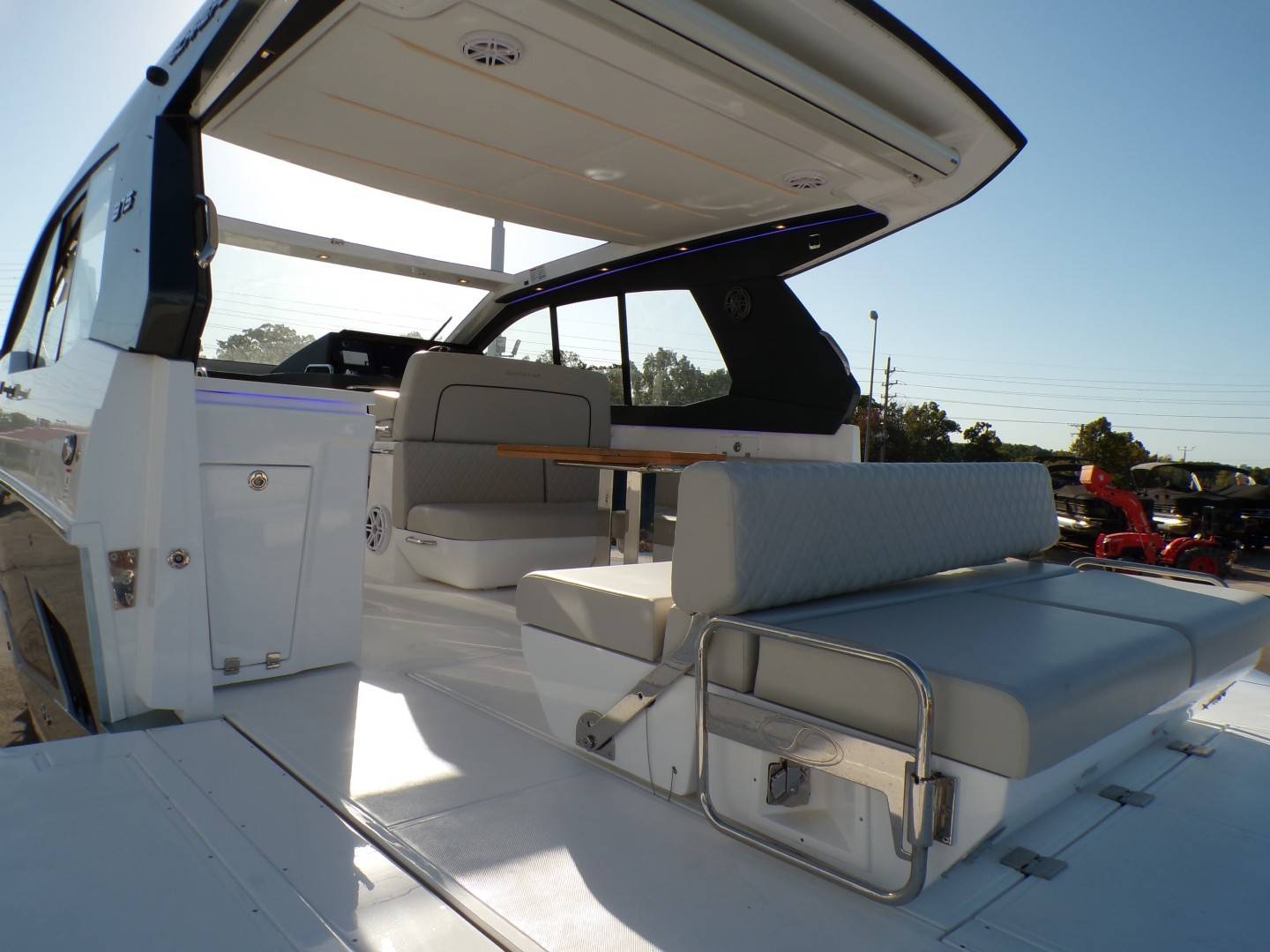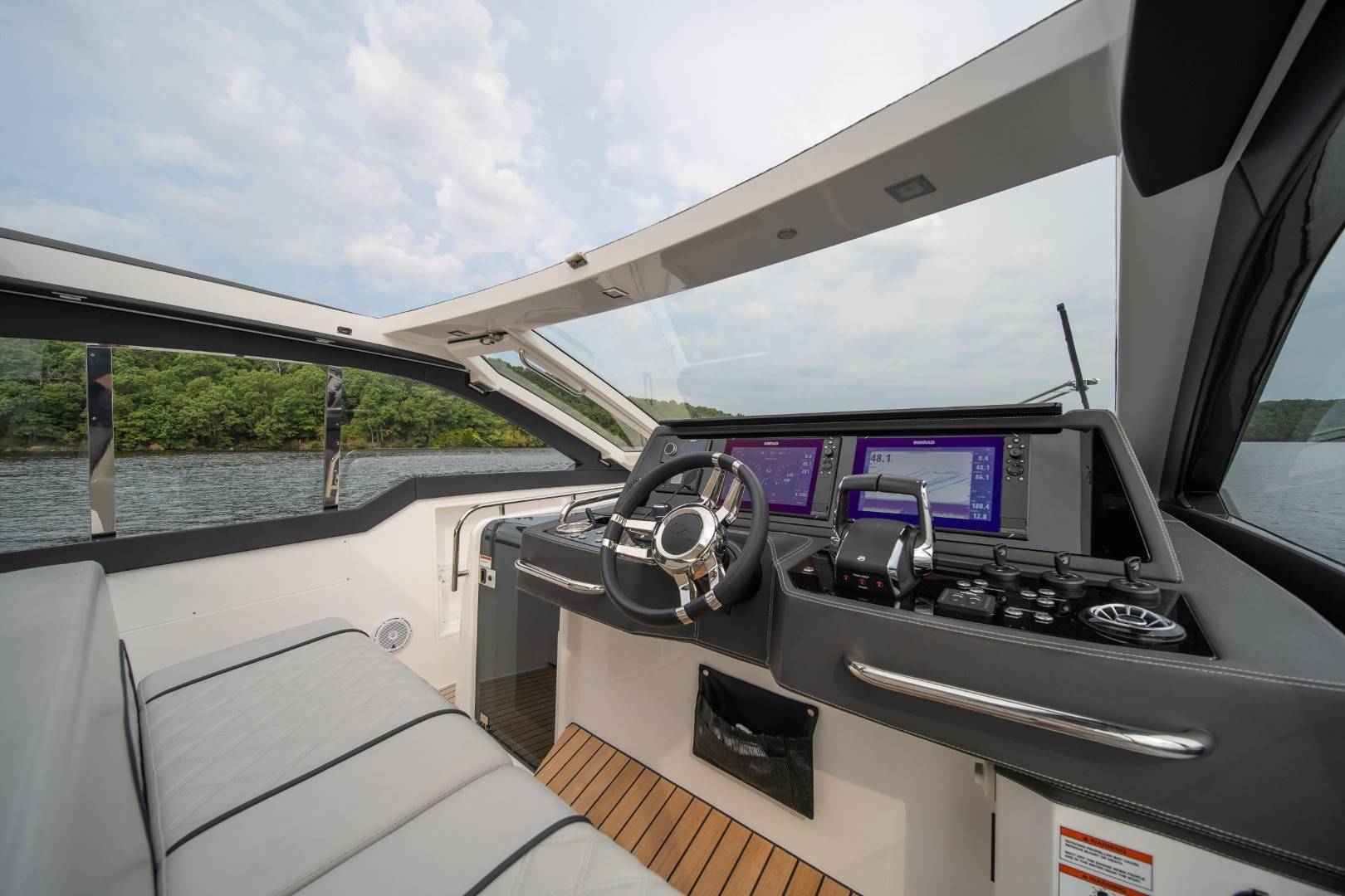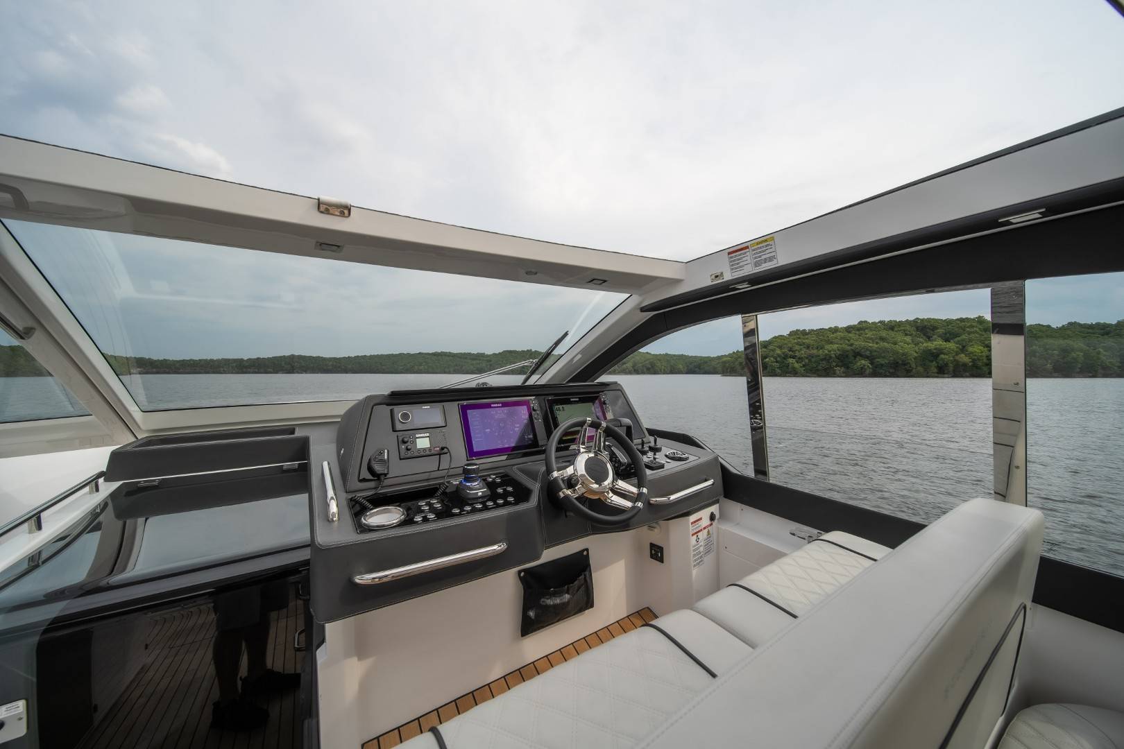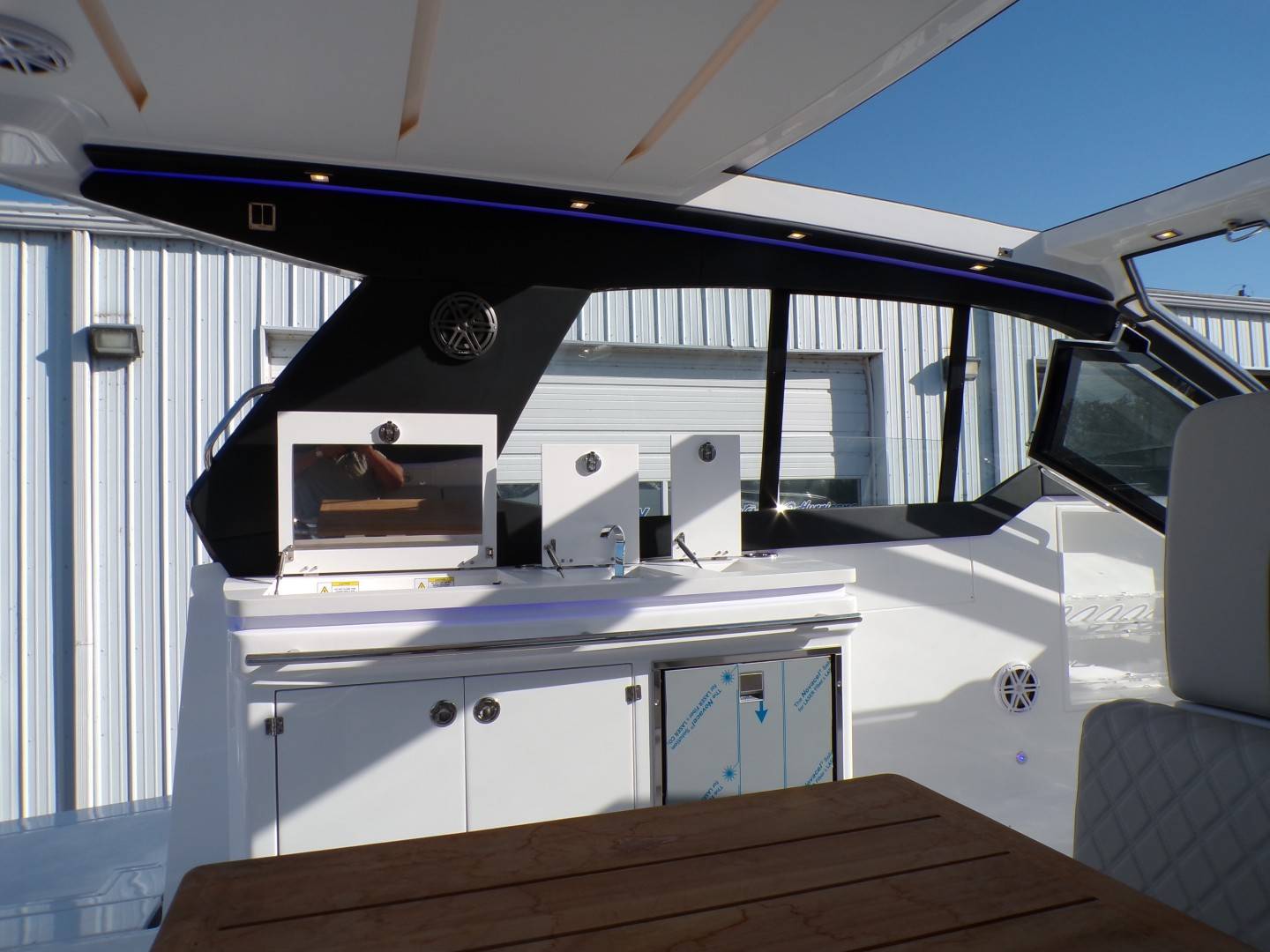 Experience Unsurpassed Luxury With the 2025 Schaefer Yacht 380 Introducing the impressive 2025 Schaefer Yacht 380 , a sophisticated blend of exceptional engineering and unparalleled design. This luxury yacht is boldly equipped with twin powerhouse MerCruiser 8.2 HO Mag motors , acclaimed for their first-rate power performance and remarkable fuel efficiency. Navigate the open waters with confidence and pleasure using the yacht's state-of-the-art technologies, including the Mercury Joystick, Axius, and Skyhook systems . These revolutionary systems enhance steering precision, vessel stability, and maneuverability, ensuring seamlessly smooth and worry-free boating experiences throughout the entire year. Premium Standard Features The Schaefer Yacht 380 comes fully loaded with an extensive assortment of standard features, designed to guarantee that every voyage is a luxurious, comfortable, and efficient experience: Exterior and cockpit Hard top with an Power retractable sunroof - fiberglass Two automatic, fold-down balconies - Beach doors Gourmet area with a grill, sink, and refrigerator Walk-through windshield to the bow with a secure door Bow area with a sun lounge, armrests, and cup holders Ample seating throughout the cockpit Electric windows and LED lighting Swim platform with a ladder Windlass with a stainless steel anchor Helm Double bolster seat for the helm Air conditioning Phone charging stations Dual large screens for navigation Trim tab and engine controls VHF radio and Fusion sound system Cabin Accommodations for up to four people, including an aft and forward berth Full head with an electric toilet and a separate, enclosed shower Galley with a sink, faucet, storage, microwave, and refrigerator LED TV Solid wood cabinetry and furniture Performance and other features Generator Air conditioning Joy stick functionality for effortless maneuvering Automatic fire suppression system Premium Features and Options on this unit NAVIGATION · 2 x GPS Simrad NSS12 evo3S + Plotter + Sonar · VHF Radio with + Antenna PERFORMANCE AND TECHNOLOGY · Windlass kit with articulated support · Electric Trim Tabs CUSTOM AUDIO SYSTEM · JL Sound System: includes 10 speakers + amplifier + subwoofer by JL + Fusion Apollo RA770 player POWER AND COMFORT · 7.5 kW Diesel Generator · Battery charger + cable + shore power inlet and cord. · 12v Outlet in Dashboard · Cabin A/C · Cockpit A/C · Cockpit refrigerator · Electric Barbecue Grill · Microwave · LED TV in Cabin · Hot water system for Head · Underwater lights: Seablaze, Set of 2 - Blue/White SHADE COMFORT AND FUN · Electric Awning - Stobag Full power with remote · Stern enclosure in canvas · Bow cover · Ski tow bar EXTERIOR DESIGN · Boot stripe – Black · Main Color Panel – Custom color Graphite · T-Top Dark - Grey FURNITURE COLOR SCHEME · Portofino INTERNAL UPHOLSTERY COLOR · Light Grey Leather EXTERNAL UPHOLSTERY COLOR · Light Grey · Layout 6F - Central aft bench with center backrest to face forward or aft, L-shaped seat, two entrances, gourmet inside FLOORING · Custom Sea Deck Flooring – Customer / Buyers Choice WARRANTY Schaefer Factory Warranty - 1-Year 'Bumper-to-Bumper' Schaefer Factory Warranty - 2-Year Electrical Warranty Schaefer Factory Warranty - 10-Year Hull and Structural Warranty MSRP with options selected: $ 752,107.00 Conclusion Relish an unparalleled boating experience aboard the 2025 Schaefer Yacht 380, where every detail is meticulously crafted for a top-tier and memorable sea journey. It's time to sail in style and enjoy the luxurious maritime lifestyle that awaits you on this impeccable peri-style yacht.