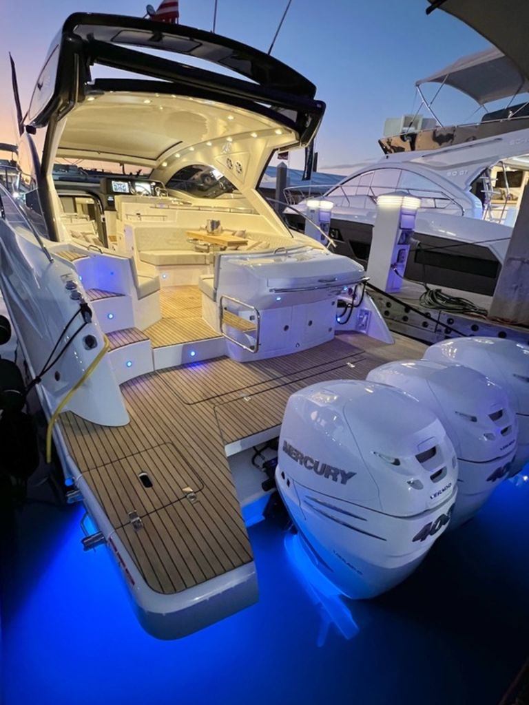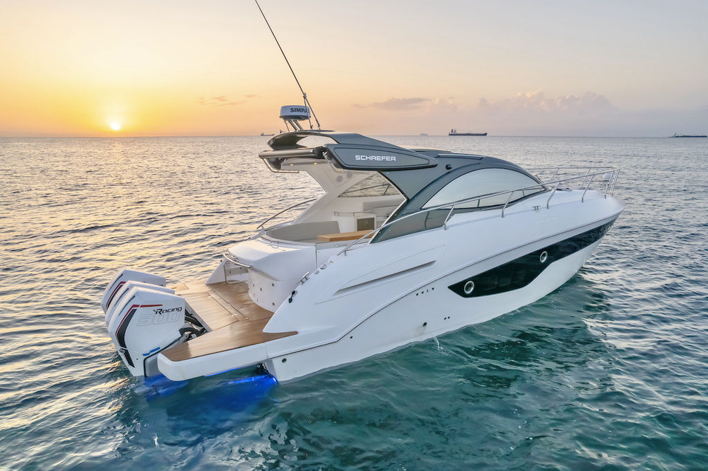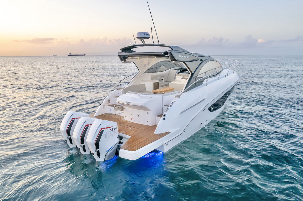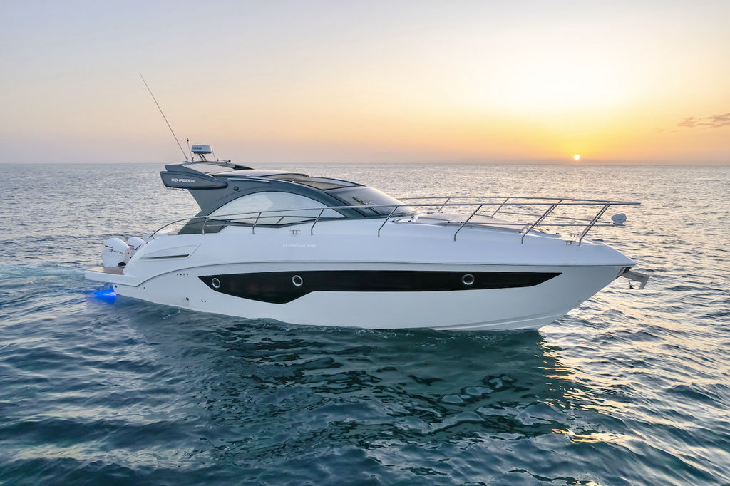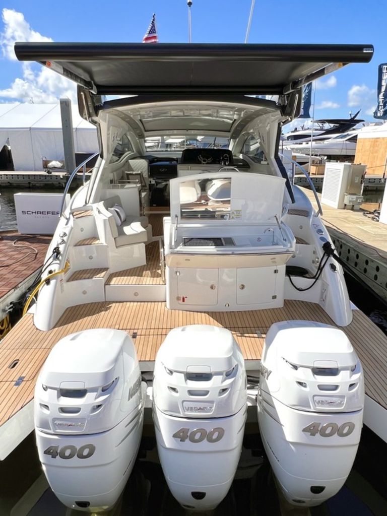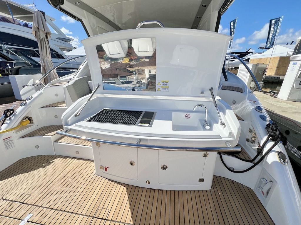 The model showcases a unique hard top for its category. A generous deck with gourmet space strengthens Schaefer Yachts’ tradition of maximizing the external space.