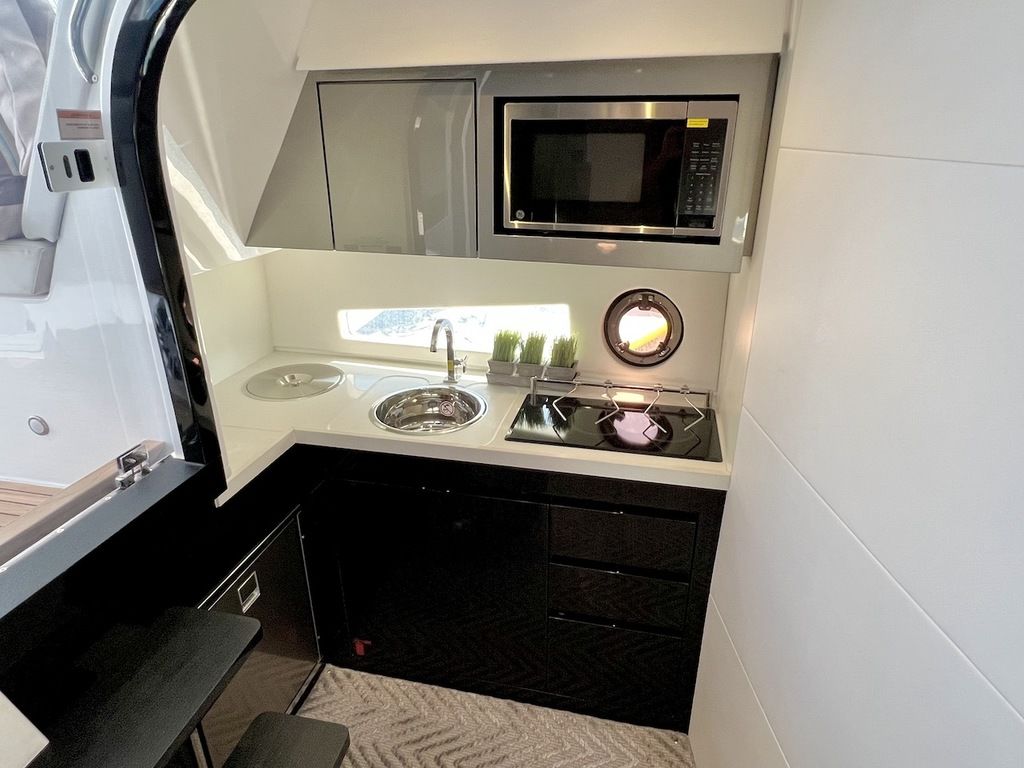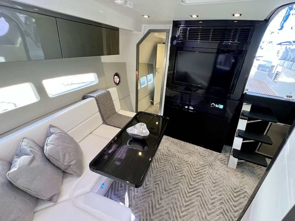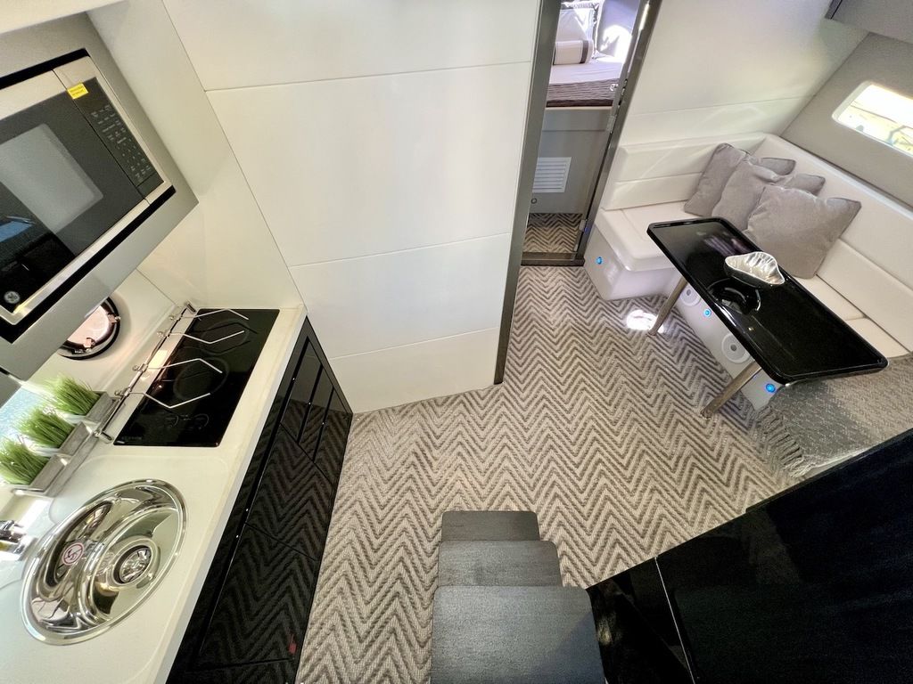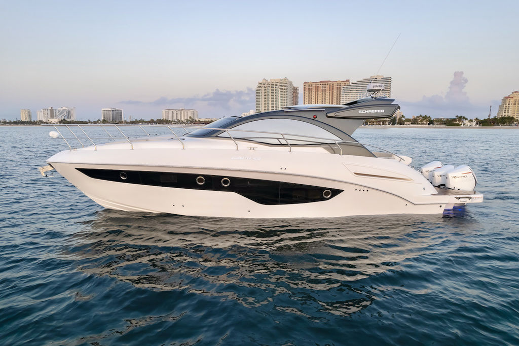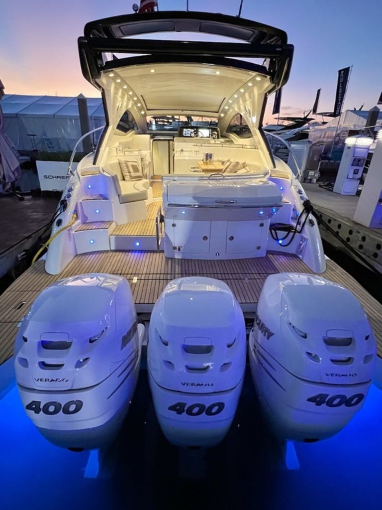 The model showcases a unique hard top for its category. A generous deck with gourmet space strengthens Schaefer Yachts’ tradition of maximizing the external space.