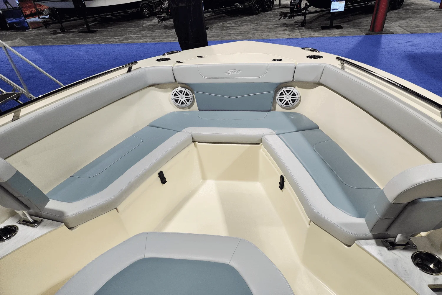 Contact us to findĀ out ALL available savings! Open water excitement begins the minute you step aboard our 255 LXF. The incredible ride and performance not only make it fun to drive, but the boat's lines will make you the envy of all your friends as you pull up to your rendezvous point. There's ample space throughout the boat to move around freely, and for storage, including the large under-console seat cooler and additional storage located in the bow below the forward seating area with removable backrests. An innovative fold-out table and extra hide-away cooler are ideal for entertaining or just relaxing out on the open water. Aft, you'll find additional seating with the fold-down transom seat. Available with stainless steel rod and cup holders and upholstery color upgrades, you can also get your 255 in one of our beautiful hull color options.