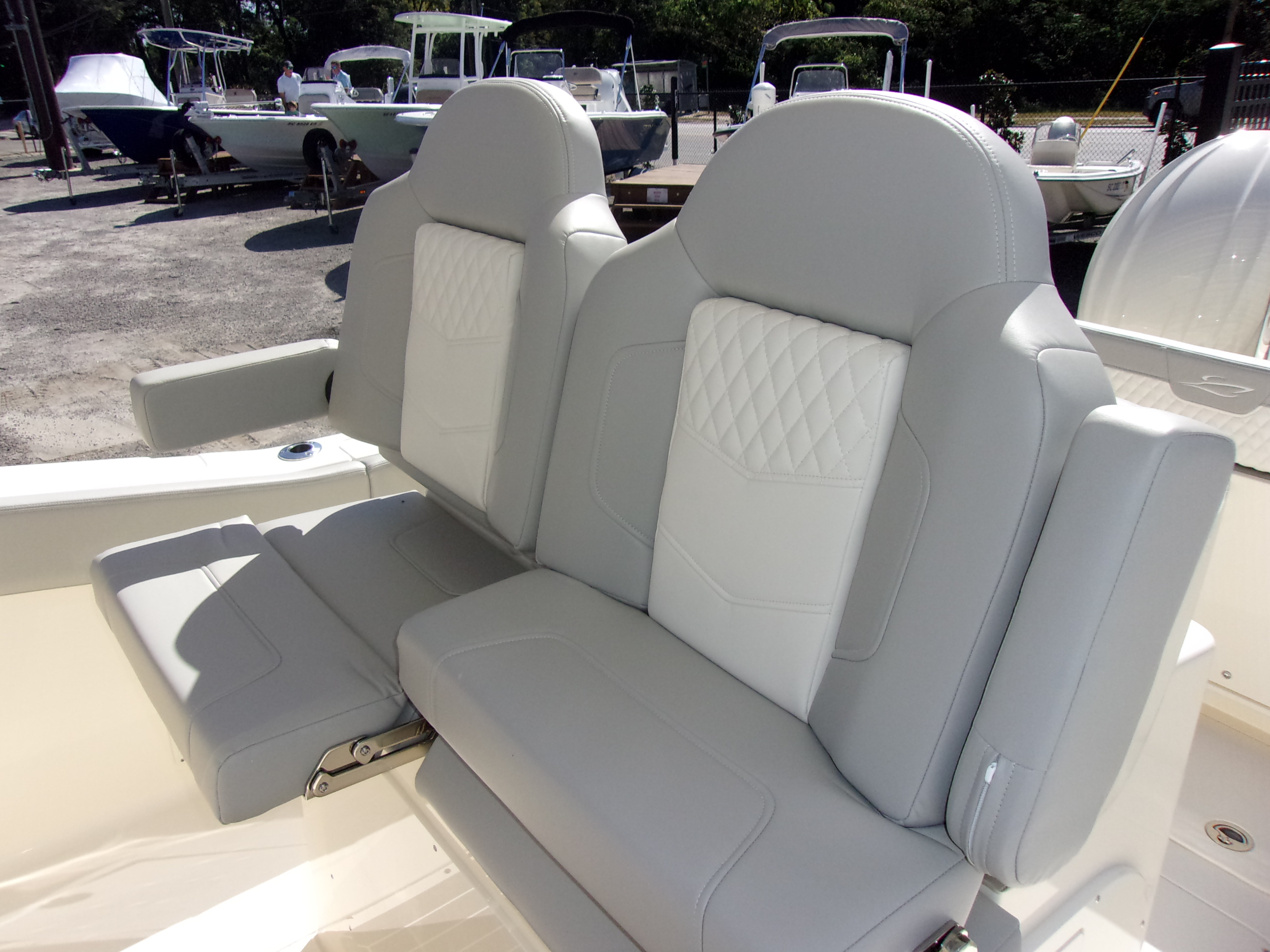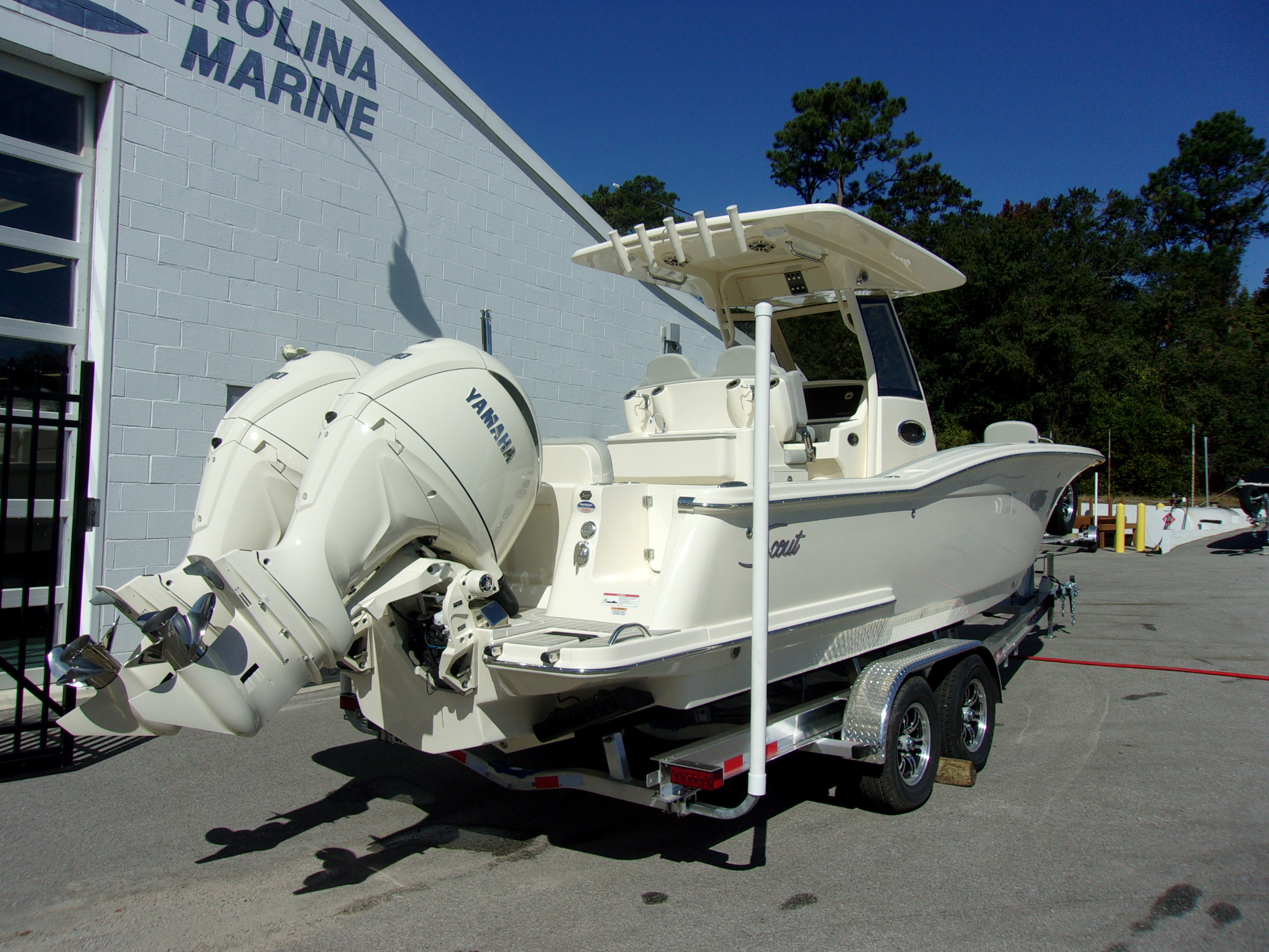 2025 Scout 277 LXF with twin Yamaha F-200XSA2 with Wesco tandem axle trailer. Boat features Helm Master EX joystick control, stern anchor storage, deluxe stereo upgrade, SeaKeeper Ride System, Overboard discharge, ski pylon, bow rod holders, Esthec swim platform upgrade and ski pylon! Price includes boat, motor, trailer, dealer prep and freight.