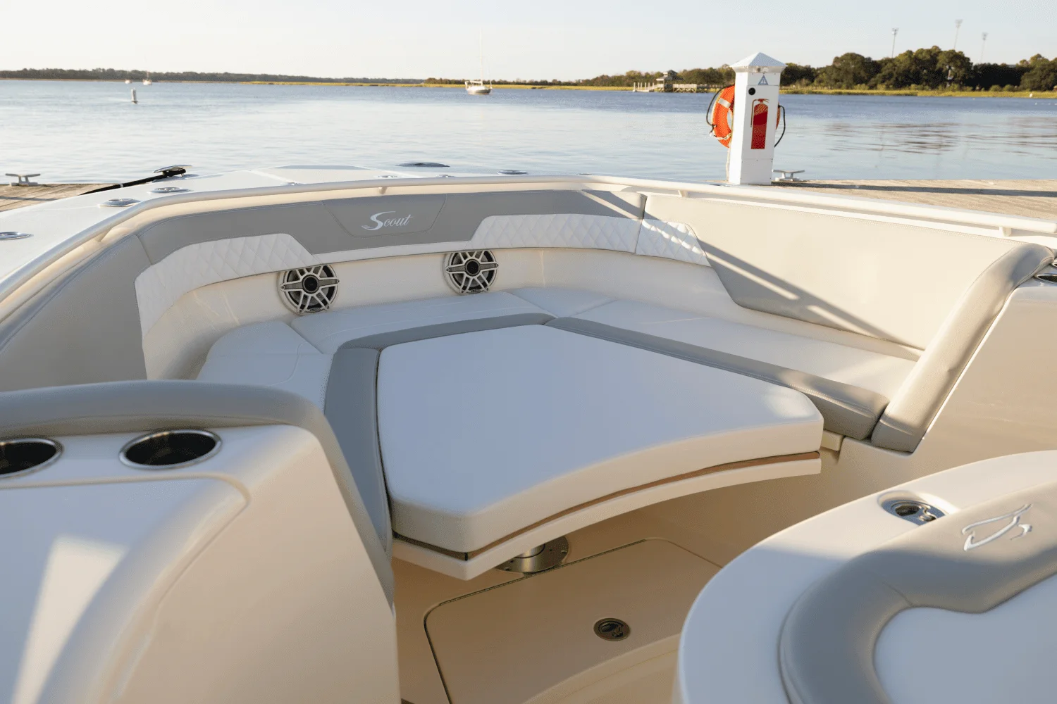 Step aboard and indulge in the luxurious amenities of the Scout 357 LXF. The spacious deck layout ensures comfort and relaxation, ideal for hosting gatherings or enjoying quality time with loved ones. Inside, the air-conditioned cabin features plush seating, a fully-equipped galley, and a private head for the utmost comfort.