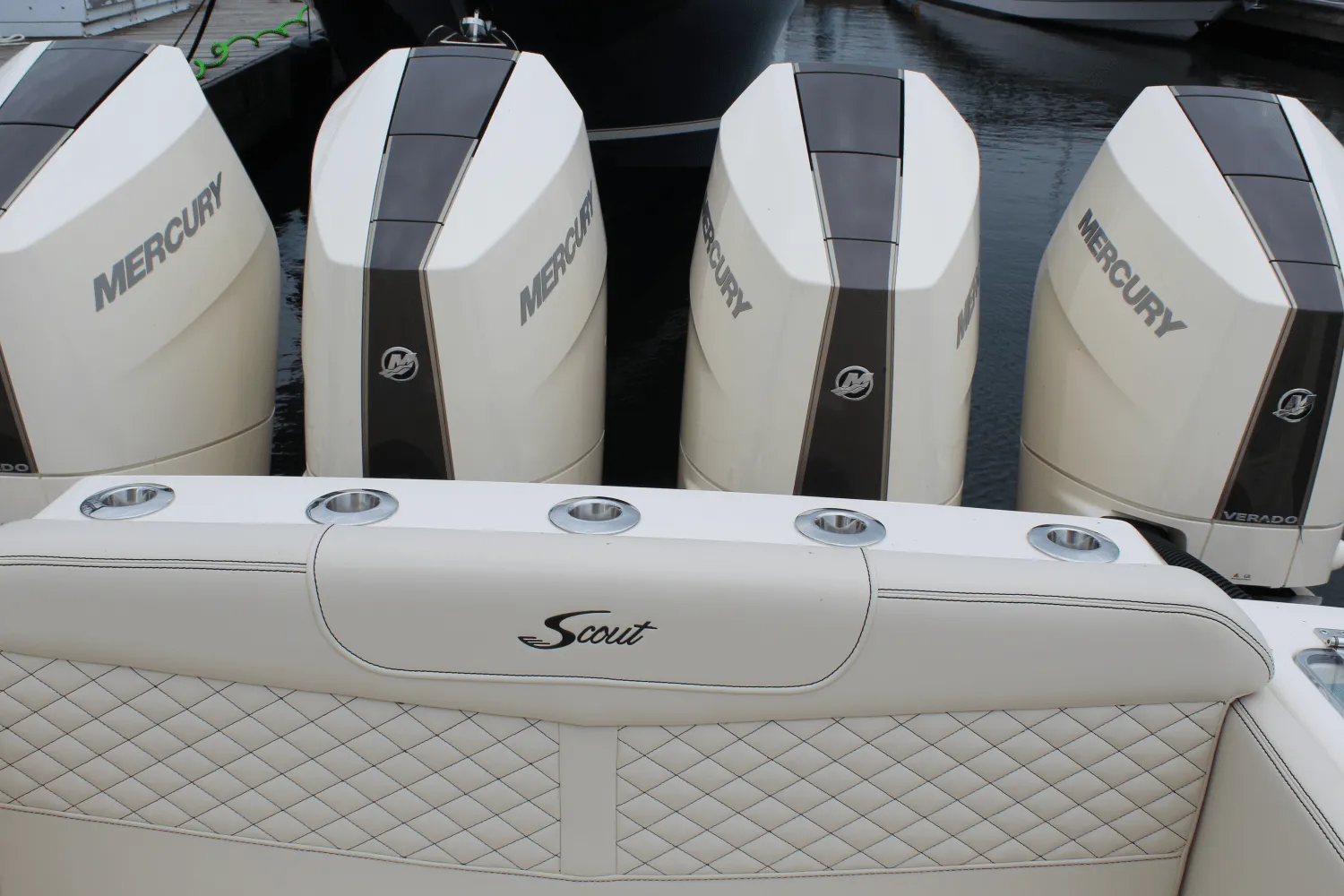 Unmatched Performance Powered by four Mercury Q-400V10Verado engines, totaling 1600 HP, the Scout 400 LXF delivers exhilarating speeds and precision maneuverability on the water, promising an unforgettable ride every time.