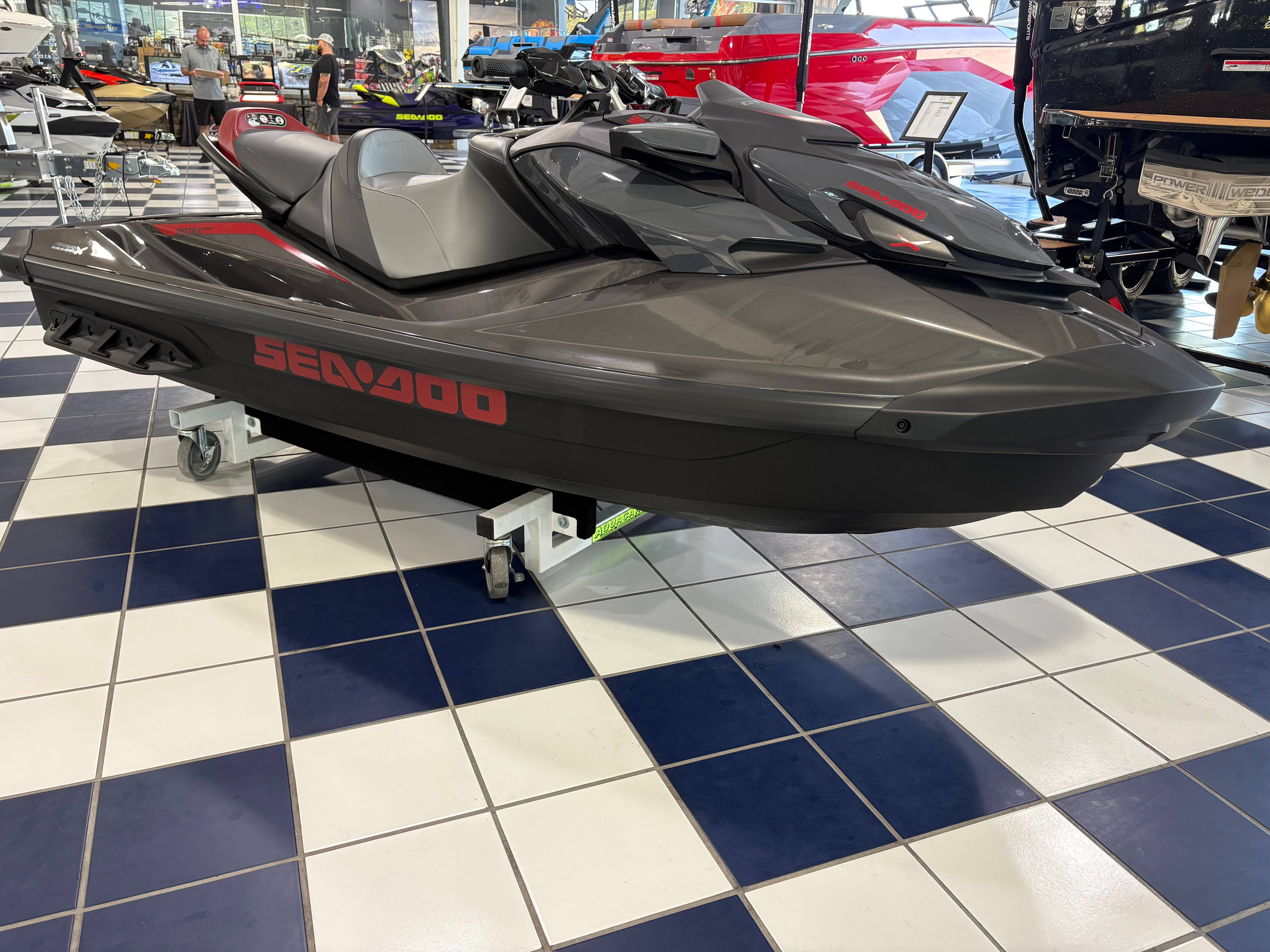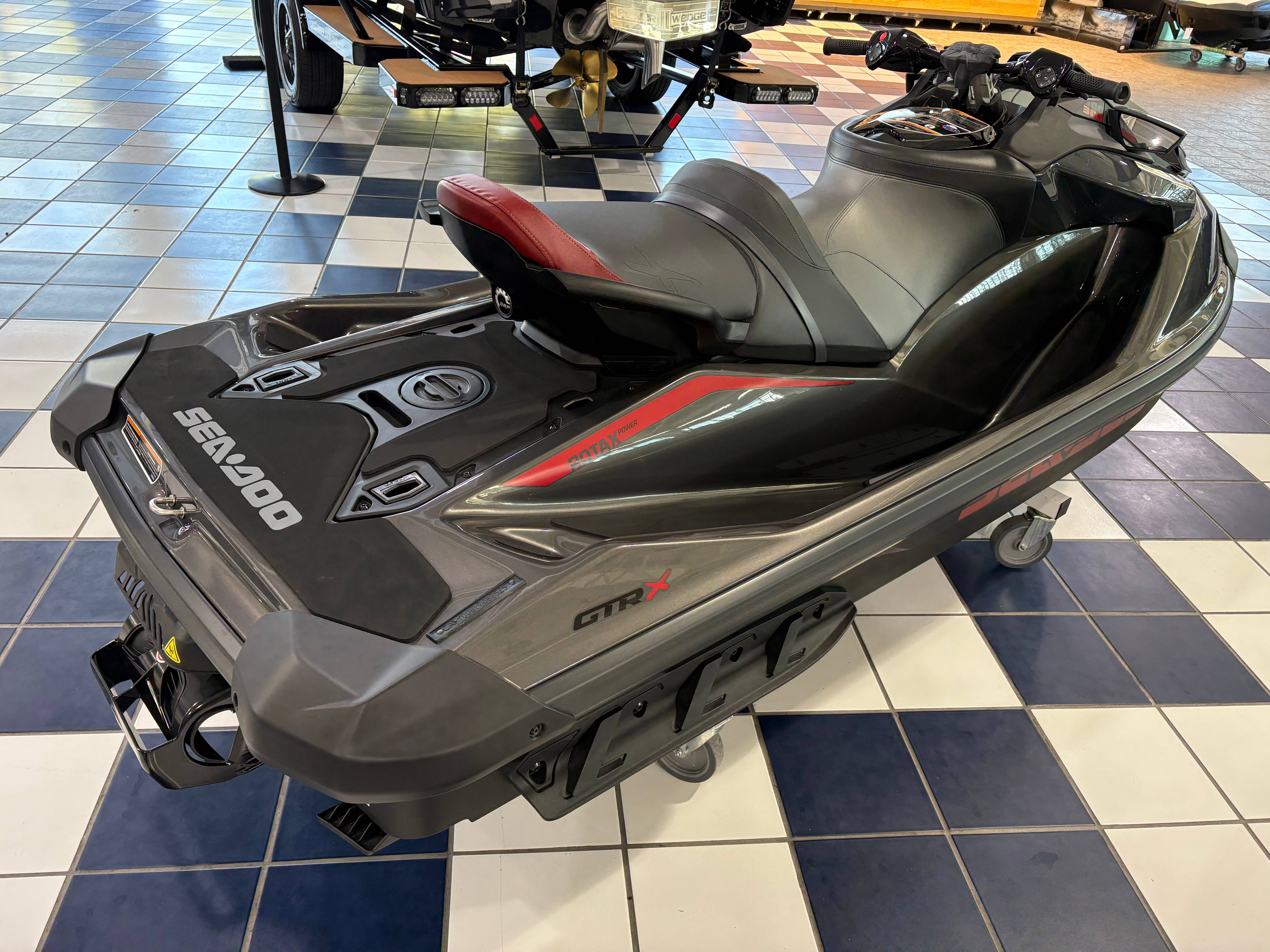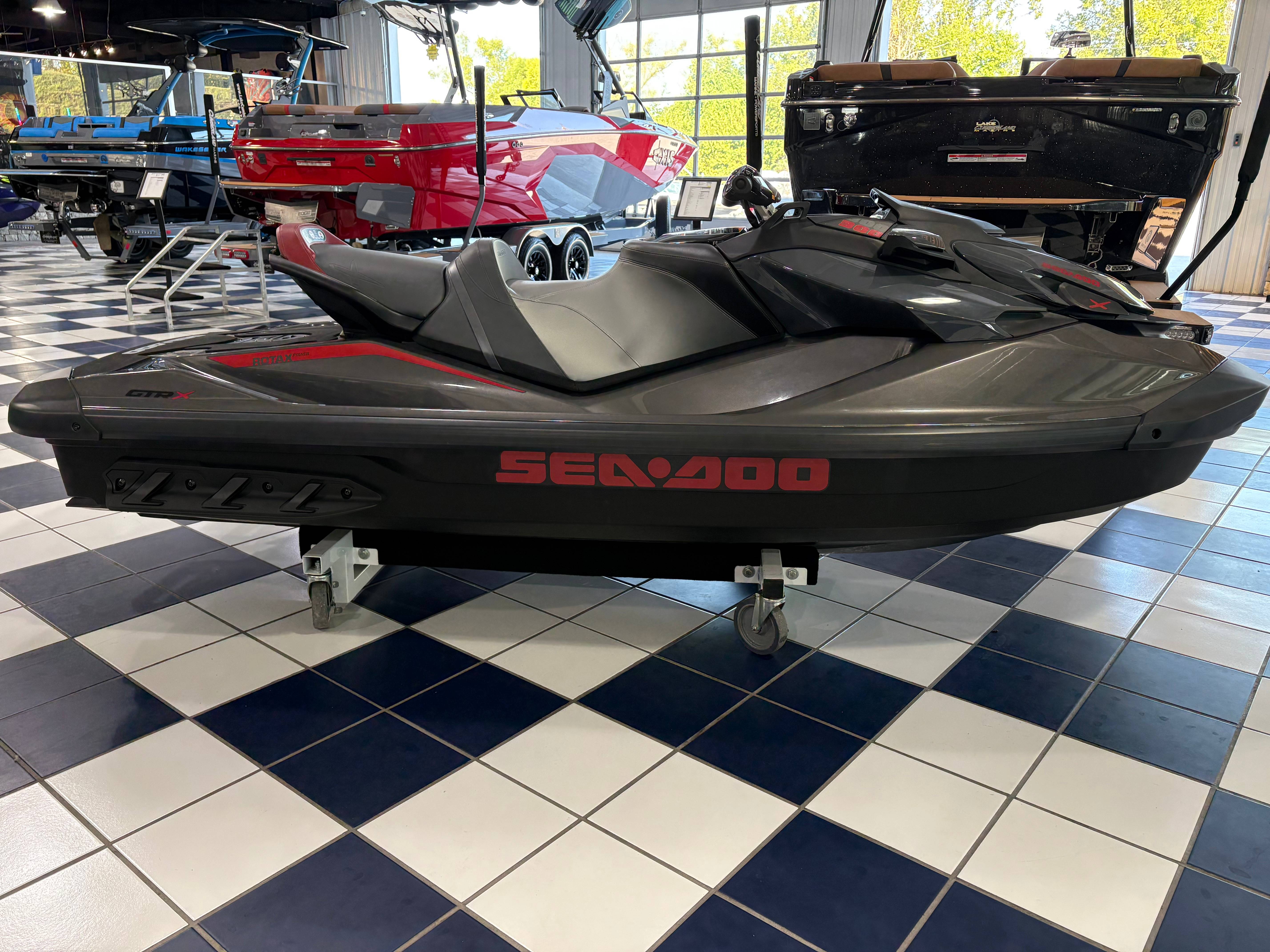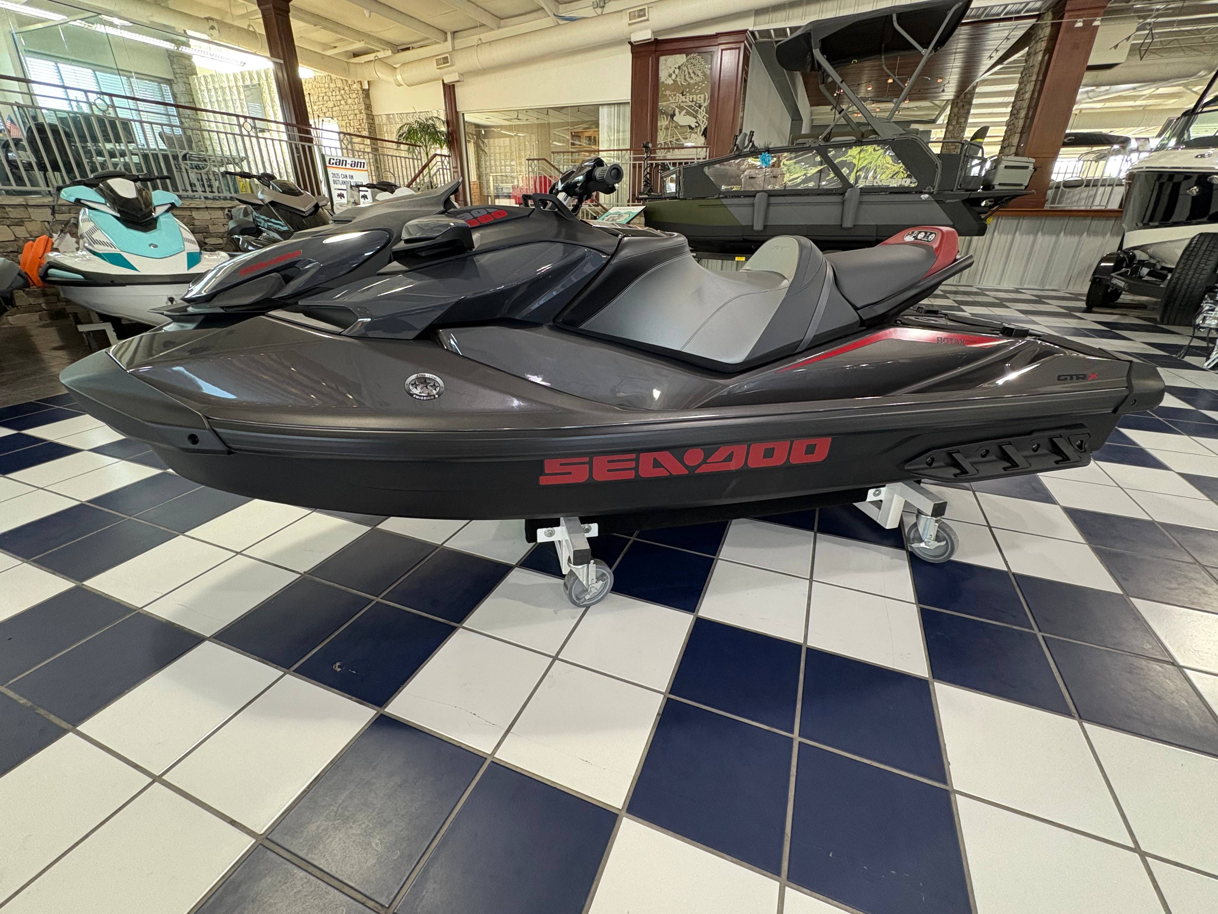 2025 Sea-Doo GTR-X 300 The reborn GTR-X 300 offers a sensational way to enter the world of adrenaline-minded personal watercraft, at an incredible value. With performance at its core, the GTR-X 300 expands adventure possibilities with exceptionally versatile design. A powerful supercharged 300hp Rotax engine paired with a nimble, predictable hull provide acceleration and handling on point for the buoy course or any offshore adventure. Experience serious performance without seriously denting the budget. More power on the water Rotax 1630 ACE - 300 hp Engine This Rotax Engine puts smile-inducing acceleration at your fingertips. The GTR-X with its 300hp power plant offers breathtaking moments. Playful yet predictable Polytec™ Material The GTI hull design delivers loads of fun and is easy to drive with a confident, predictable ride. Robust Polytec material reduces the weight of the watercraft to deliver outsized performance and efficiency. Plus, it’s more scratch-resistant than fiberglass. Comfort + Performance Spacious On-Deck Stretch out the adventure and your legs. Unique Ergolock two-piece racing seating provides plenty of performance benefits, plus the ability to carry up to 3 riders. The tacky surface and back support enhances grip during aggressive riding. Spacious rear deck allows plenty of room for LinQ cargo accessories or space to sprawl and enjoy the water. Pack More Adventure 38-Gallon Front Storage Level up every ride with more space to pack extra gear, beach toys, dry bags and more with a massive front storage compartment. Standard LinQ attachment point lets you add even more accessory cargo space or even extra fuel. Extra Space and Versatility Large Swim Platform with LinQ system Large swim platform offers enhanced stability and more comfort. It’s the perfect place to lounge or prep for watersports and makes reboarding a breeze. Included LinQ attachment points add even more versatility. Fully connected Immerse Yourself Full-color 7.8-inch display with incredible visibility and functionality. Bluetooth, USB and smartphone app integration provides music, weather, navigation and more. The 100W waterproof, fully integrated BRP Bluetooth Audio Premium system completes an exceptional onboard experience. (optional)