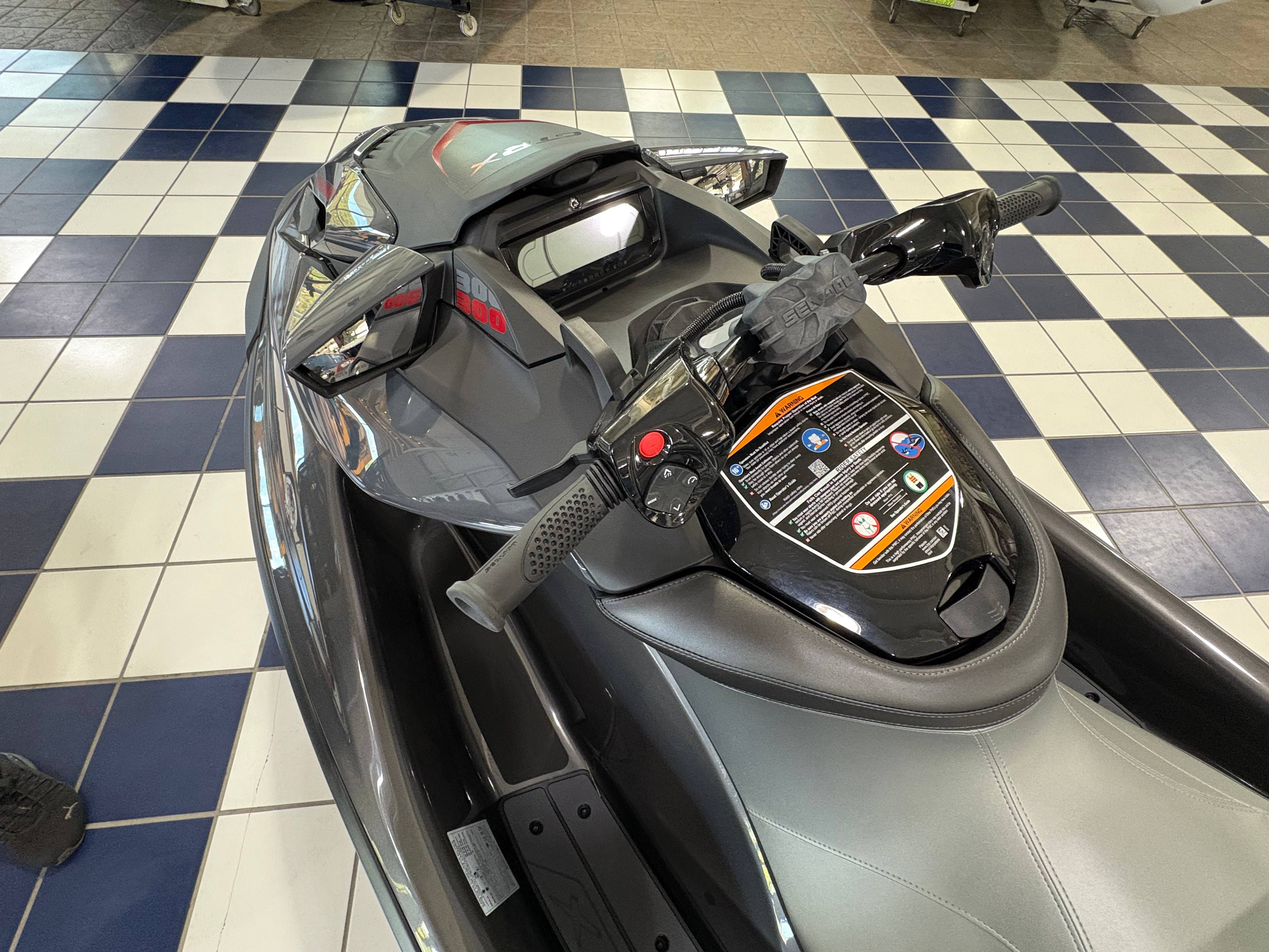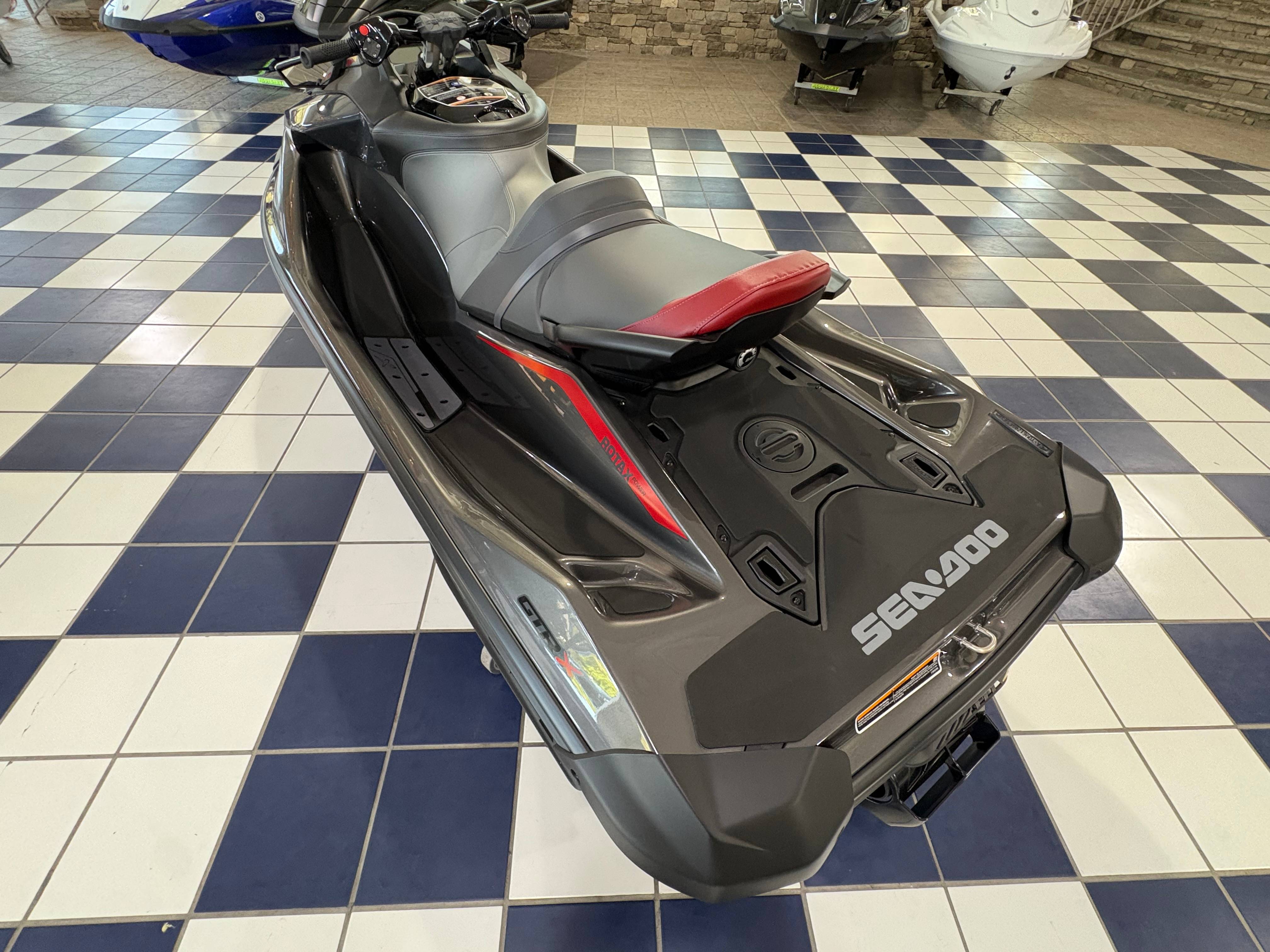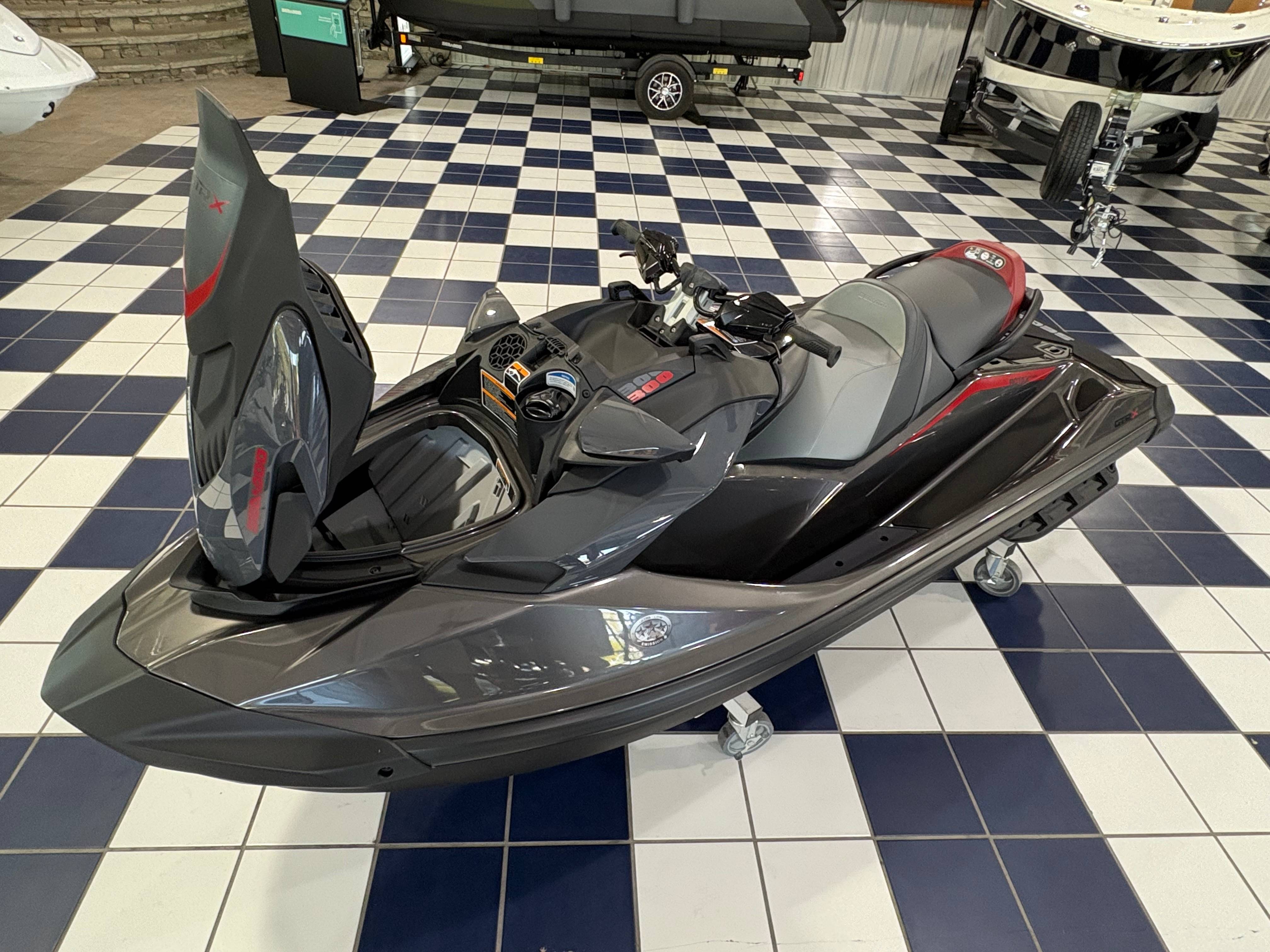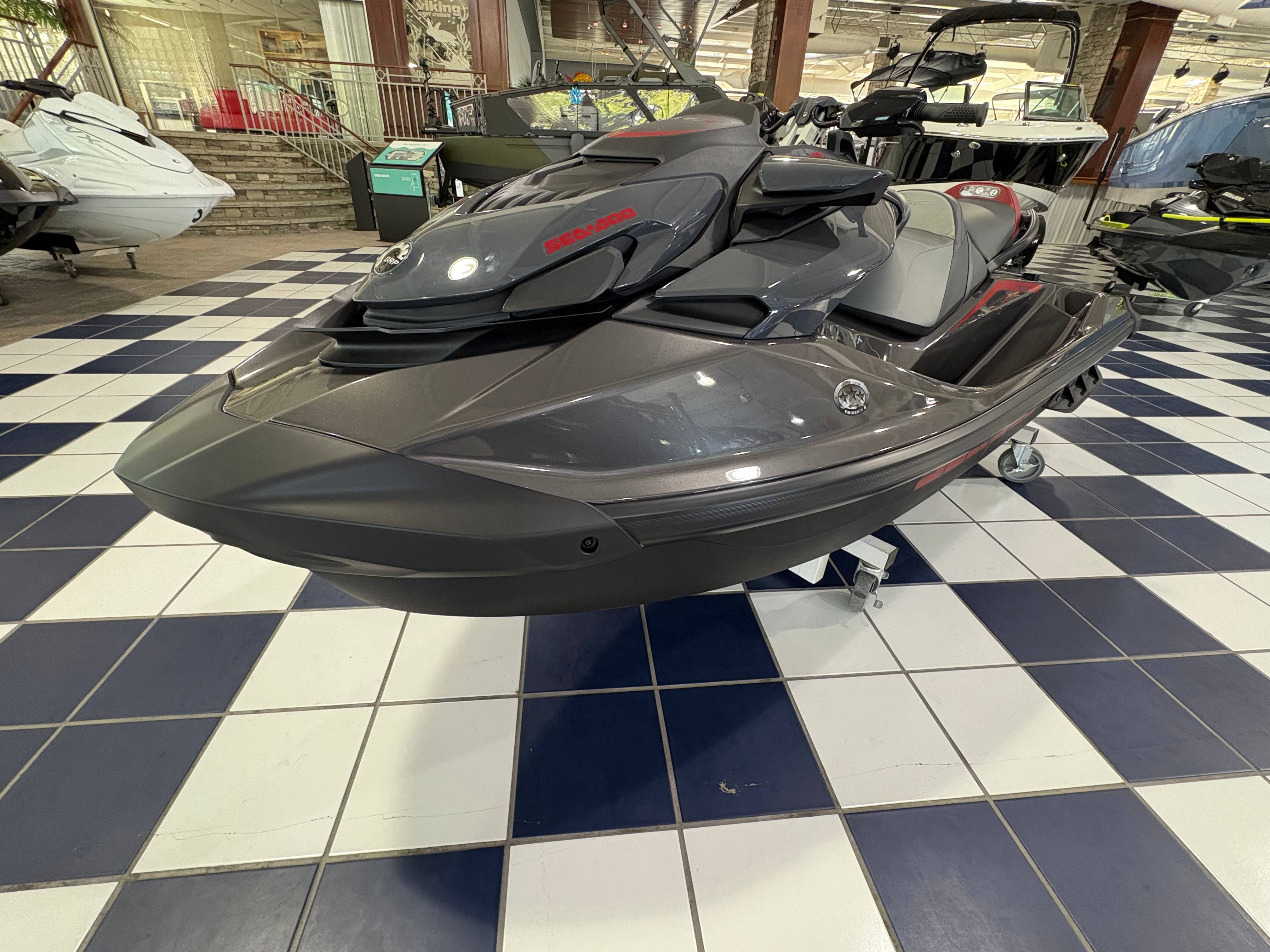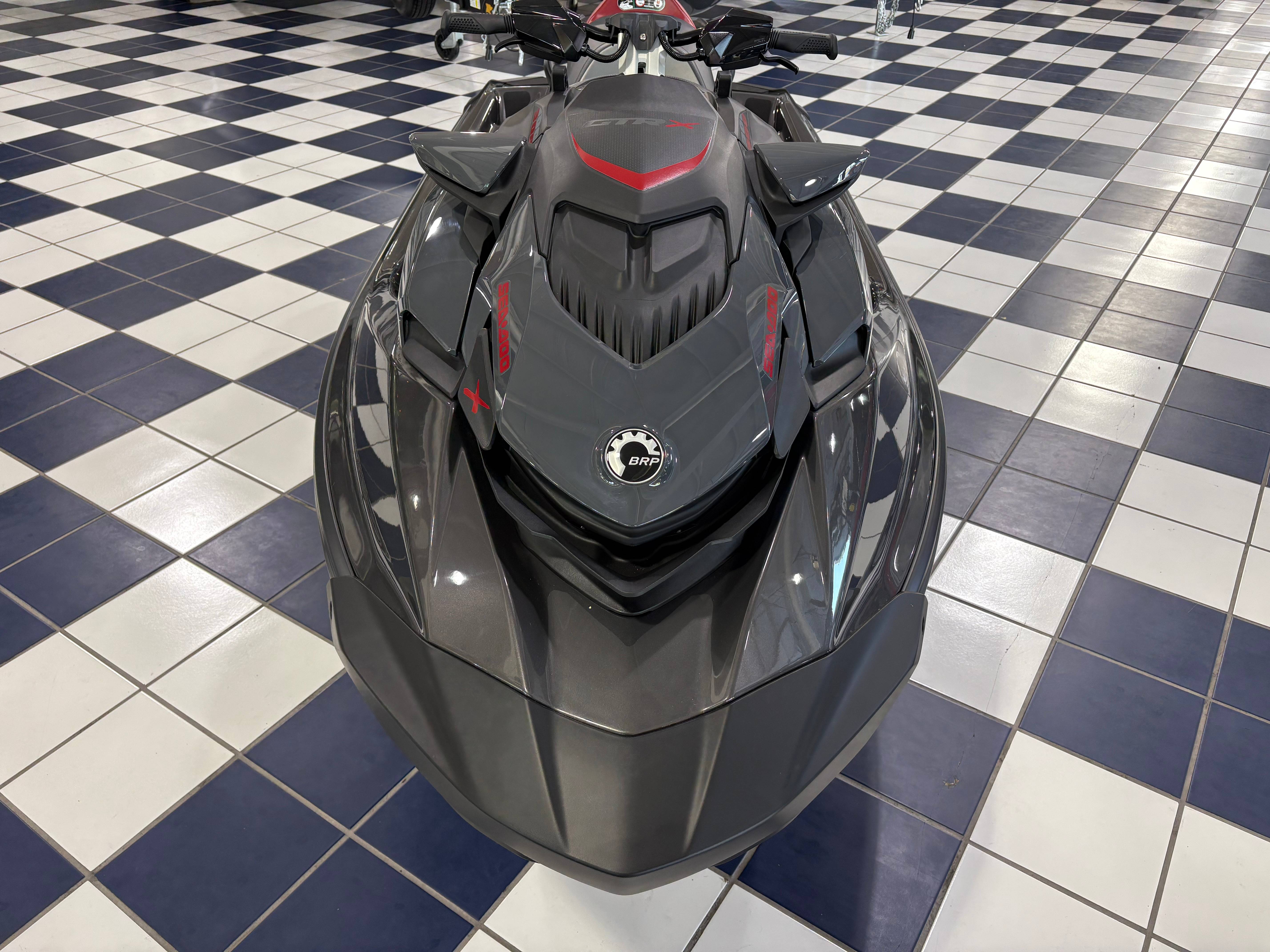 2025 Sea-Doo GTR-X 300 The reborn GTR-X 300 offers a sensational way to enter the world of adrenaline-minded personal watercraft, at an incredible value. With performance at its core, the GTR-X 300 expands adventure possibilities with exceptionally versatile design. A powerful supercharged 300hp Rotax engine paired with a nimble, predictable hull provide acceleration and handling on point for the buoy course or any offshore adventure. Experience serious performance without seriously denting the budget. More power on the water Rotax 1630 ACE - 300 hp Engine This Rotax Engine puts smile-inducing acceleration at your fingertips. The GTR-X with its 300hp power plant offers breathtaking moments. Playful yet predictable Polytec™ Material The GTI hull design delivers loads of fun and is easy to drive with a confident, predictable ride. Robust Polytec material reduces the weight of the watercraft to deliver outsized performance and efficiency. Plus, it’s more scratch-resistant than fiberglass. Comfort + Performance Spacious On-Deck Stretch out the adventure and your legs. Unique Ergolock two-piece racing seating provides plenty of performance benefits, plus the ability to carry up to 3 riders. The tacky surface and back support enhances grip during aggressive riding. Spacious rear deck allows plenty of room for LinQ cargo accessories or space to sprawl and enjoy the water. Pack More Adventure 38-Gallon Front Storage Level up every ride with more space to pack extra gear, beach toys, dry bags and more with a massive front storage compartment. Standard LinQ attachment point lets you add even more accessory cargo space or even extra fuel. Extra Space and Versatility Large Swim Platform with LinQ system Large swim platform offers enhanced stability and more comfort. It’s the perfect place to lounge or prep for watersports and makes reboarding a breeze. Included LinQ attachment points add even more versatility. Fully connected Immerse Yourself Full-color 7.8-inch display with incredible visibility and functionality. Bluetooth, USB and smartphone app integration provides music, weather, navigation and more. The 100W waterproof, fully integrated BRP Bluetooth Audio Premium system completes an exceptional onboard experience. (optional)