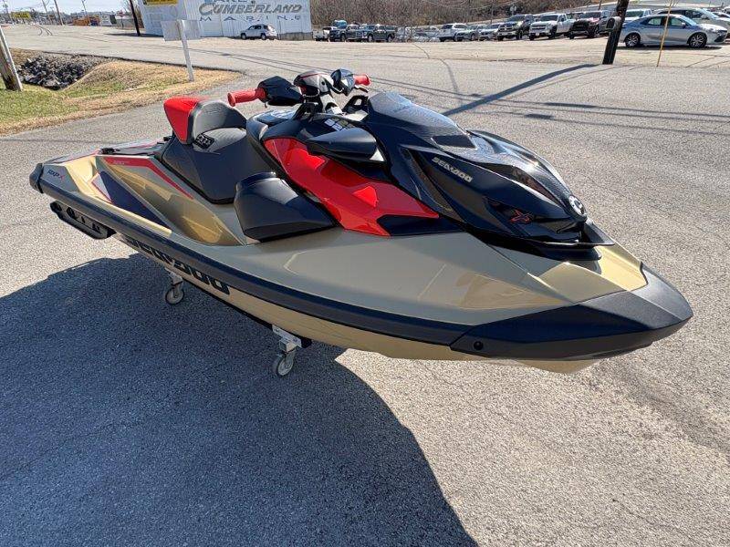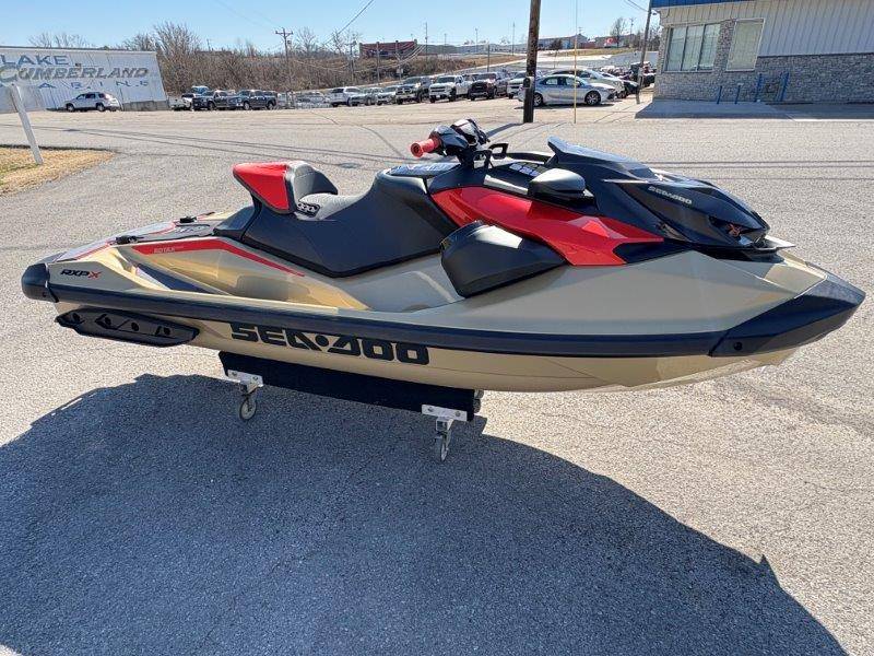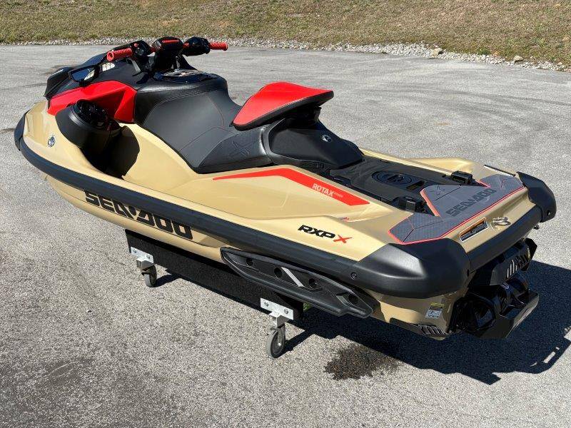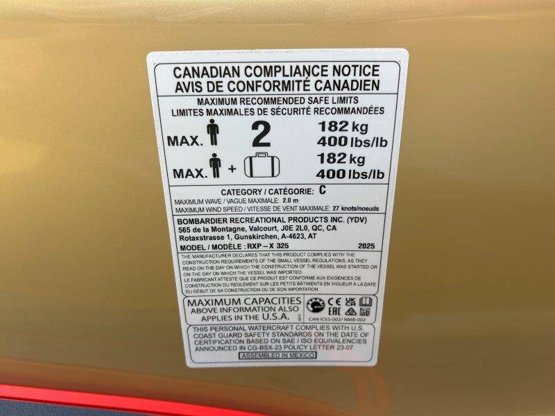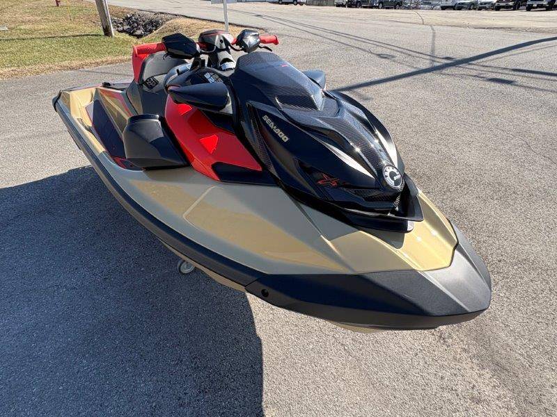 2 IN-STOCK 2025 Sea-Doo RXP-X 325 w/ Sound The pinnacle of personal watercraft racing performance for riders who want to push their own limits as hard as they push the machine's. The ultimate race-inspired watercraft combines power, handling and control like nothing else on the water. And with its revolutionary onboard experience, you're winning whether it's on the buoy course or when you decide to take it easy. Rotax® 1630 ACE™ - 325 engine Record-setting power A freshly designed Rotax 1630 supercharged engine produces a spectacular 325 HP that truly redefines the high-performance segment. At 0-60 MPH in just 3.4 seconds, the adrenaline rush hits quicker than ever. *Based on BRP internal testing performed in optimal conditions. Customized handling Dial in comfort Eliminate unwanted handlebar feedback in rough conditions thanks to the adjustable hydraulic steering damper. Choose from 3 positions to find your preferred feel and improved control. Unbeatable control A ride unlike any other Push the limits on every ride. The T3-R hull design dices through tight turns at speed, and the unique Shark Gill mid-hull feature allows for best-in-class control, even at full throttle. Race-Ready Performance Features Precision handling Exclusive X-performance features provide demanding riders with high speed control thanks to specially designed sponsons for hairpin turns, variable trim with launch control for race-winning holeshots and Ergolock-R cockpit design that puts you in the driver's seat. One look is all it takes Race-Ready Synergy Expertly crafted and sculpted with unique materials for an exquisite finish. All it takes is one glance and everyone will know who's king of the buoy course. Fully connected Immerse Yourself Full-color 7.8-inch display with incredible visibility and functionality. Bluetooth, USB and smartphone app integration provides music, weather, navigation and more. The 100W waterproof, fully integrated BRP Bluetooth Audio Premium system completes an exceptional onboard experience. * Optional on RXP-X 325.