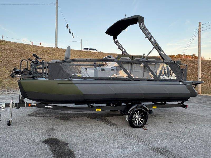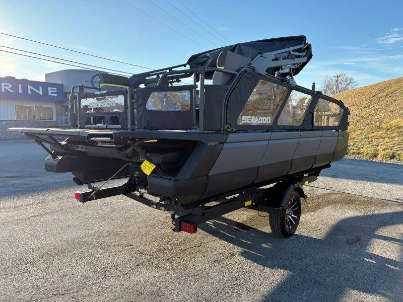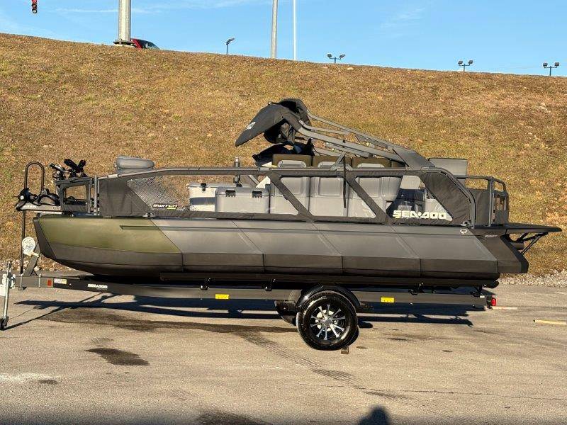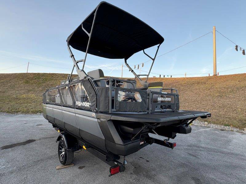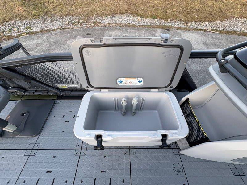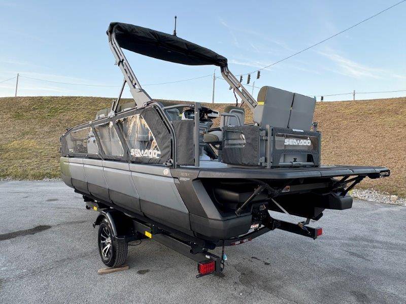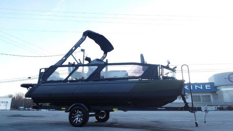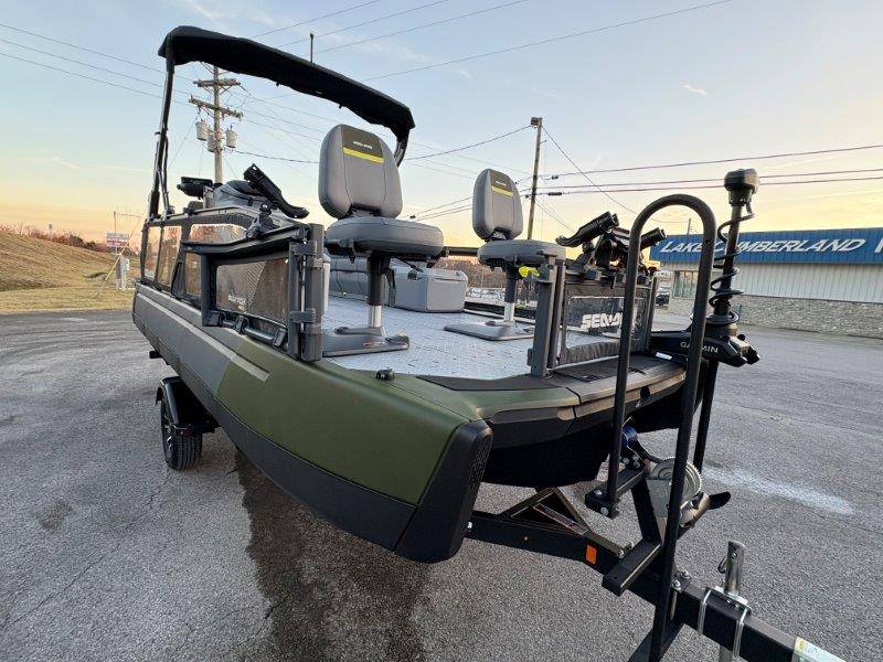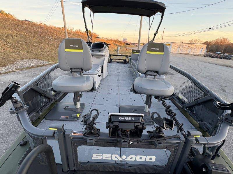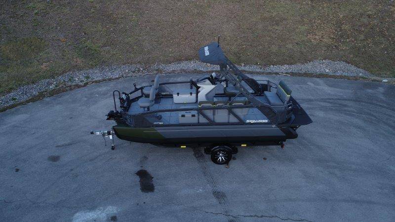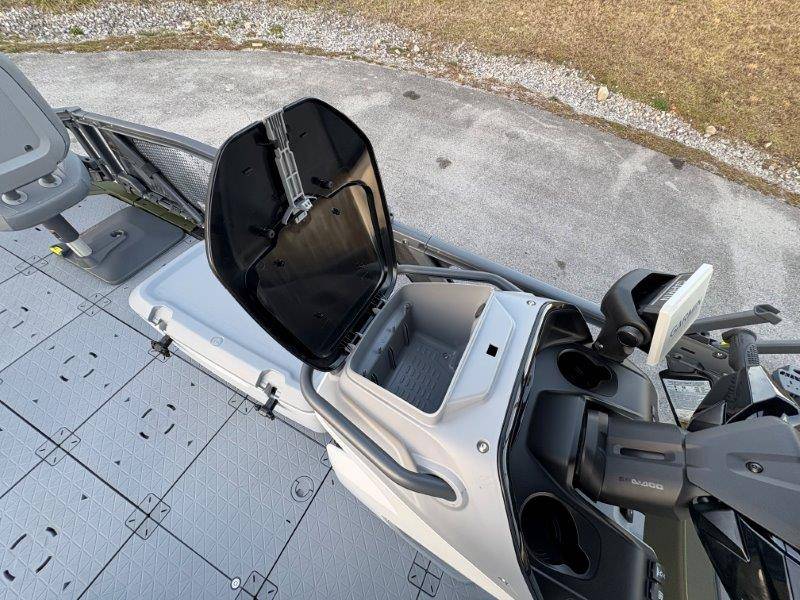 ETA MAY/JUN 2025 Sea-Doo Switch Fish 18' 230HP (Painted Trailer) Sneaky strength Power for the long haul A powerful Garmin Force Kraken trolling motor, yet it’s quiet as a mouse while you're fishing. Its robust battery system doesn’t just provide power, it provides long-lasting power (no need to remove the batteries for charging!). Autopilot features and brilliant UHD sonar makes steering your pontoon and finding the best fishing spots a breeze. Plus, it's suitable for both salt and fresh water. Your fishing throne Best seat in the house Adjust, rotate, attach. The fishing pedestal seats spins 360 degrees, adjusts up and down and moves easily around the boat, quickly attaching and detaching of the quick-attach tiles and pairing up with your LinQ Lite accessories for a top-notch fishing experience. Stayin’ alive Live well, fish better A cooler that doubles as a livewell using an integrated pump to constantly feed water into the reservoir to keep your catch and bait alive. It’s easily and securely installed onto the pontoon using quick-attach tiles. Pro tip: Use the top of the lid to measure your catch! Open New Doors Easy onboarding experience within the rear and bow corner doors With two corner doors at the back of the pontoon, hopping on and off for a swim is effortless. For fishing, use the bow corner doors for easy catch-and-release or to quickly rinse your hands. That makes four corner doors! Tools of the trade Your rod at a moment's notice Store up to four fishing rods safely and easily on board the pontoon with quick-access rod storage. Lock them up when you leave the boat so when it’s time to cast a line, you’ll find them exactly where you left them. Rearrange the ride Power that’s ready when you are Fishing to family and back in the snap of a finger. Deploy the trolling motor at a moment’s notice, then securely store it along with the remote, control pedal and more fishing gear. The top of the storage box doubles as a side table. Reliable Rotax Big boat, outsized fun Every Switch Fish comes with proven, reliable power thanks to a Rotax 1630 ACE engine. The jet propulsion system offers an outsized fun factor with an unprecedented level of maneuverability for a pontoon boat. Fish from anywhere Multiple screens, plenty of fish Fish at the front or fish at the back. With two Garmin fish finders on board — one at the console, one at the bow — you can see what you want wherever you are. The screens wirelessly connect to one another allowing both screens to read both in-hull and trolling motor transducers signals. Captain Comfortably Pick your perfect position A tilting handlebar allows each captain to find their favorite riding posture and adjust on the fly, making an already agile pontoon even more comfortable for drivers while maneuvering tight spaces and docking. Softer Landing Comfort in, comfort out More comfort, everywhere. The new Swim Platform Carpet provides a cushier landing for climbing back in and a softer seat for lounging with your feet in the water.