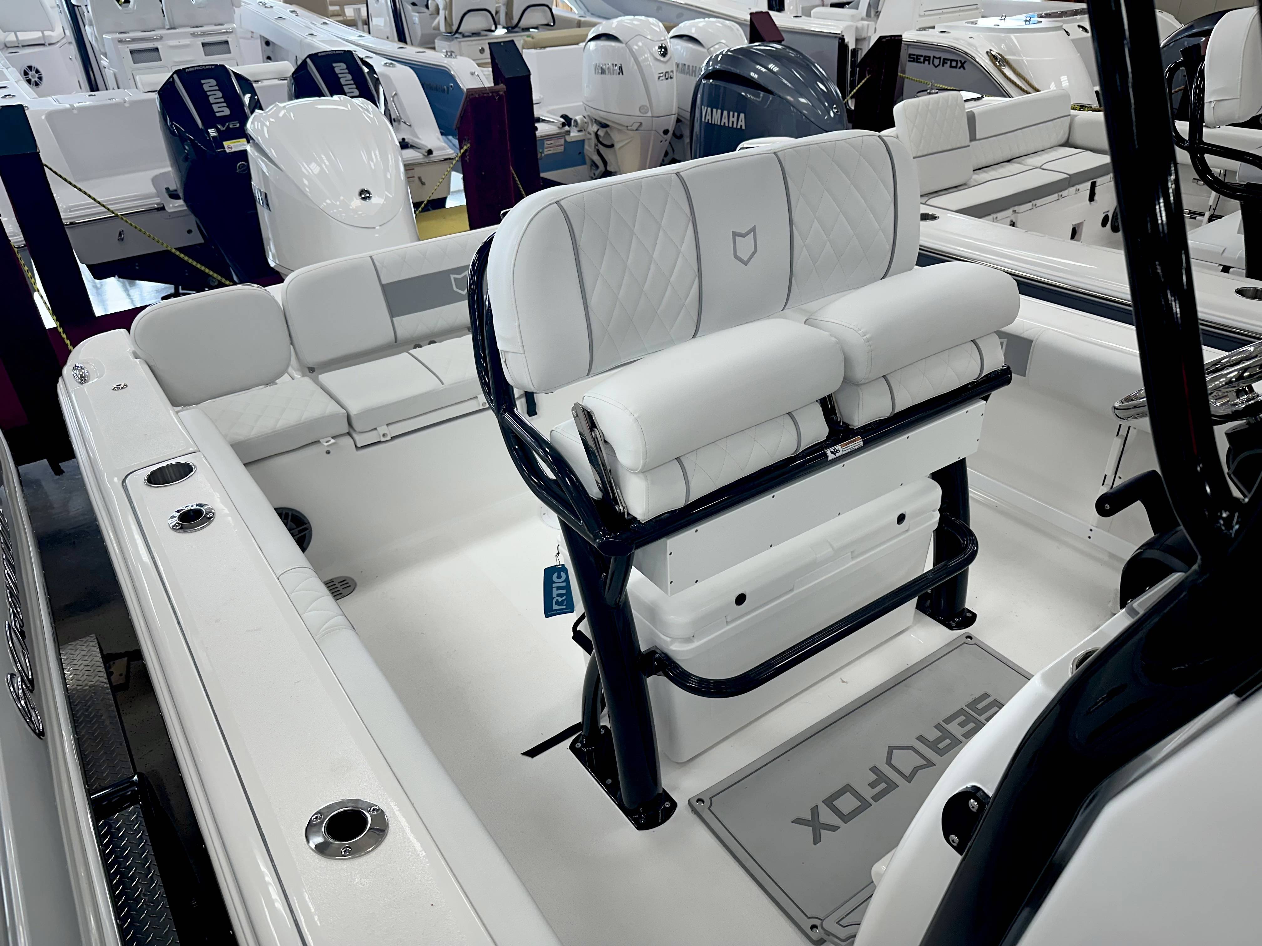 2025 Sea Fox 248 Commander powered by a Yamaha F300XSB2 and includes trailer!Factory Installed Options:Exterior- white pearl full hullInterior- light grayUltrima hard top D-tubing & full enclosureBlack powder coatingPro packageLED/tech packageGarmin 1243XSV touchscreen with thru hull transducerLenco switch for trim tabs with LED indicators2 bank battery chargerElectric porcelain toiletLeaning post frameBow shade with carbon poles65Q premium cooler with stainless steel tie down kitBow table with angled leg & side wall mountLeaning post table centerWindlass system with anchor roller