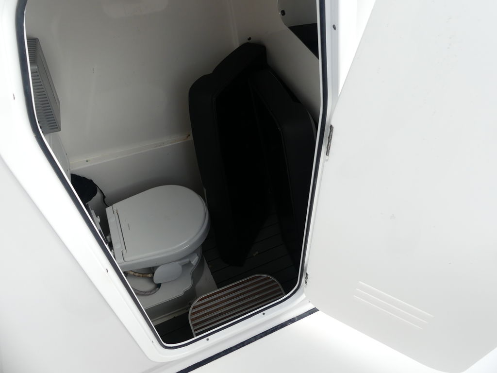 But the 292 Offshore DLX isn’t just a fishing machine—it’s also a premium platform for cruising and entertaining. Plush bow seating with removable cushions and tables transforms the forward area into a relaxing lounge for friends and family. The twin captain’s chairs are ergonomically designed for long days on the water, while a folding transom bench offers additional seating that stows neatly away when you need a bigger fishing cockpit. A well-appointed head compartment and fresh-water shower elevate comfort for day trips along the Florida coastline.