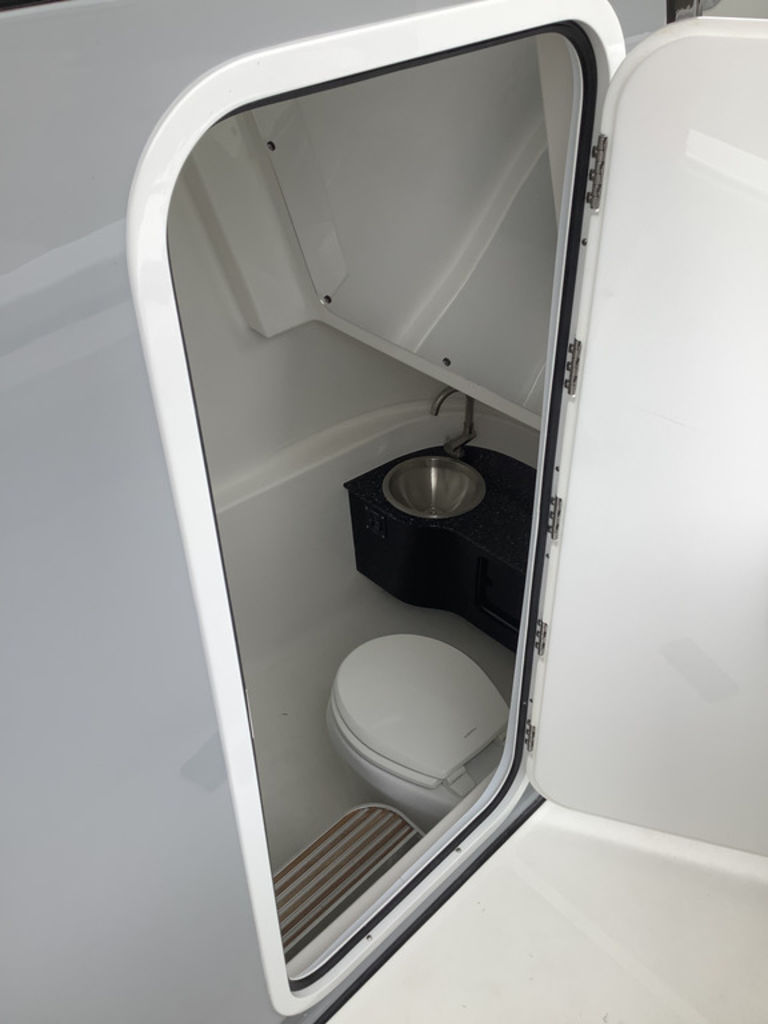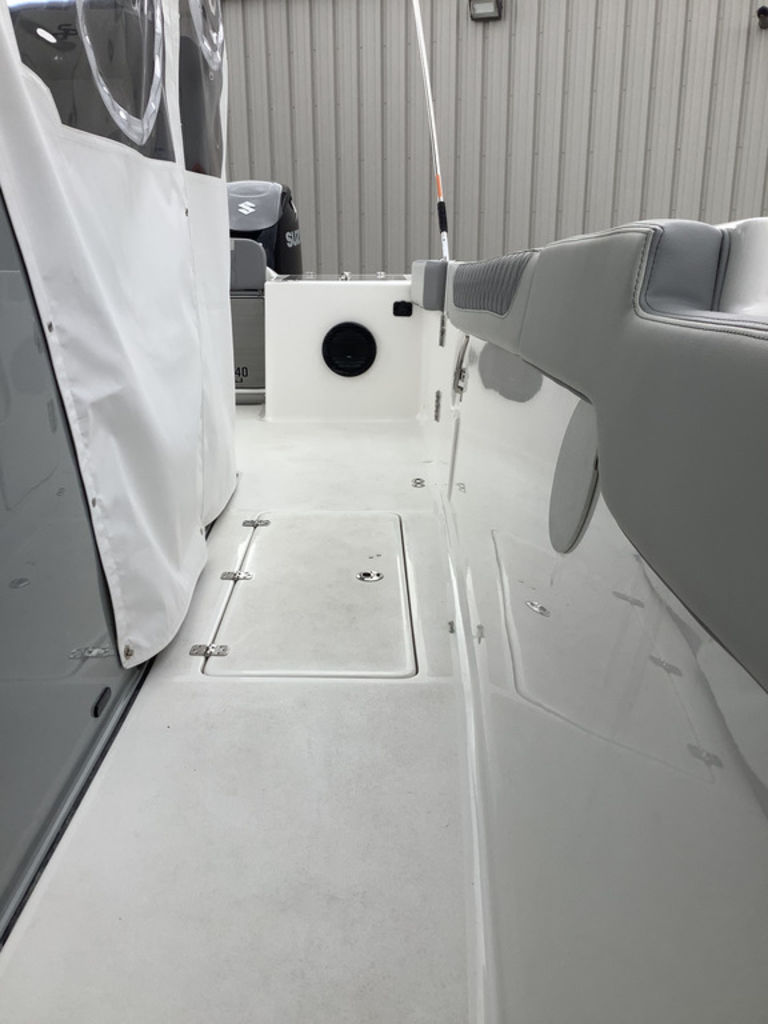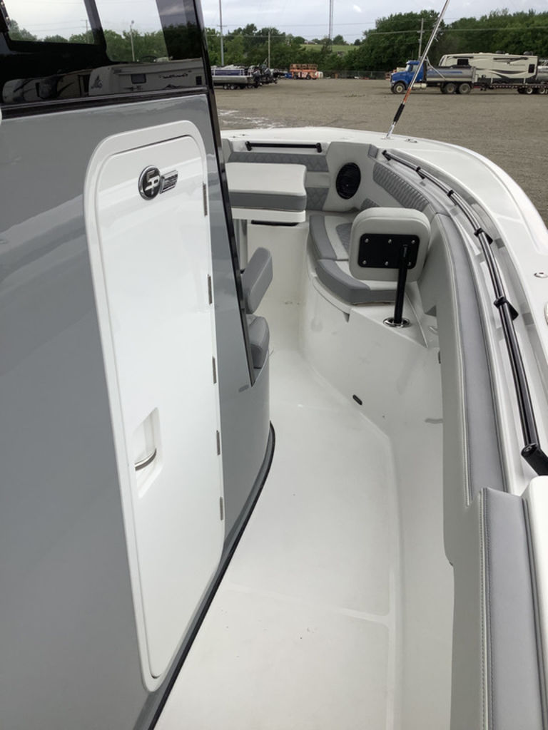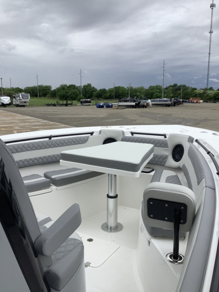 With its bold white and black color package, enclosed helm design, and wide, spacious layout, the 322 CC DLX offers the perfect balance between hardcore fishing performance and luxury cruising comfort. Sea Pro’s deep-V hull design provides a smooth, stable ride while offering plenty of deck space for anglers and family alike.
