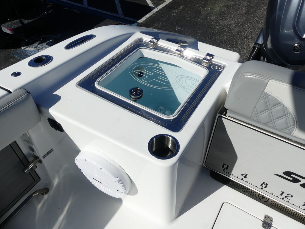 Twin pressurized 30-gallon live wells keep bait lively in the Florida heat, while massive insulated macerated fish boxes provide space for your biggest offshore catches—snapper, grouper, wahoo, tuna, even a tournament-sized mahi. The cockpit layout is built for efficiency, allowing anglers to move easily while battling big fish or deploying complex trolling spreads. With Florida’s year-round fishing season, the 322 Offshore DLX is purpose-built to maximize every trip offshore.