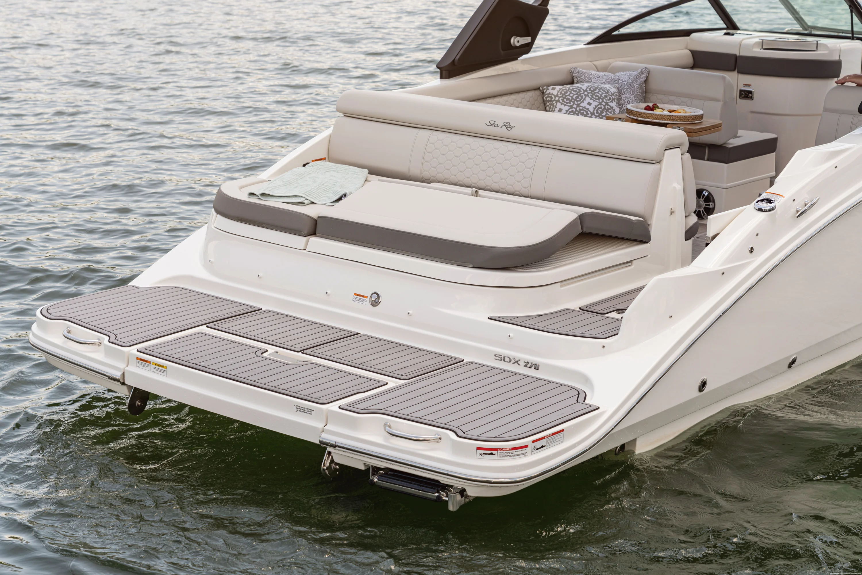 Contact us to find out ALL available savings! The SDX 270 delivers on maximum capability to make a full day on the water easy to enjoy. With plenty of seating, storage space and propulsion to enjoy a variety of activities, this sterndrive model is ideal for the family boater who values style as well as performance.Delivering ultimate performance, the SDX 270 is powered by a standard 300hp Mercury® MerCruiser® 6.2L engine with a Bravo Three® drive, SmartCraft technology and DTS controls.Move seamlessly between the deck and the water with transom-mounted, concealable ladder and optional submersible swim step for swimming and water sports off the back of the boat.The SDX 270 reflects a modern, sporty appearance with its sleek, curved windshield and showcases Sea Ray's design DNA in the distinctively sculpted hull.