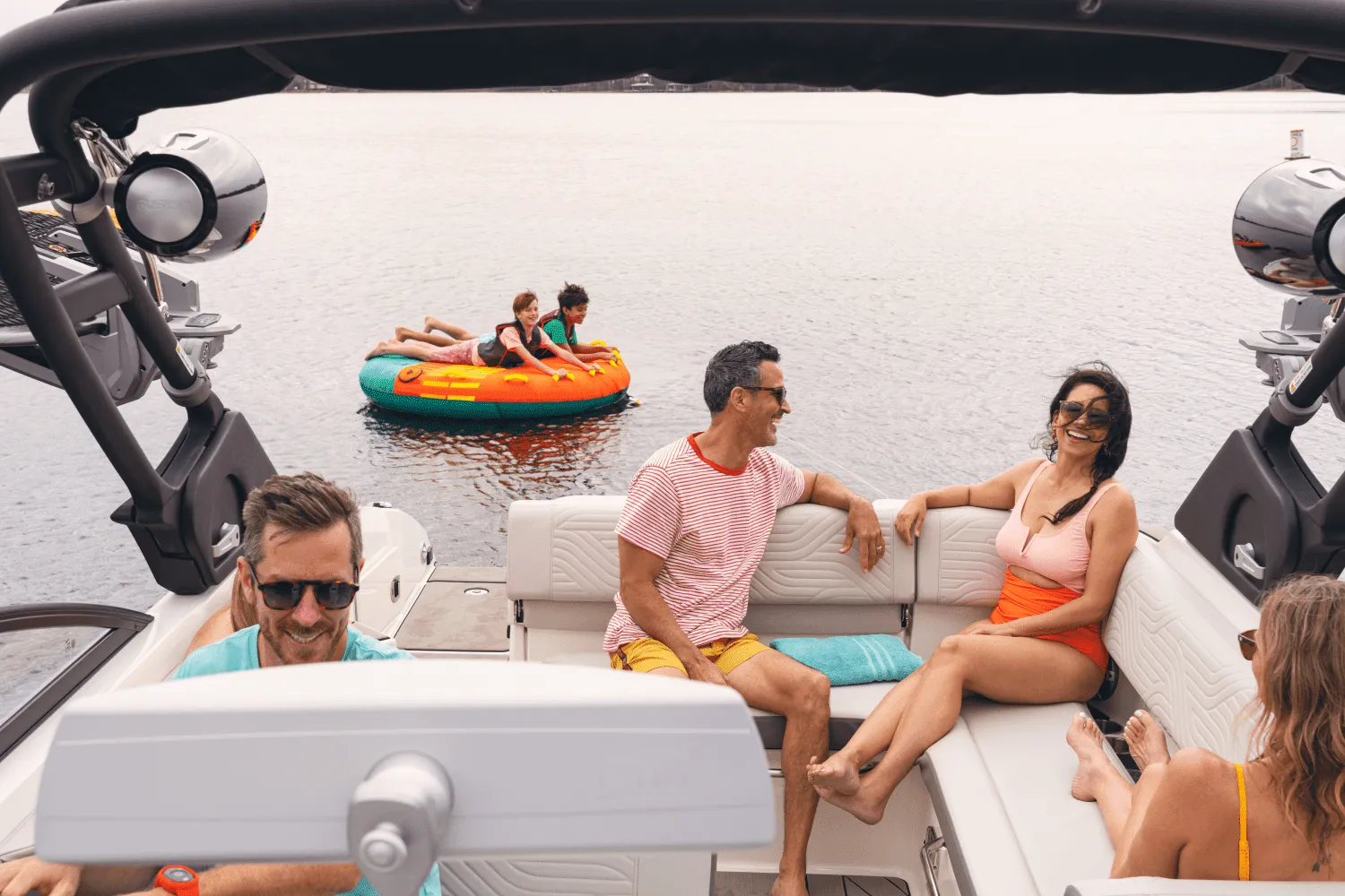With a spacious layout accommodating up to 14 passengers, this boat guarantees that everyone can join in on the excitement. Whether you're relaxing on the luxurious upholstery, enjoying the panoramic views through the windshield, or basking in the sun on the bow lounge, the SDX 270 Surf offers comfort and style.