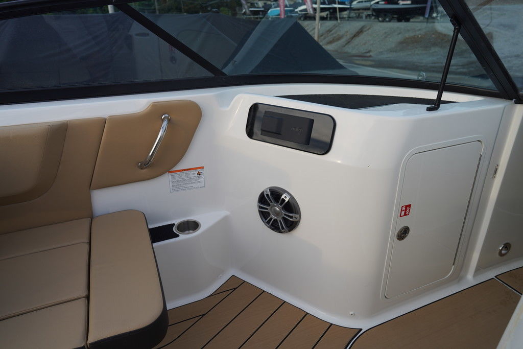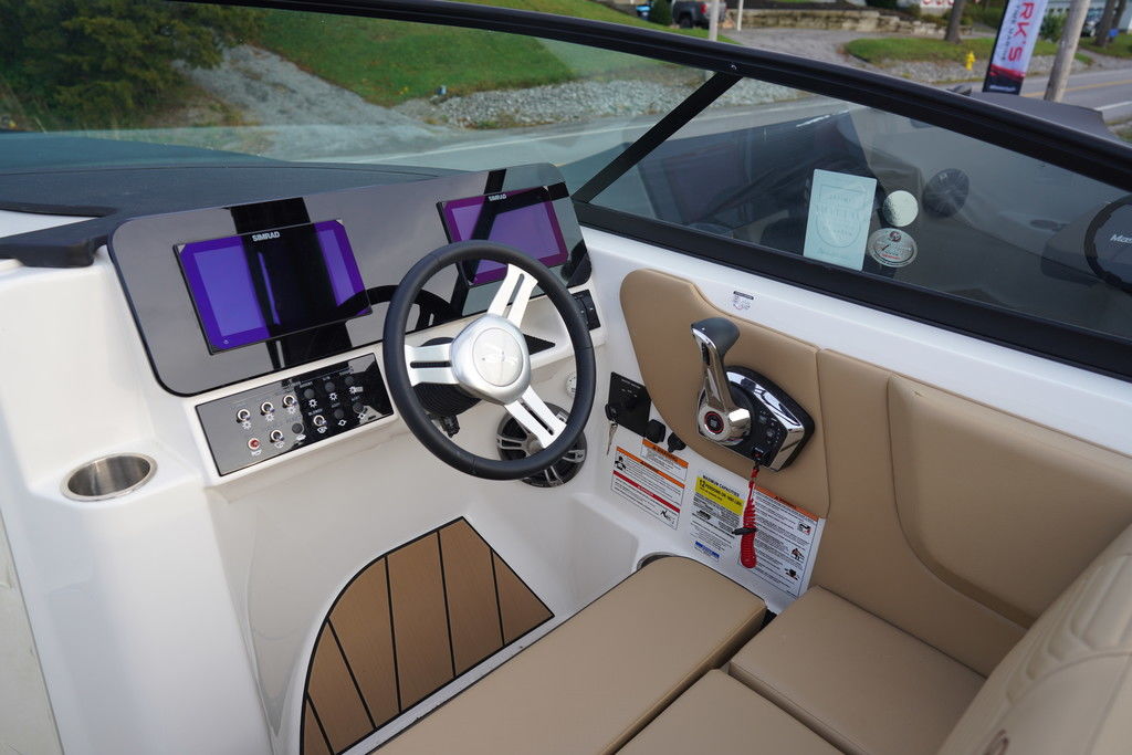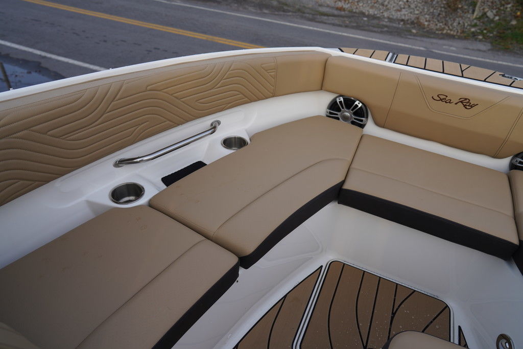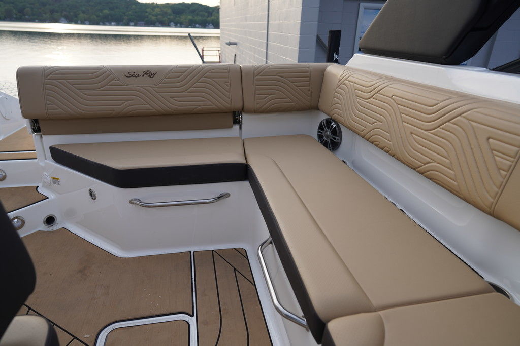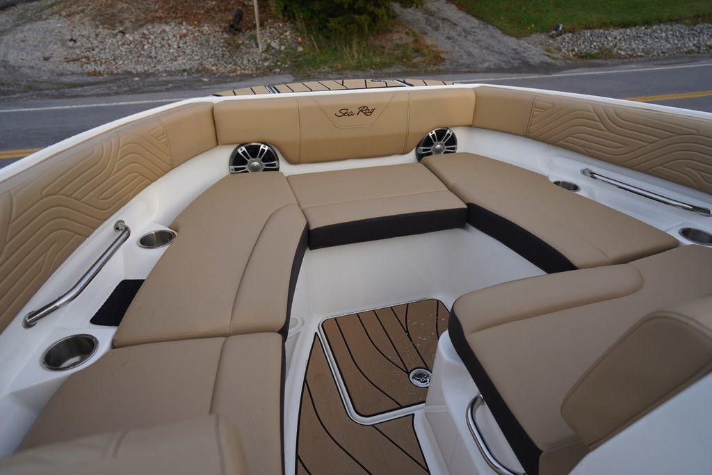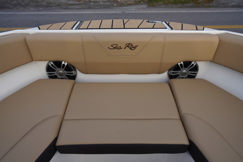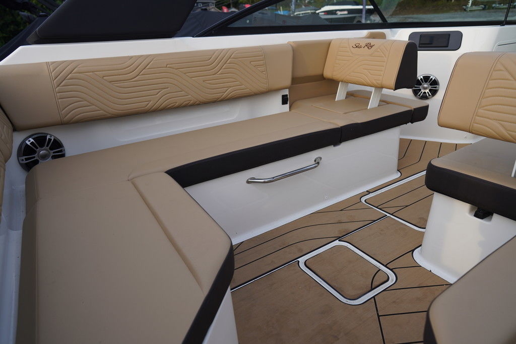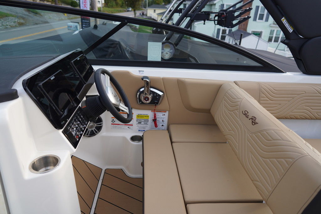 Sea Ray's intuitive NextWave™ surf system, seamlessly integrating ride-ready features with next-gen Sea Ray design, is powered by a standard 300hp MerCruiser® 6.2L engine with a forward-facing Bravo Four S® drive and contra-rotating props. SmartCraft Technology and DTS for enhanced maneuverability make this model ideal for family-friendly water sports while offering improved control when docking or traveling at low speeds.