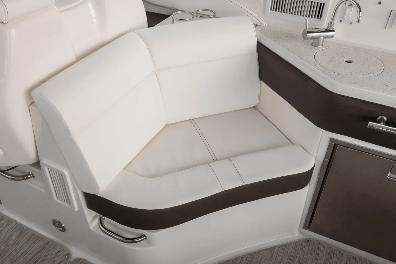 Step into the opulent cabin and immerse yourself in luxury that reflects Sea Ray's commitment to elegance and quality. The spacious interior features sumptuous upholstery, refined finishes, and cutting-edge amenities, creating a welcoming space for relaxation and entertainment.