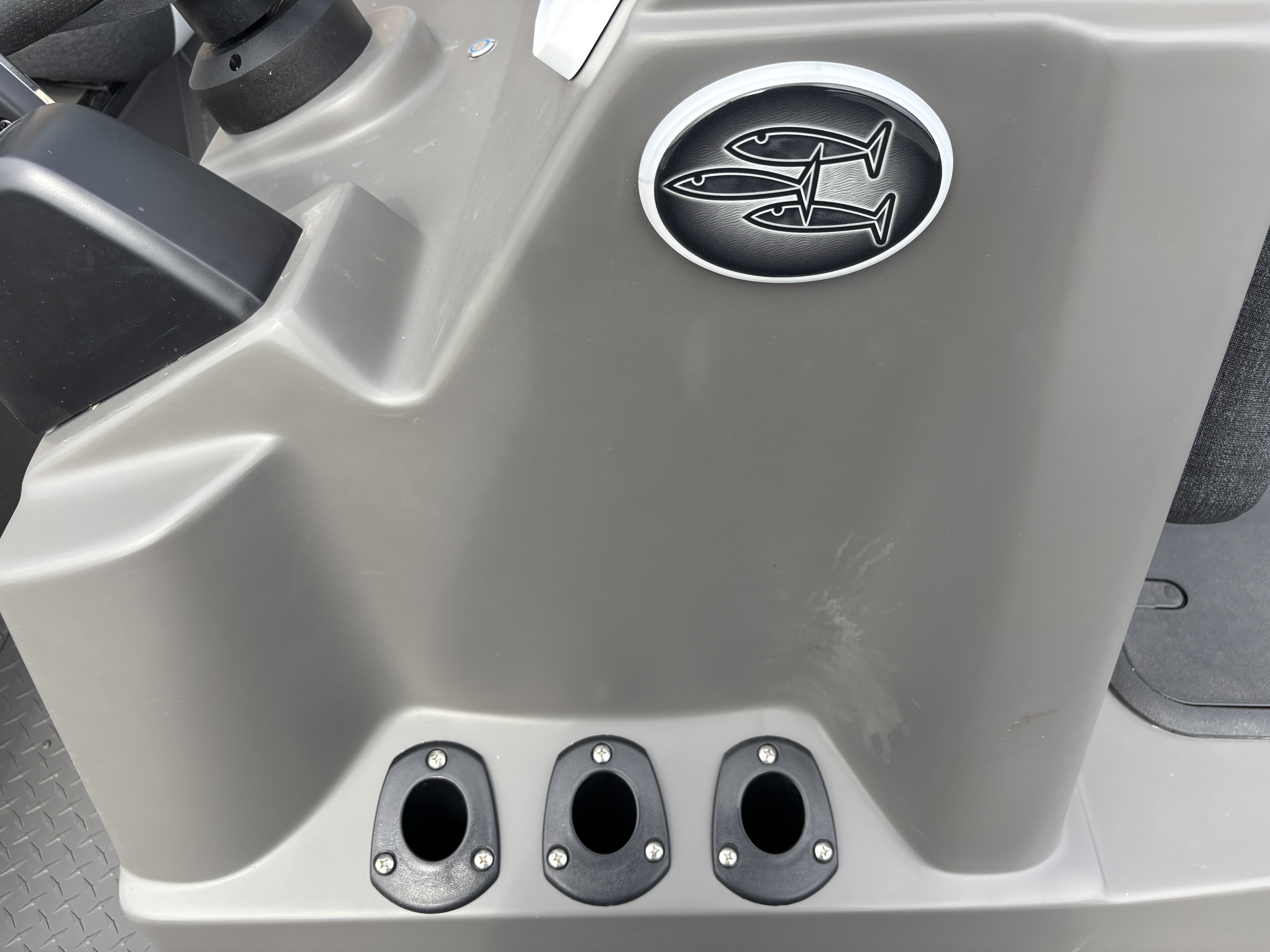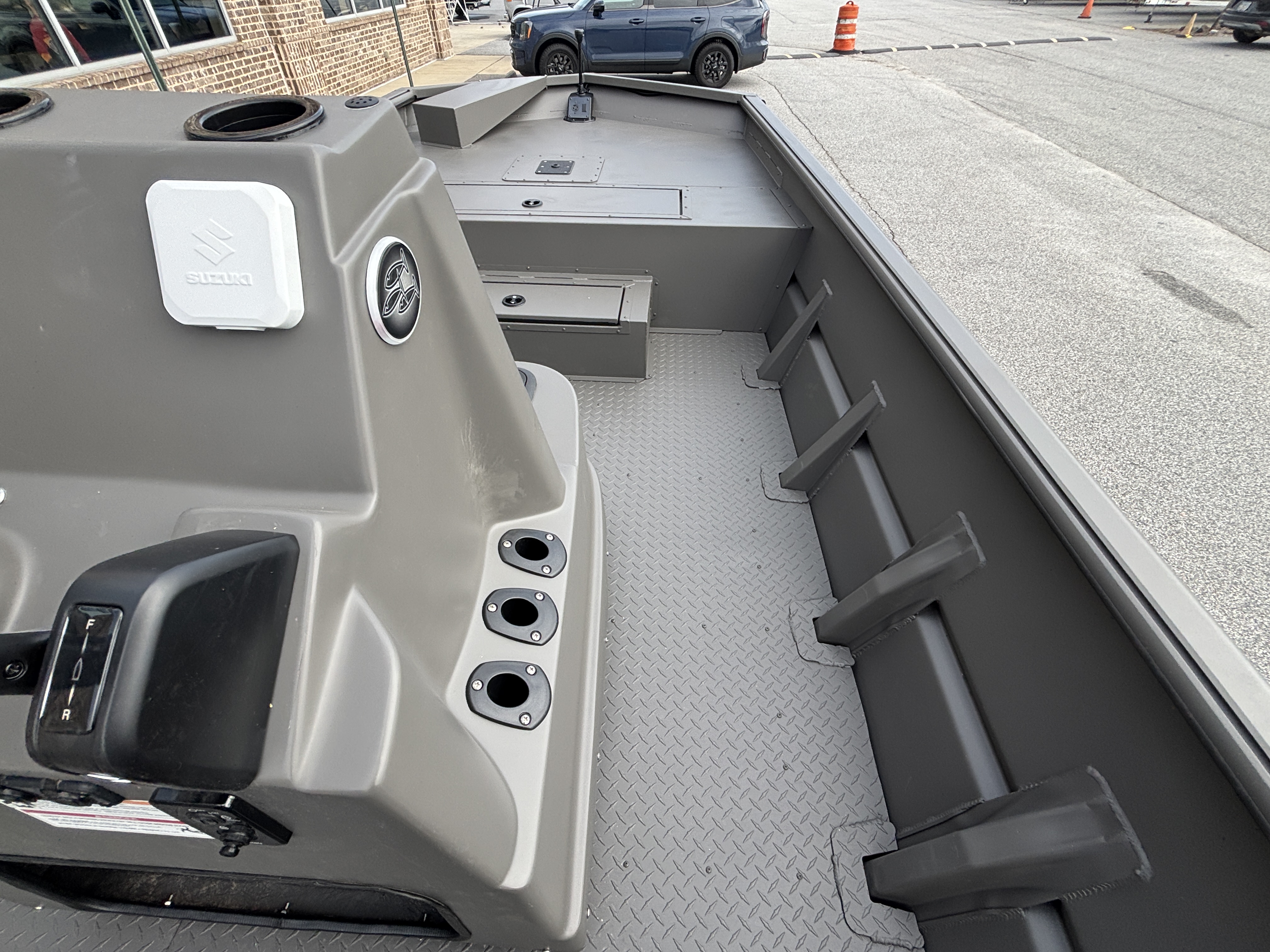 ~Fiberglass Center Console with live well, box, plumbing and steering