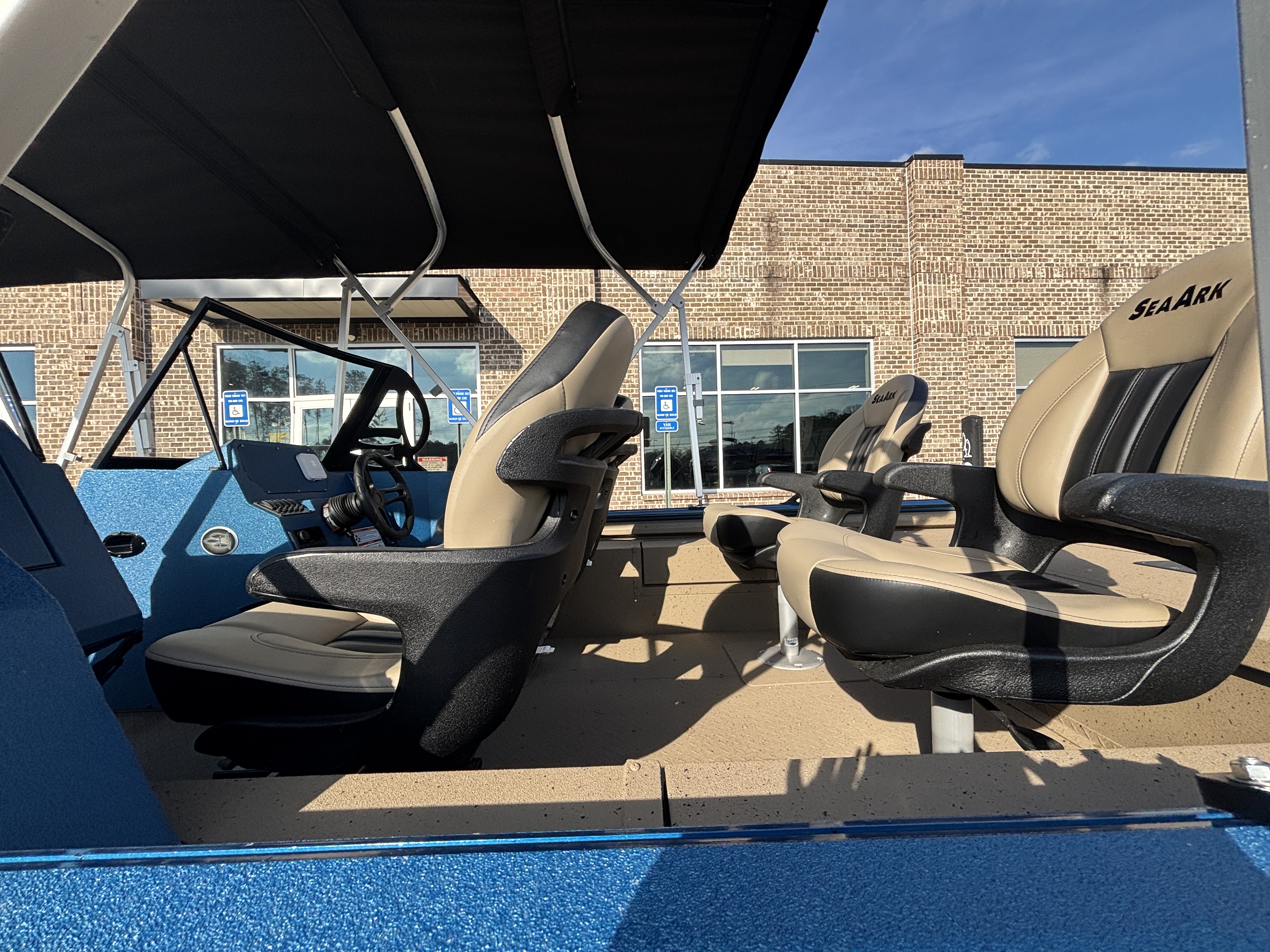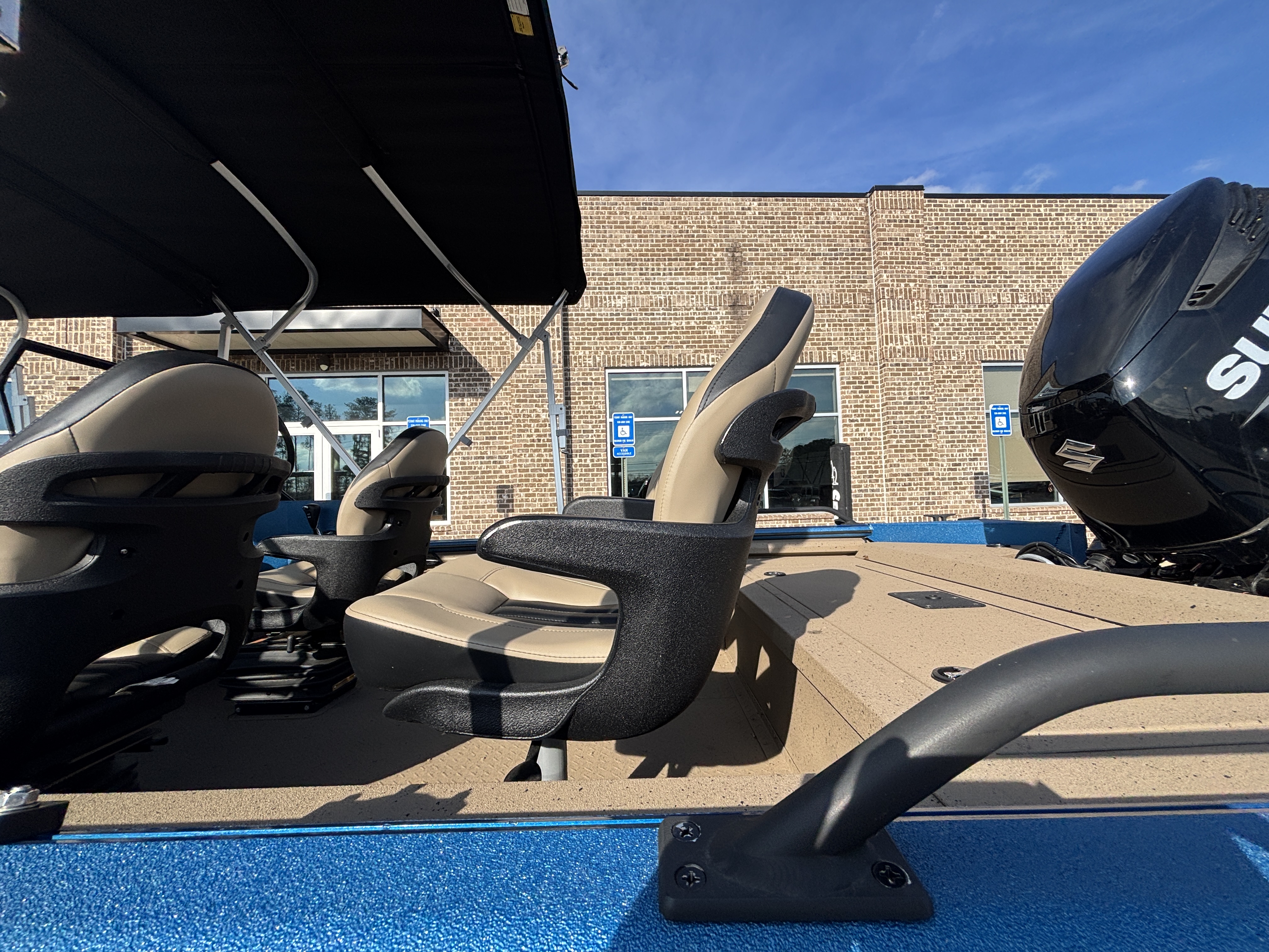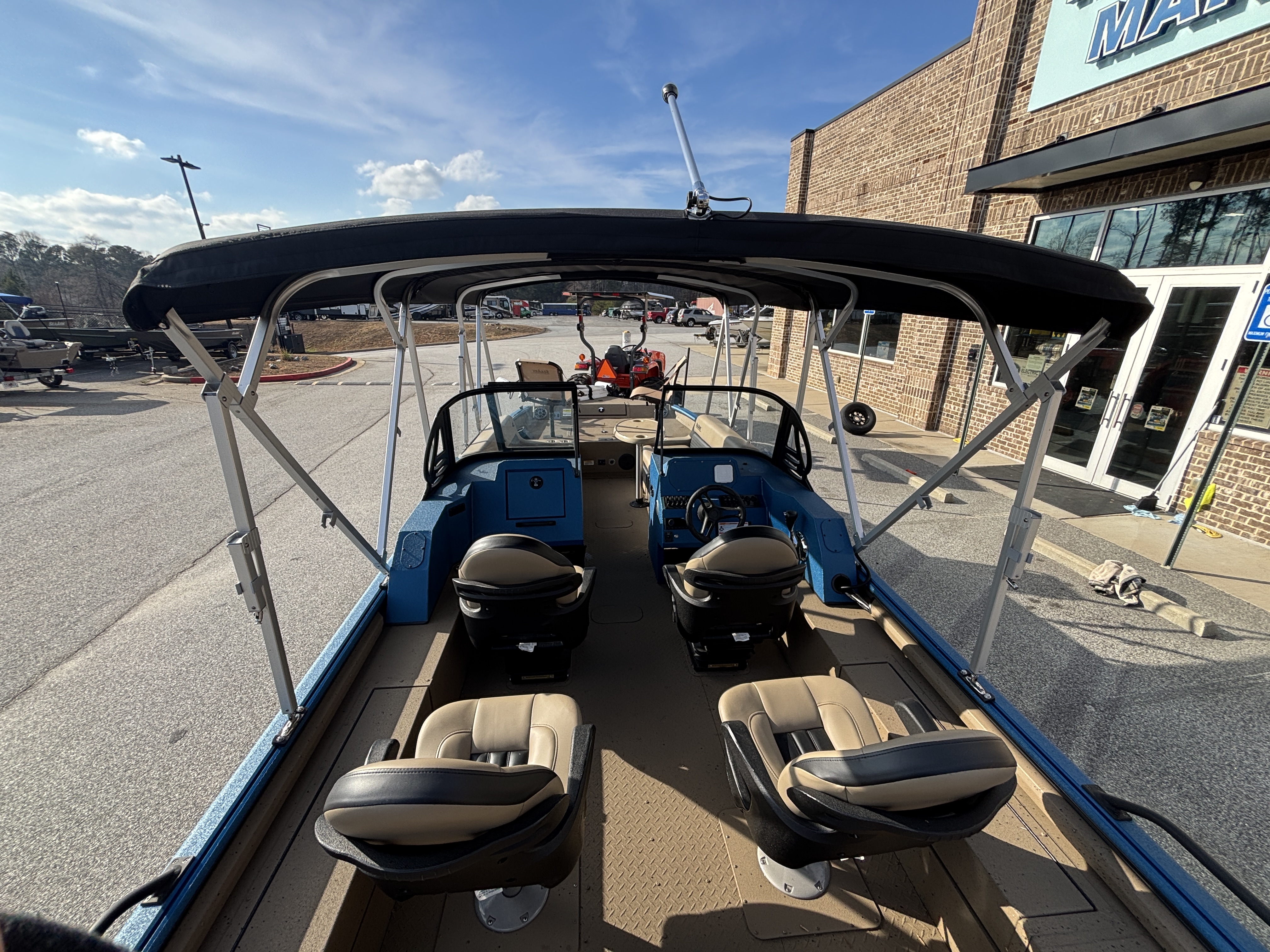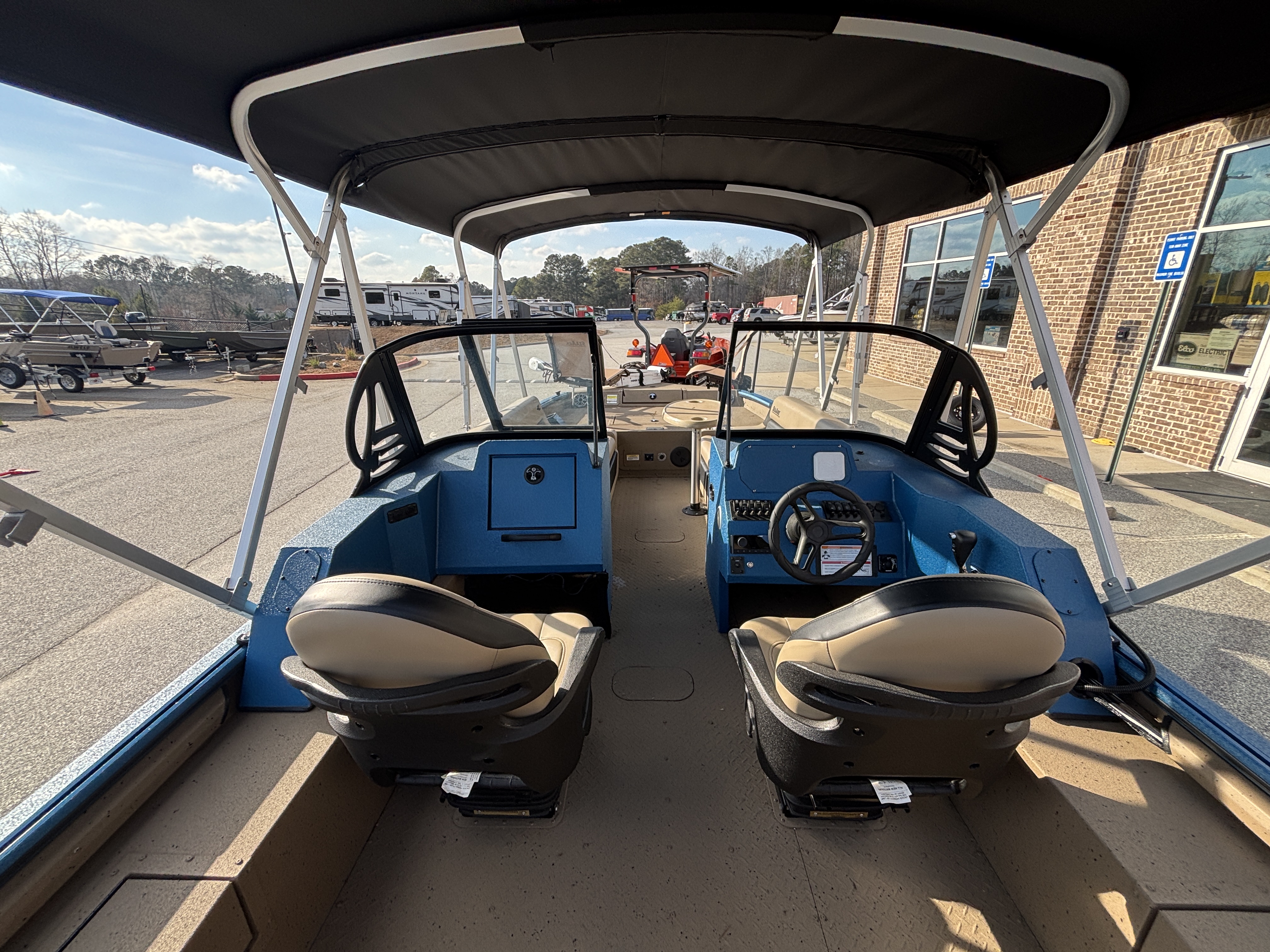 Color Scheme - Dynamic Blue & Tan w/Tan Seating and Interior Splatter Pattern w/ Black Bimini Top