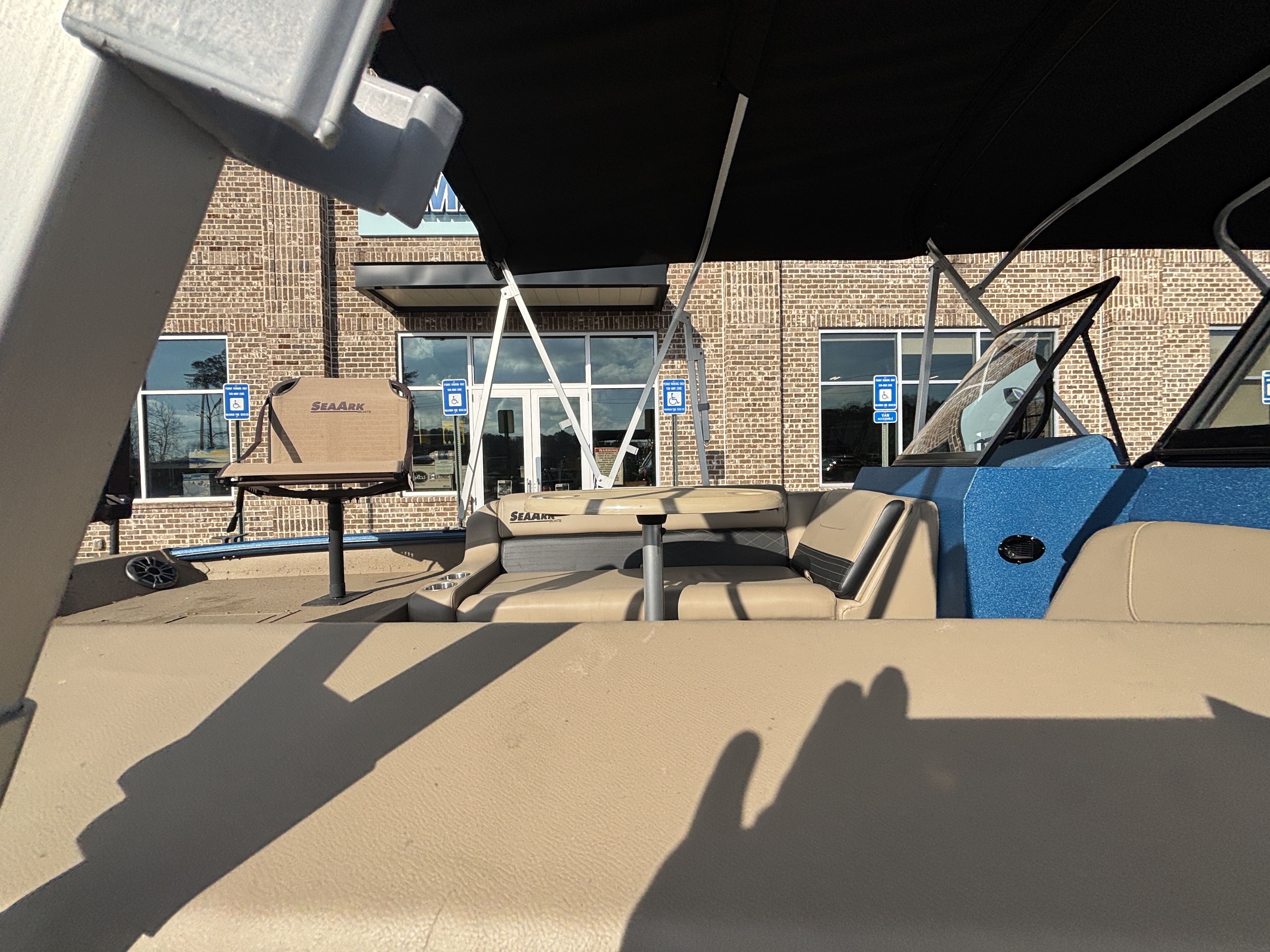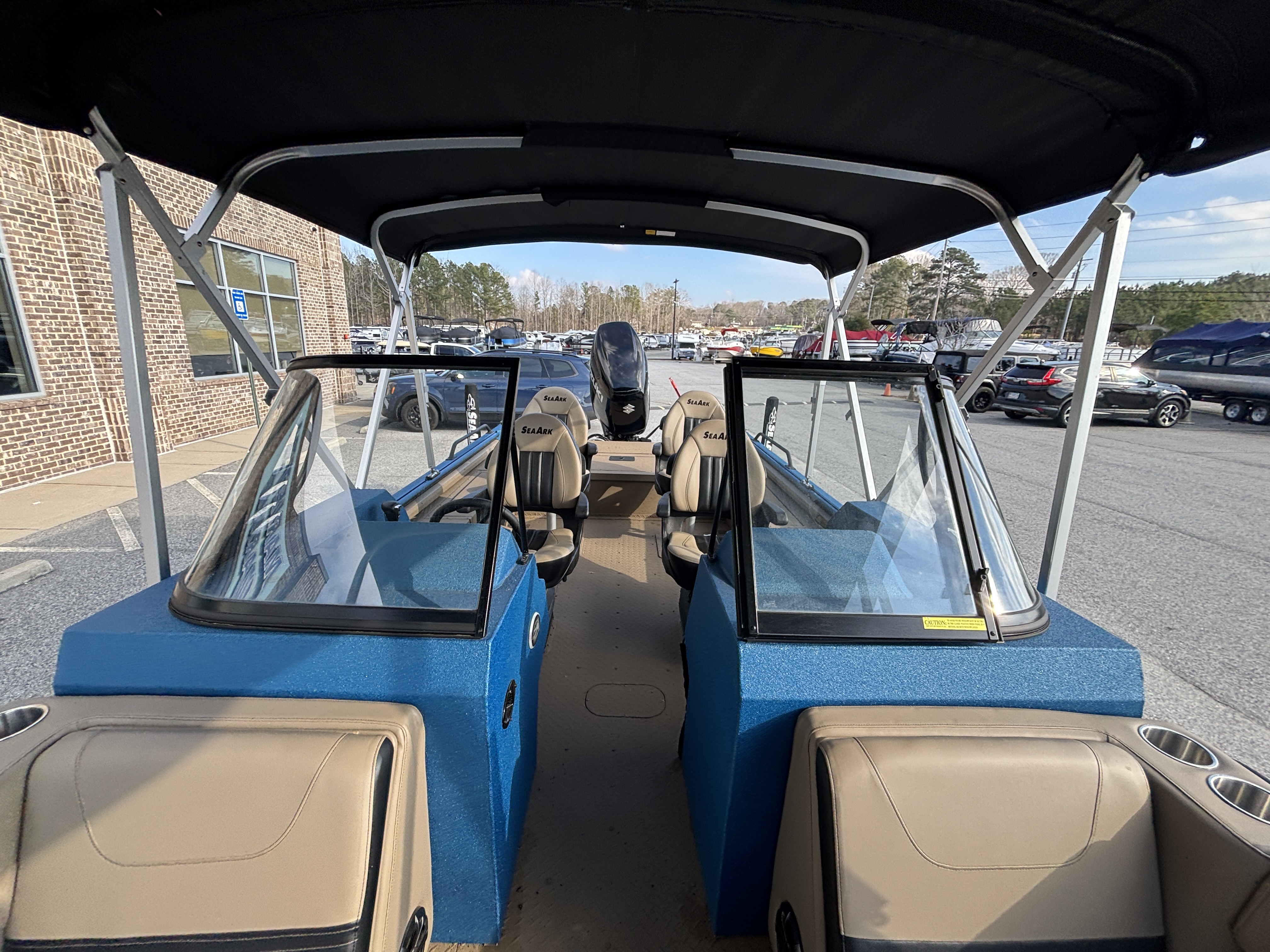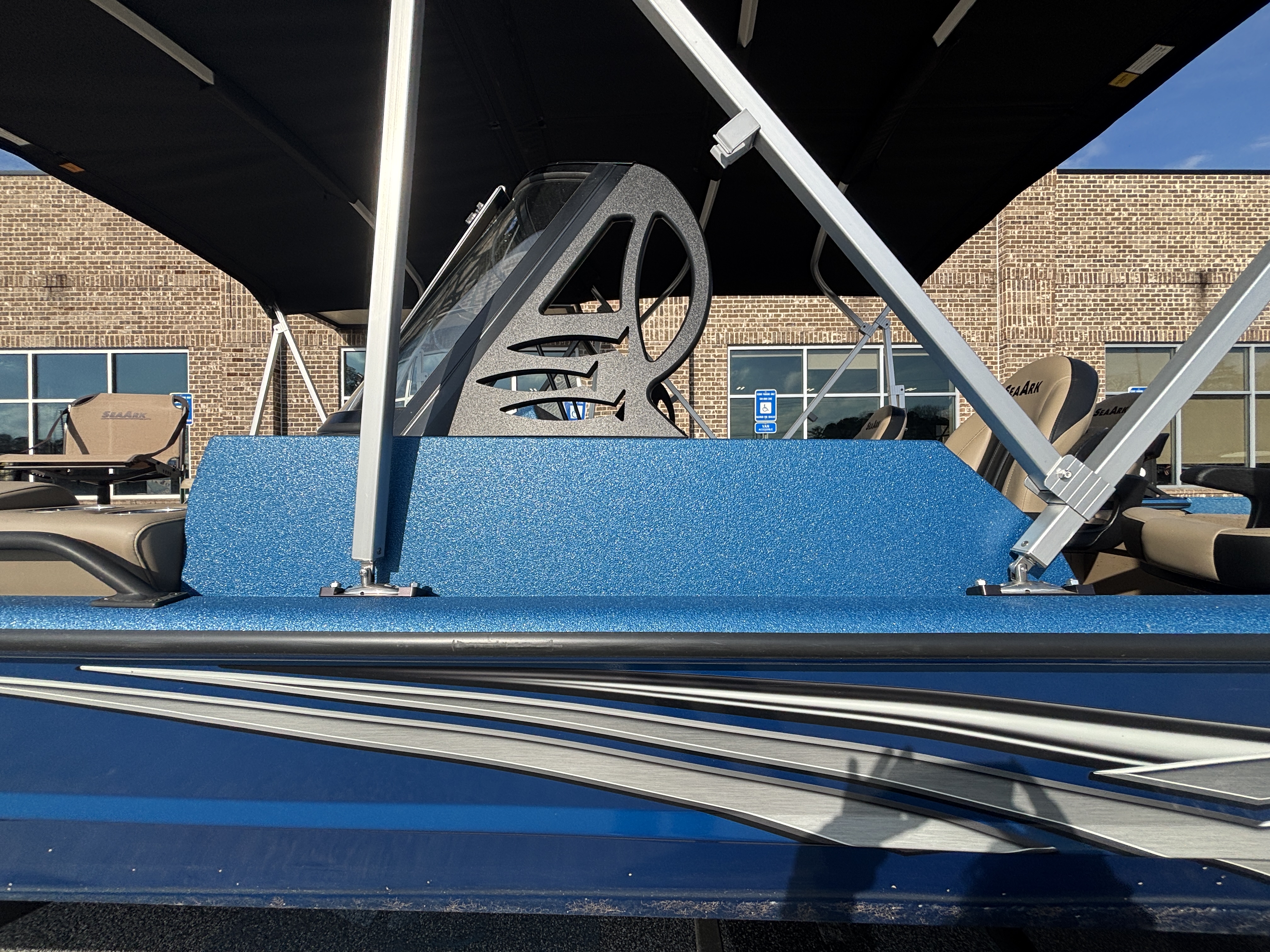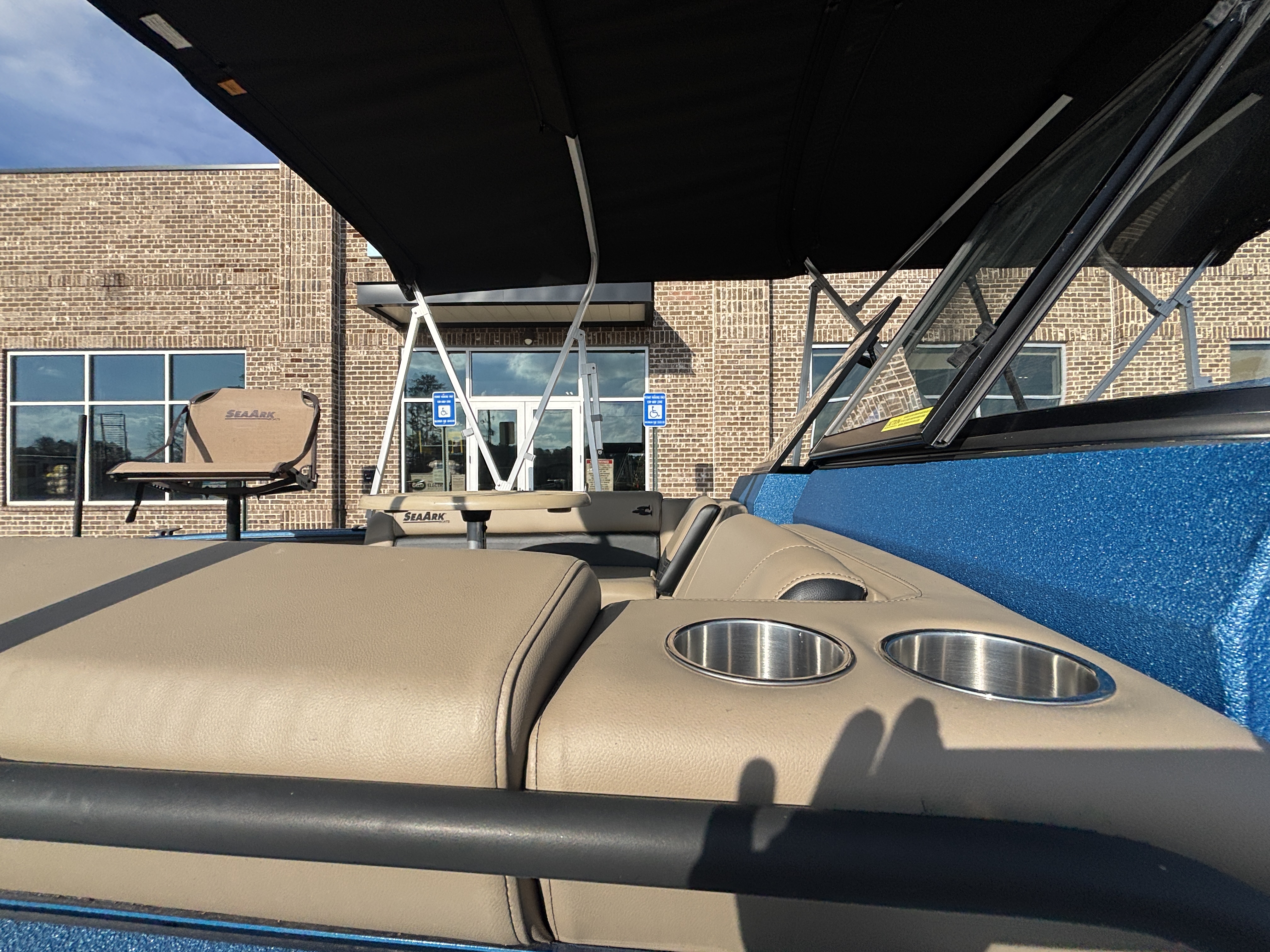Color Scheme - Dynamic Blue & Tan w/Tan Seating and Interior Splatter Pattern w/ Black Bimini Top