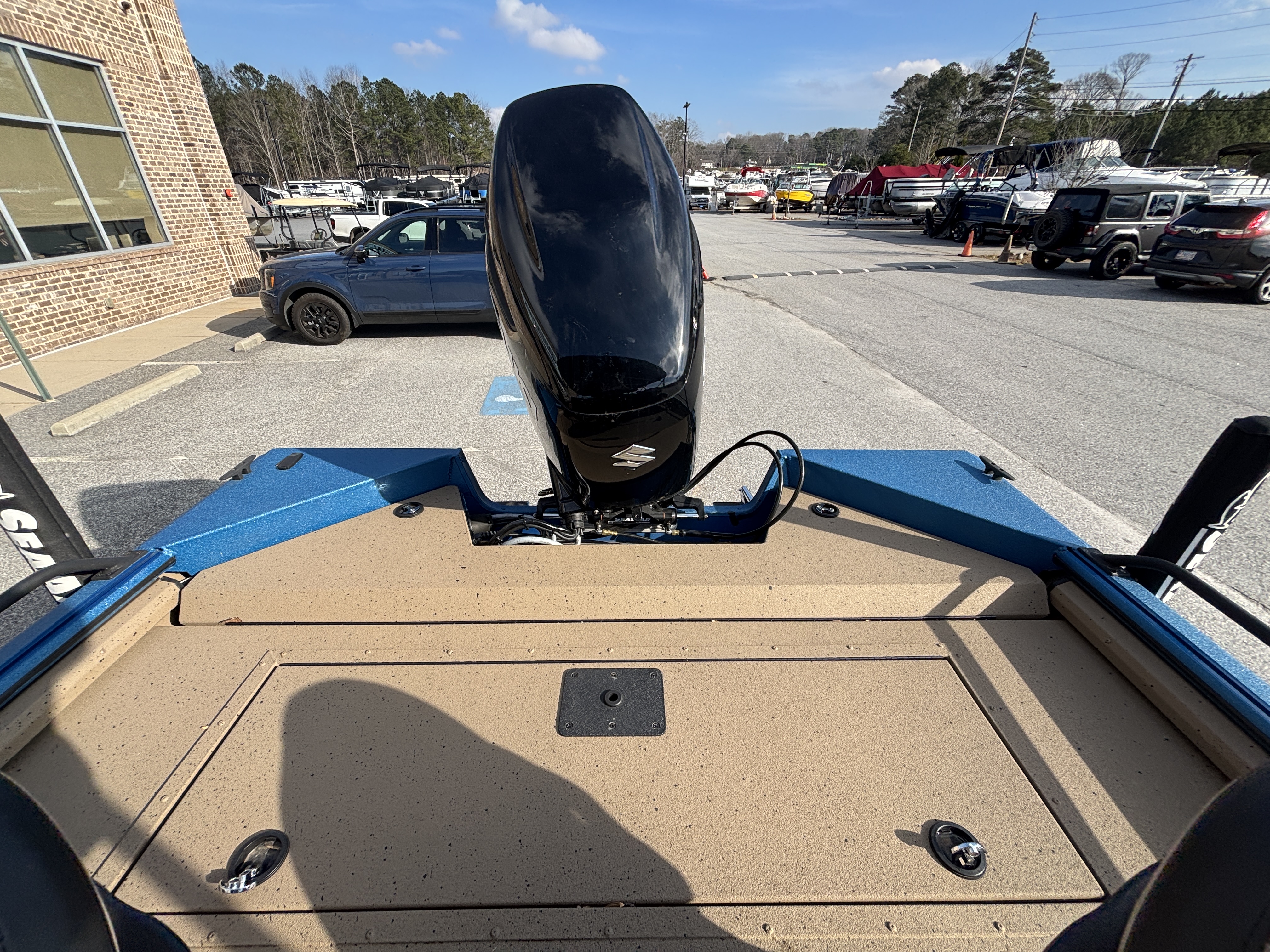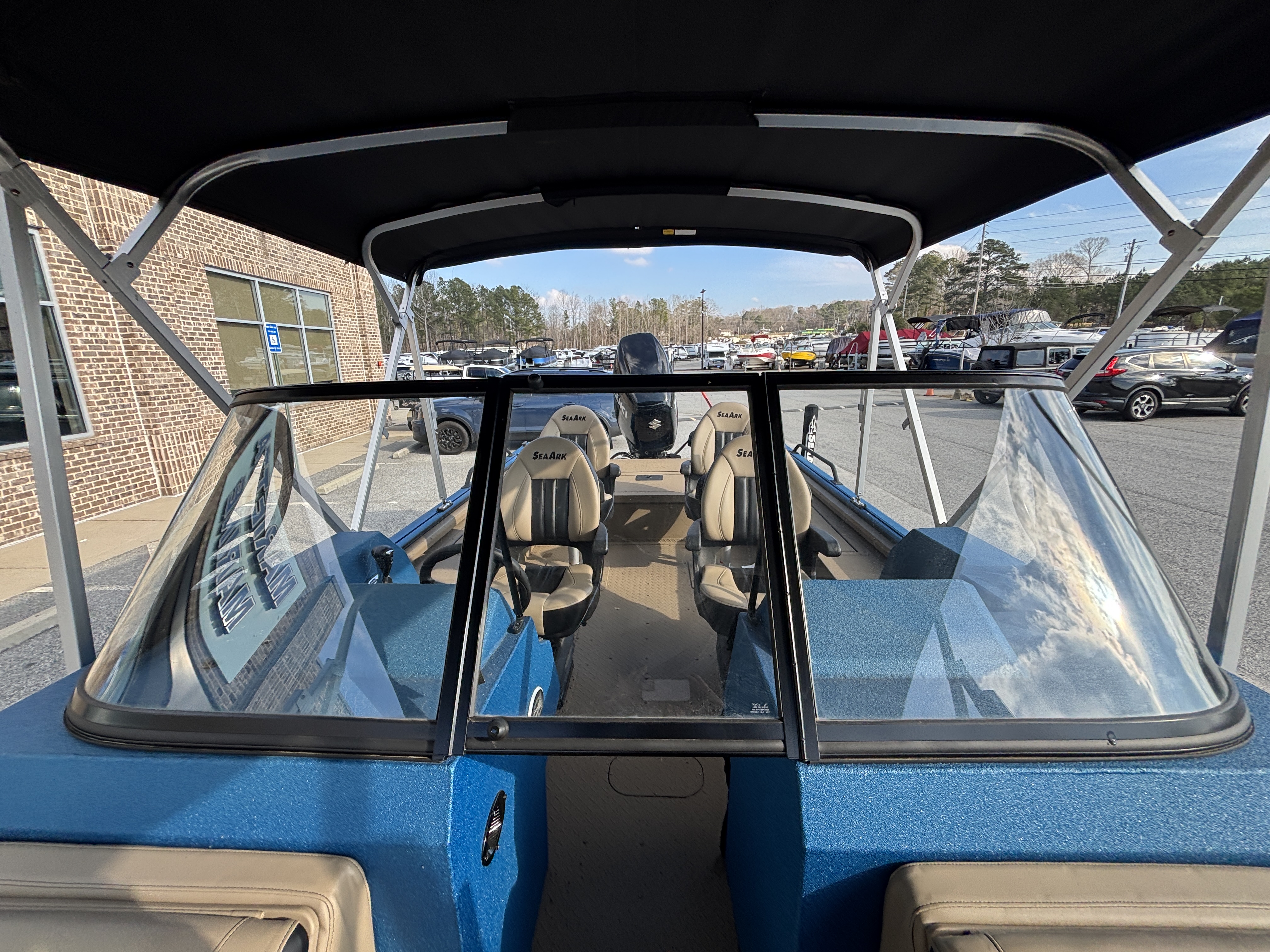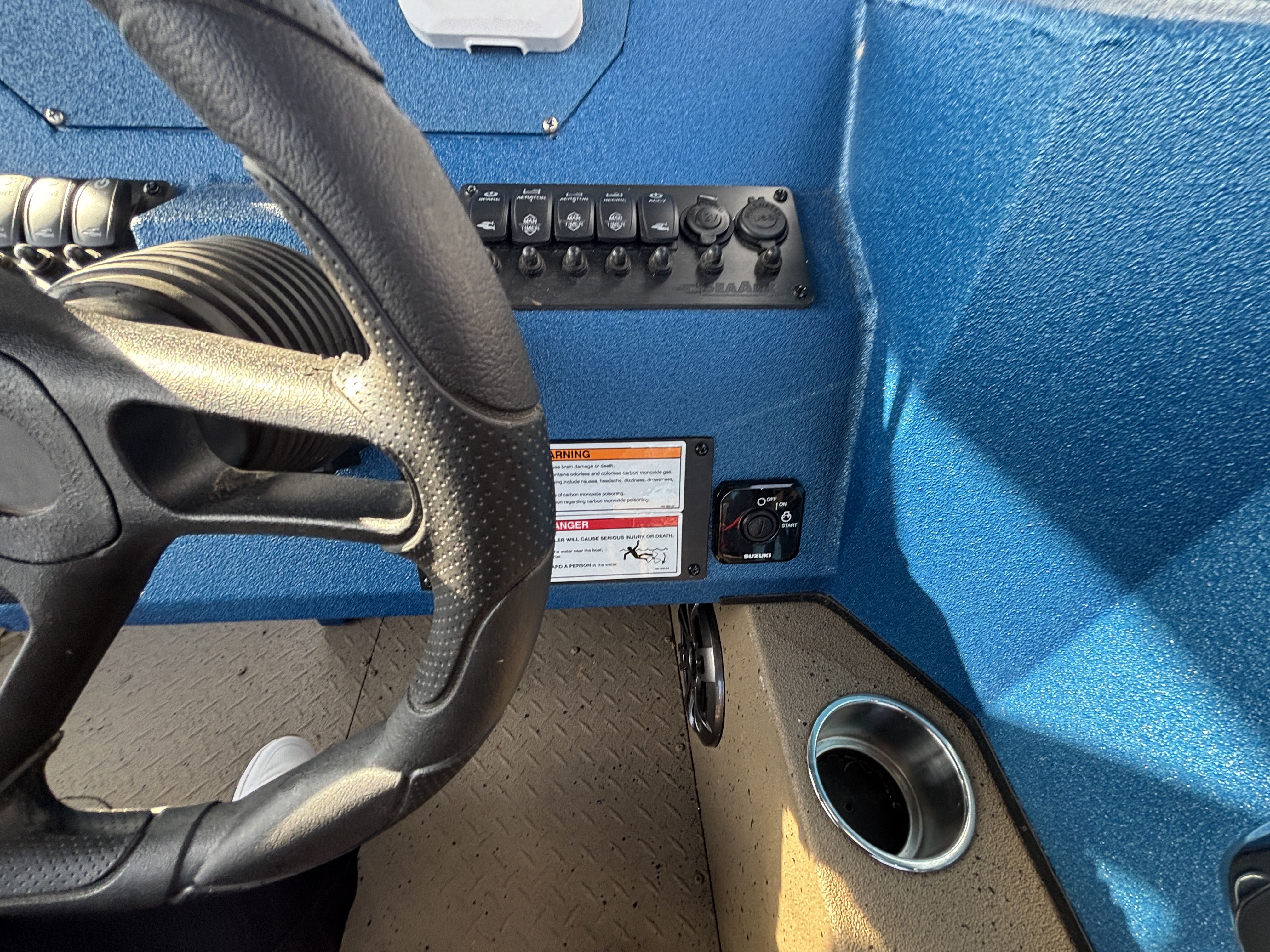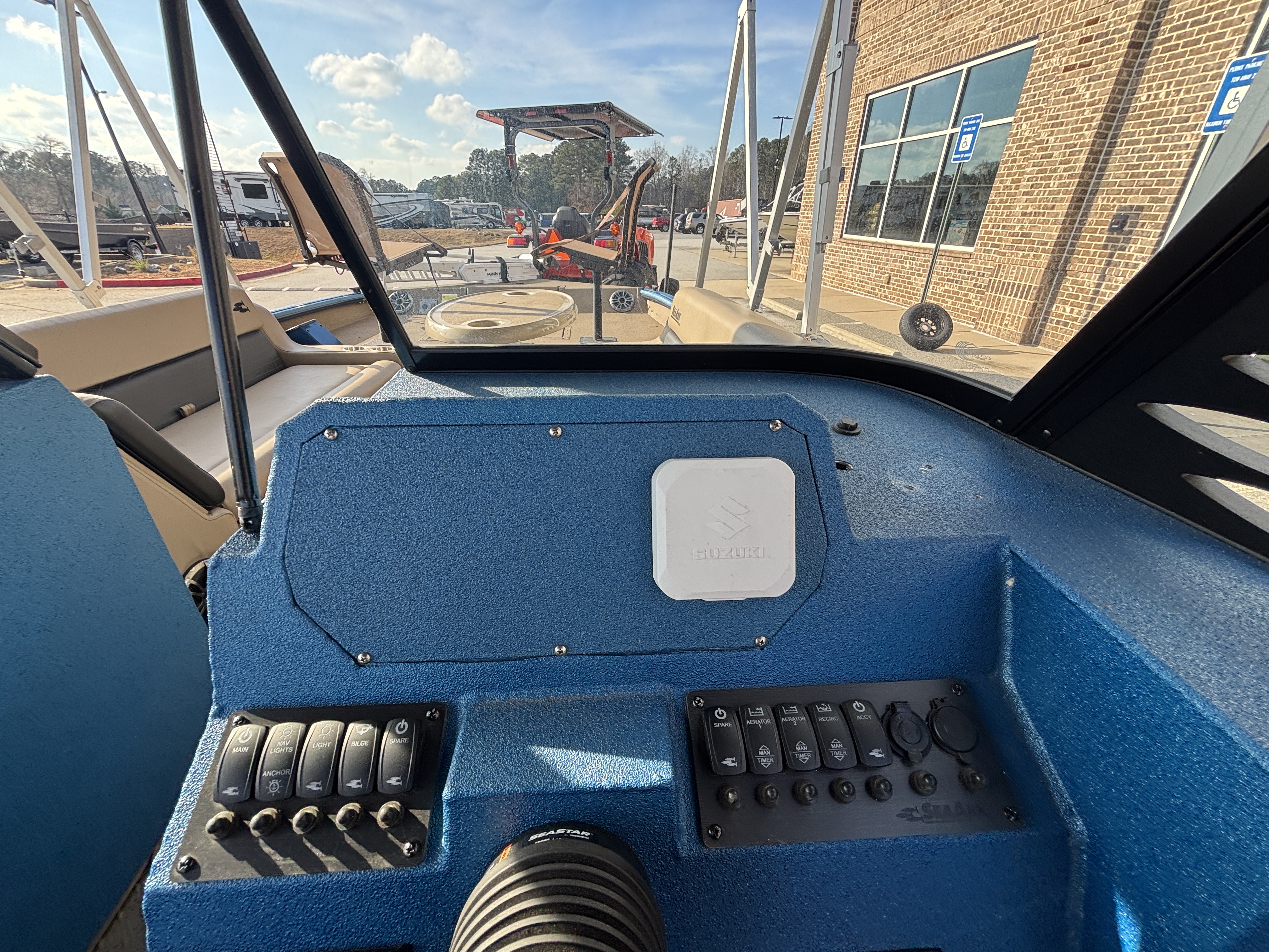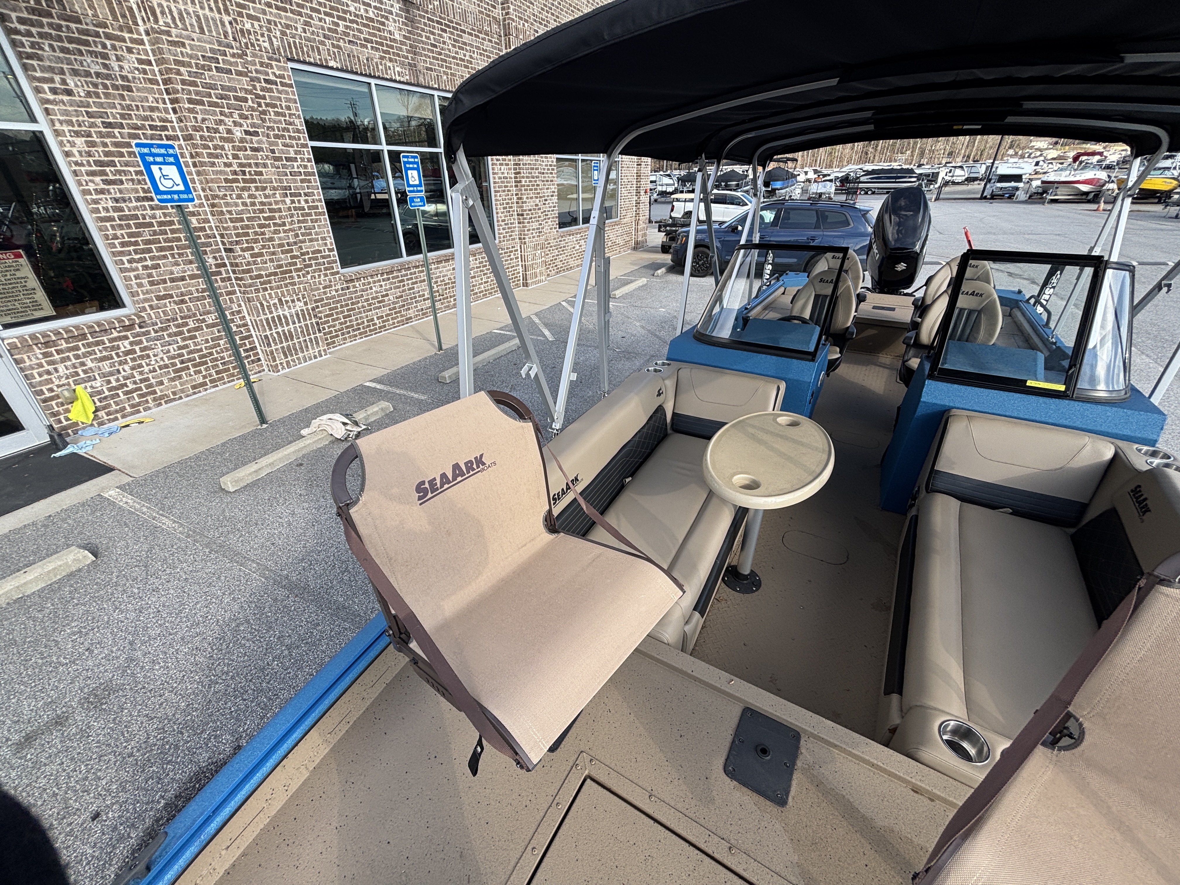 Color Scheme - Dynamic Blue & Tan w/Tan Seating and Interior Splatter Pattern w/ Black Bimini Top
