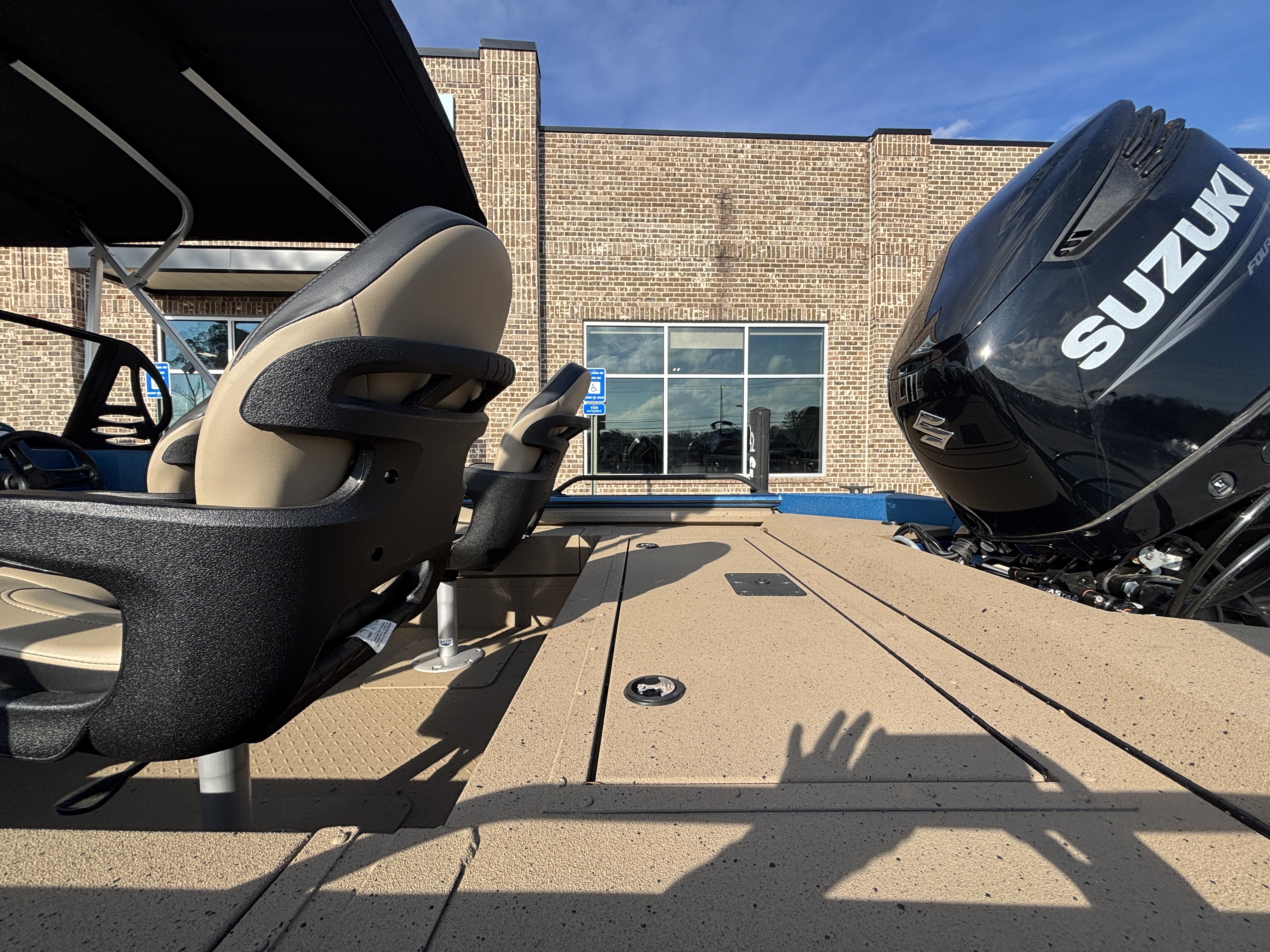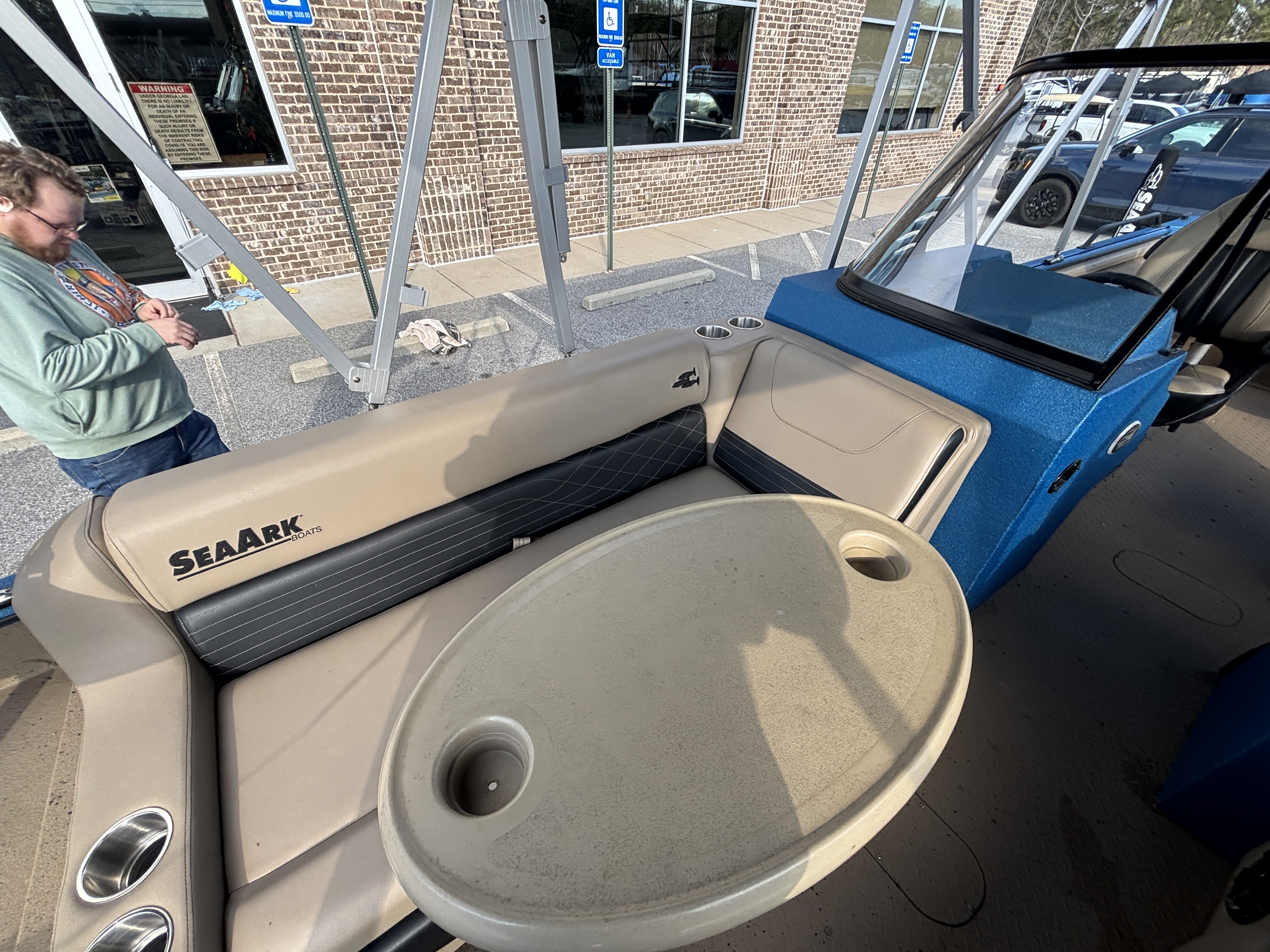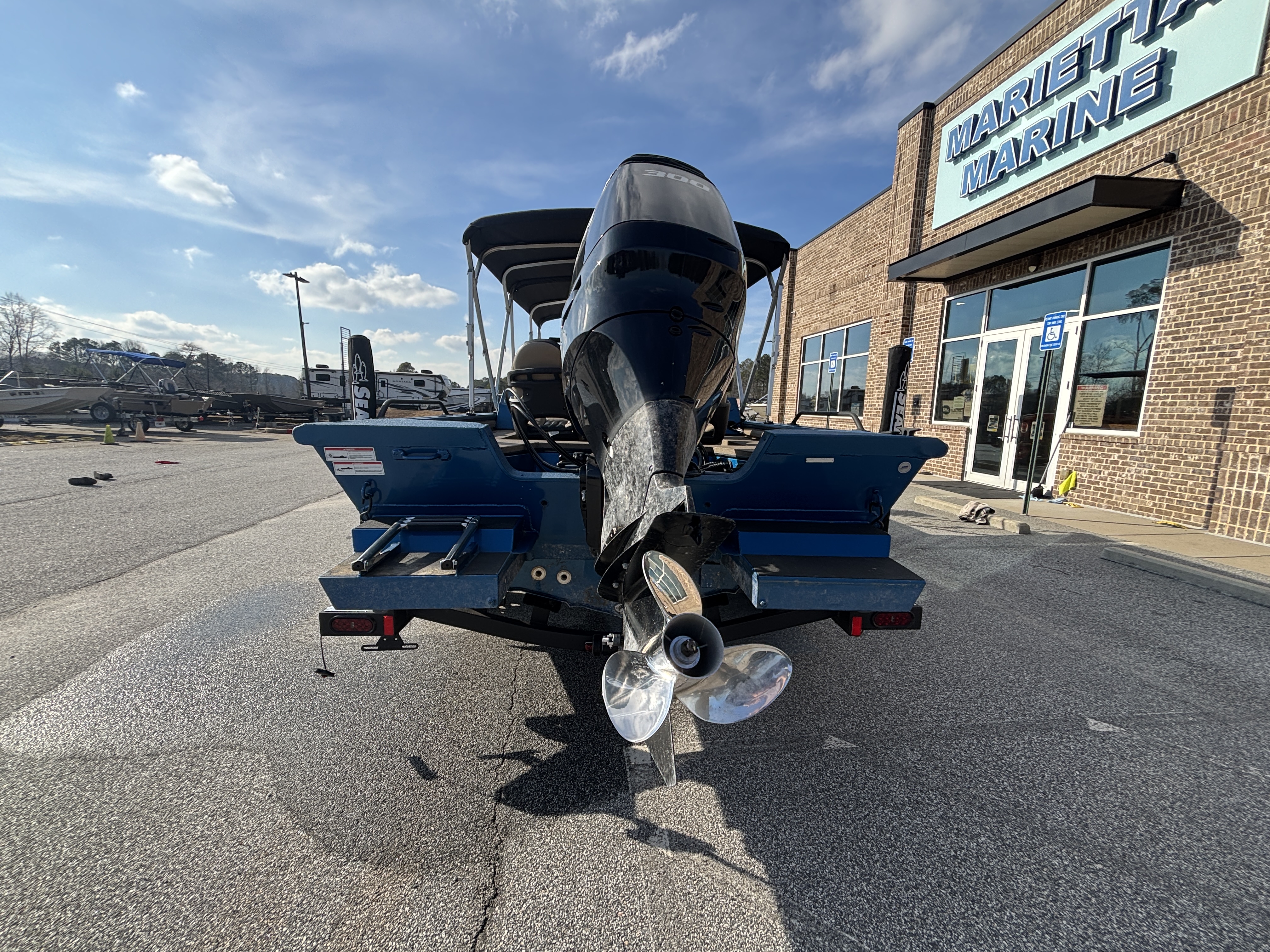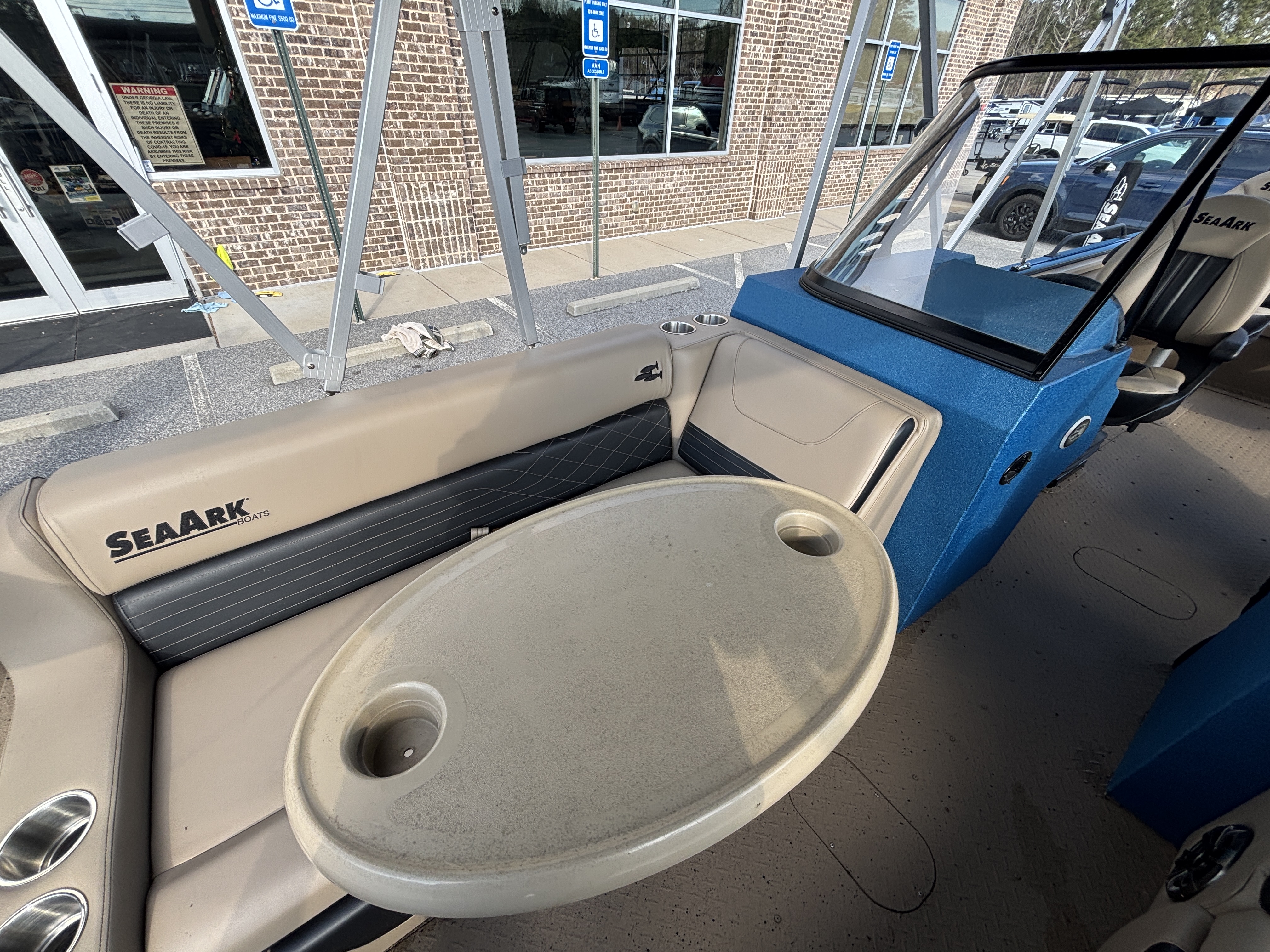 Color Scheme - Dynamic Blue & Tan w/Tan Seating and Interior Splatter Pattern w/ Black Bimini Top