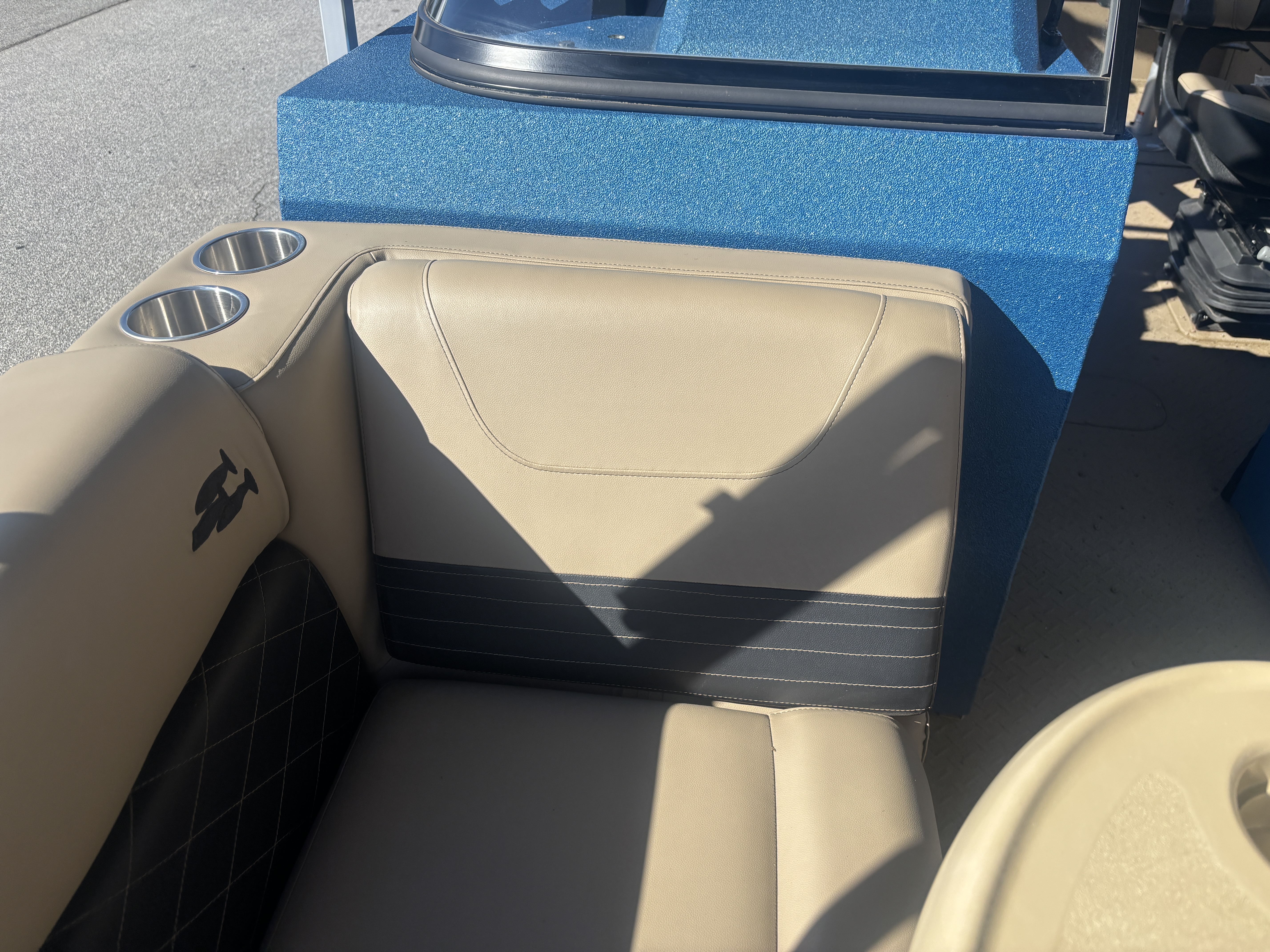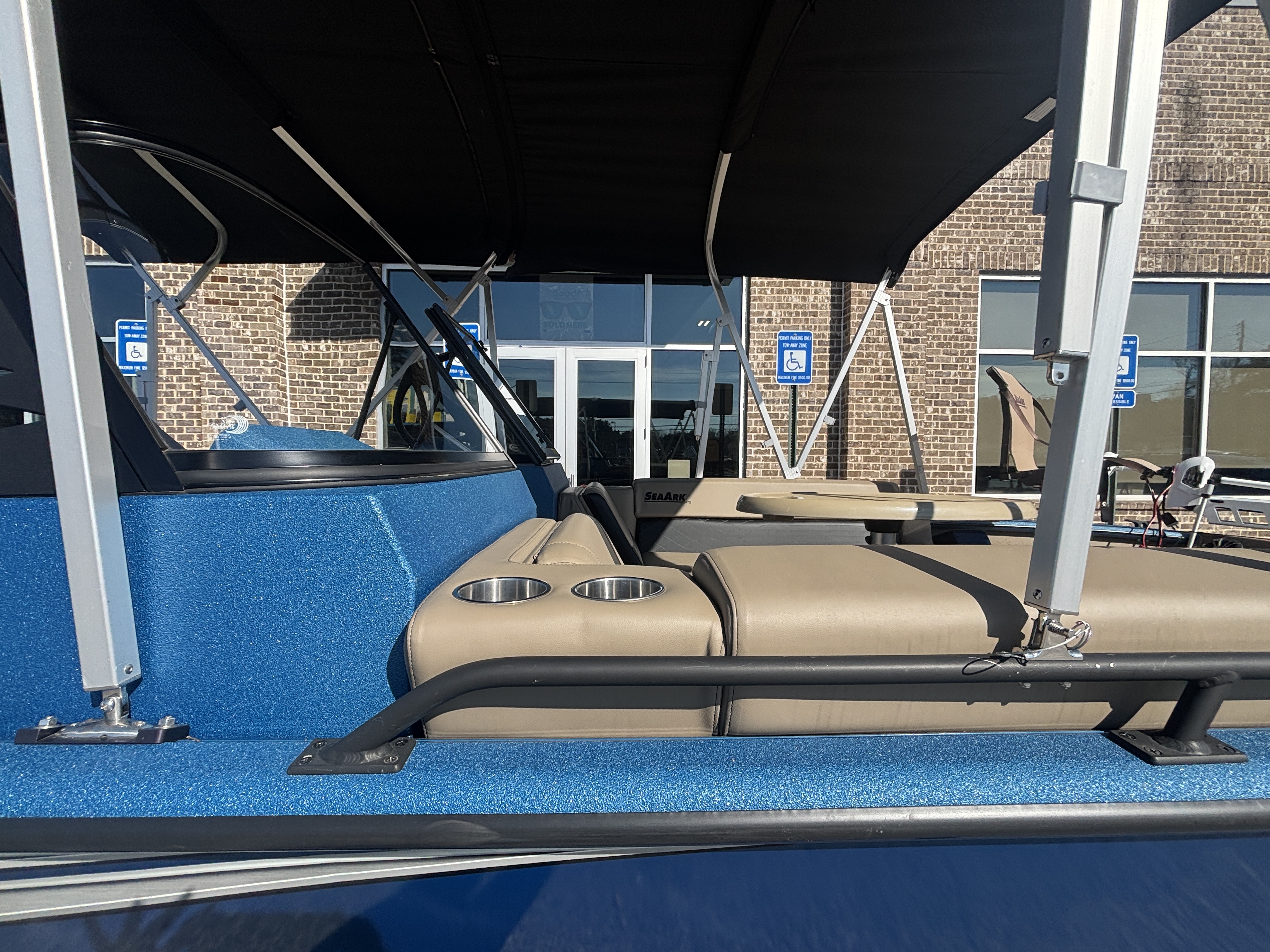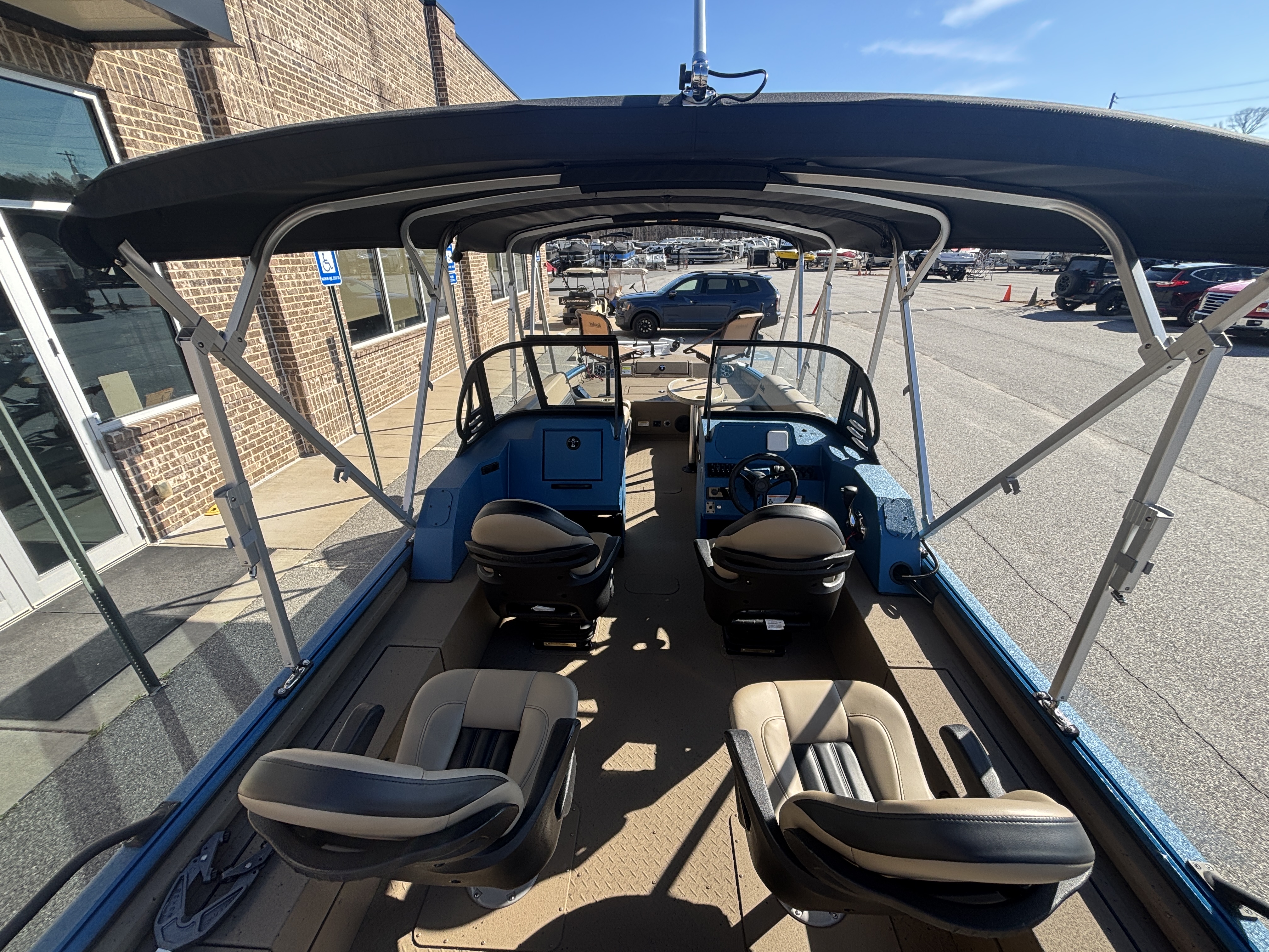 Color Scheme - Dynamic Blue & Tan w/Tan Seating and Interior Splatter Pattern w/ Black Bimini Top