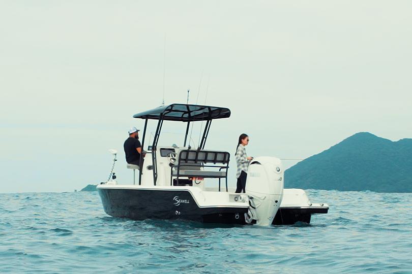 SeaWell’s 240BB cuts through sheltered waters with precision. You pick your outboard up to 300 hp and trust the sandwich-core hull to damp vibrations and give you years of service. Hydraulic steering and trim tabs dial in your ride, while the fibreglass hardtop and SS grab rails keep you safe when the action heats up.
