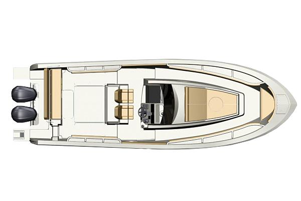 Standard helm instrumentation with compass, courtesy & navigation lights, USB outlet; upgradeable to Simrad/Garmin packages