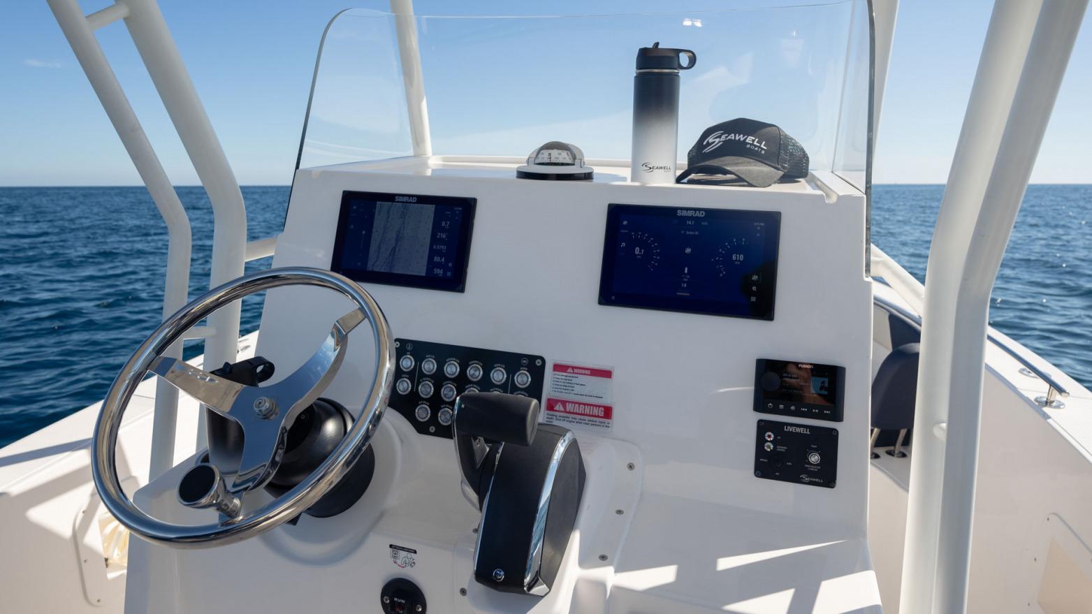 The SeaWell 240CC delivers a precise ride through rivers and bays. Its sandwich-core hull and 175 hp Pro XS outboard cut vibrations and launch you onto plane with ease. Hydraulic steering and trim tabs refine your attitude, giving you confidence whether you’re spotting structure or cruising to the next spot.