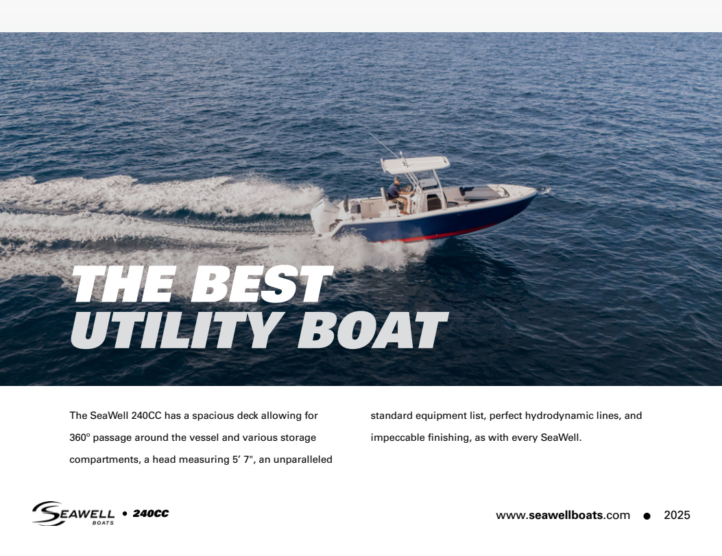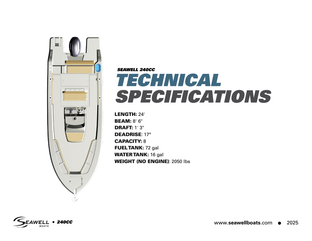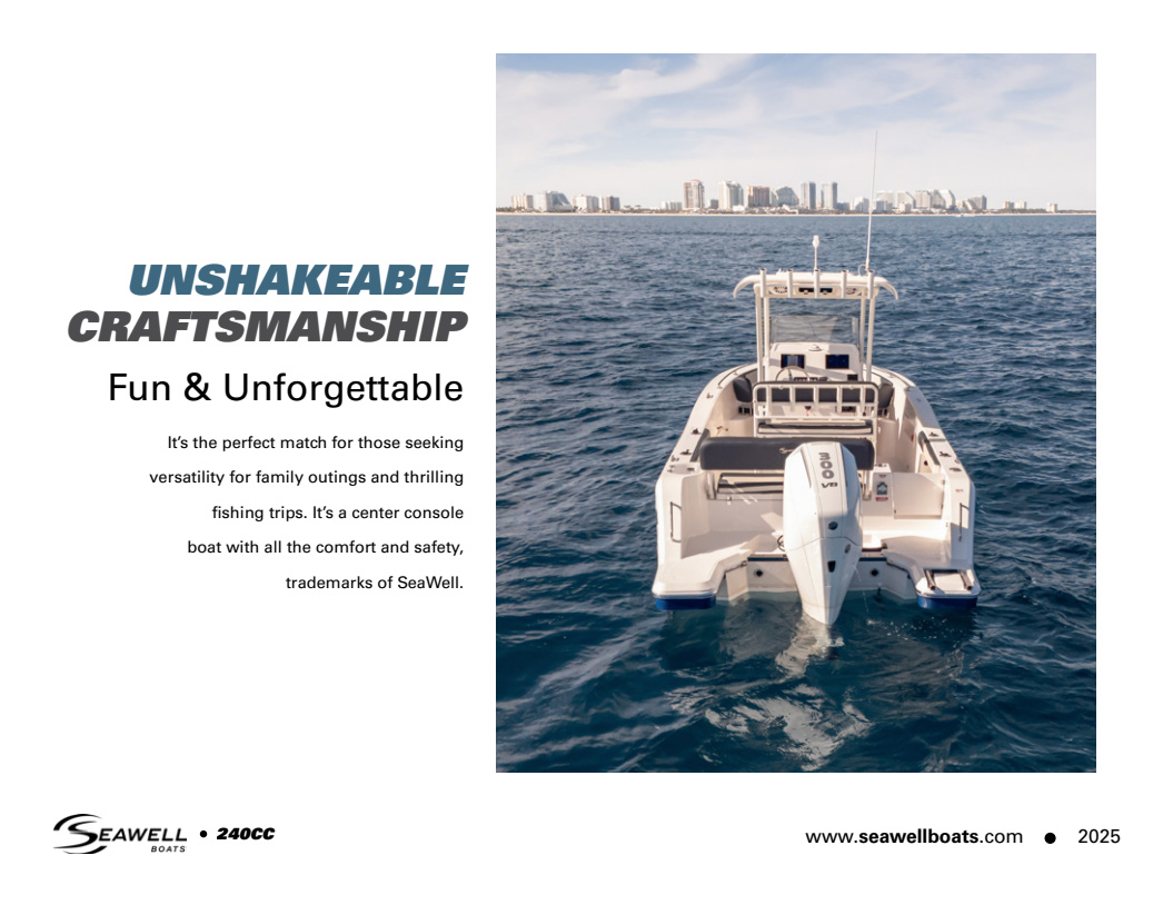 The SeaWell 240CC It’s the perfect match for those seeking versatility for family outings and thrilling fishing trips. It’s a center console boat with all the comfort and safety, trademarks of SeaWell.