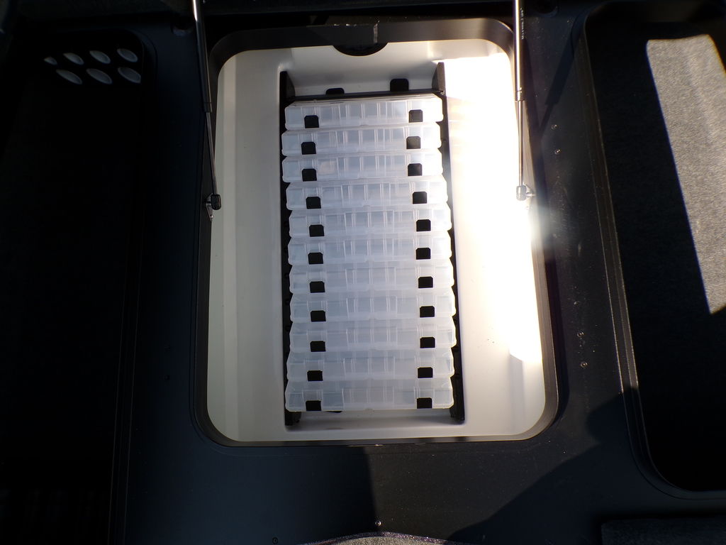 - Large Single Lid Center Box w/ Integrated Tackle Storage