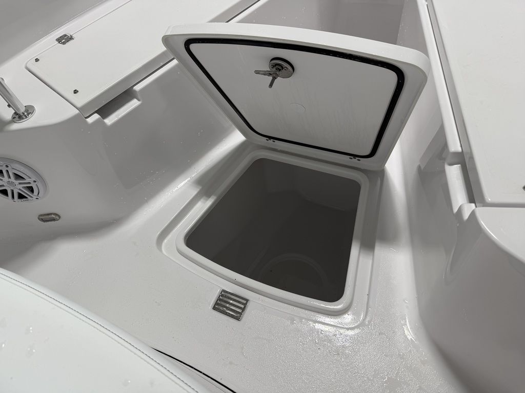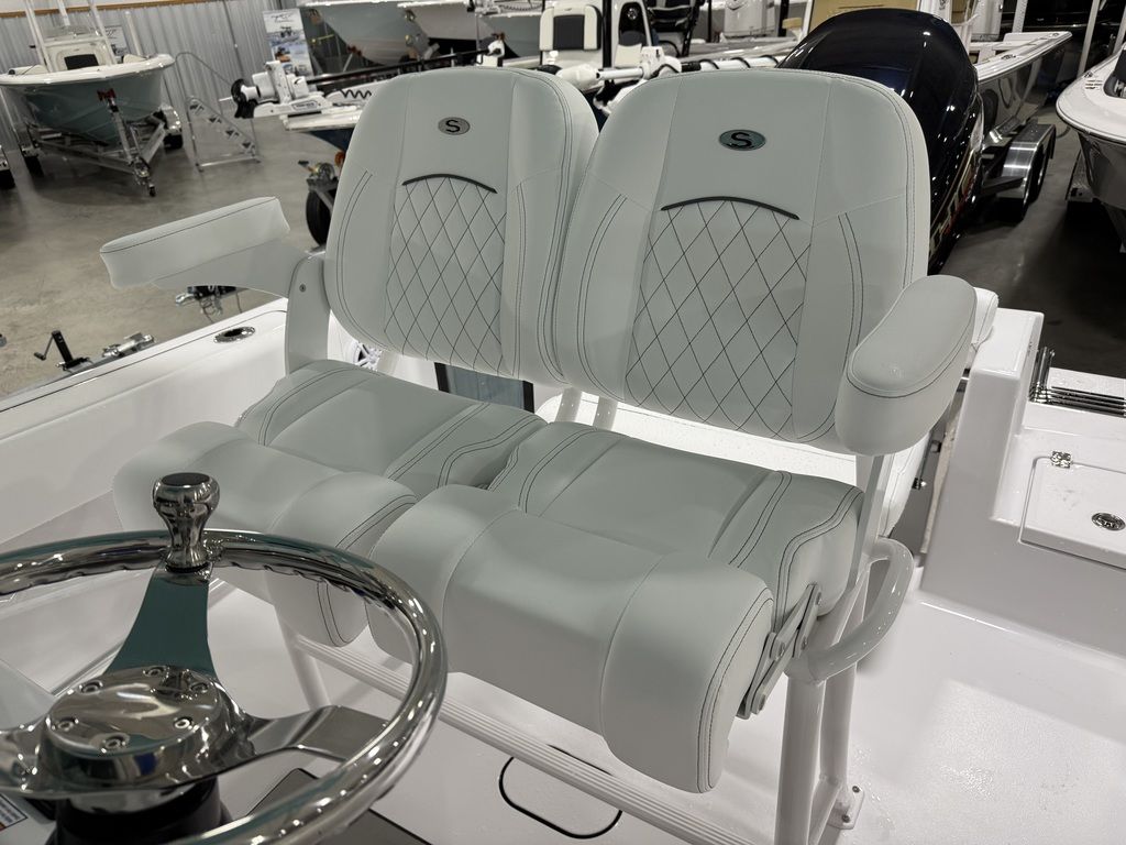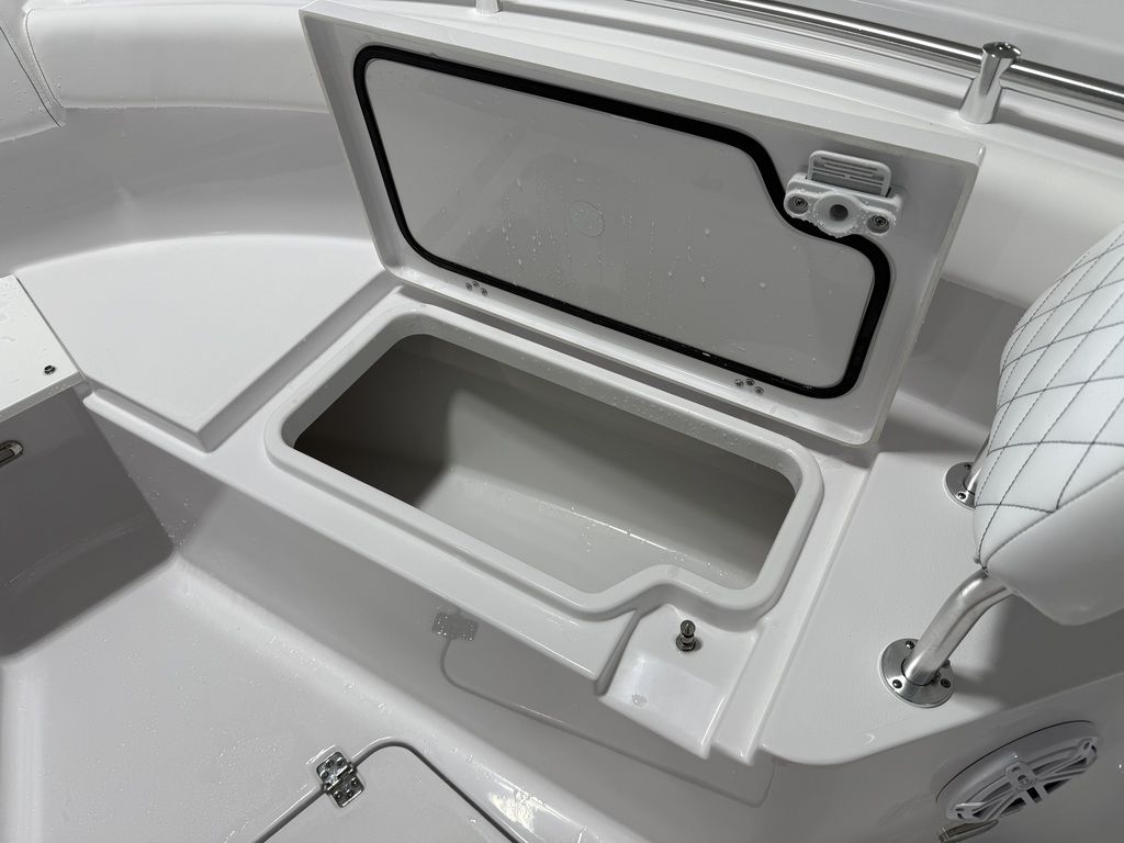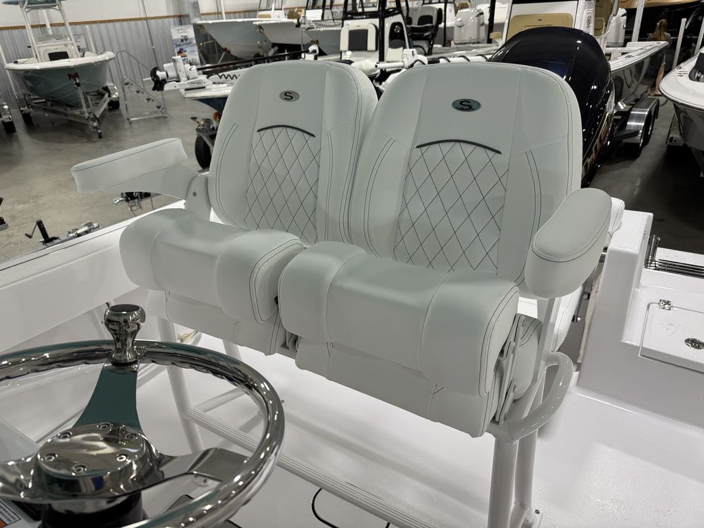 SportLink® Electronics Integration System Dual Battery Configuration w/ Switch & Trays Fiberglass Hard-Top w/ Integrated D-Tubing Frame Garmin Apollo™ RA670 Premium Stereo w/ SportTuun Garmin GT12M 350w CHIRP Bronze Thru-Hull Transducer Garmin VHF 115 Radio w/ Antenna Integrated Hard-Top Navigation Lights (Lumitec) Integrated Tempered Glass Windshield w/ Vent JL Audio M3-650X Gloss White Sport Grille Speakers Seakeeper Ride VACS Bow Cushion Set w/ Bolsters Bow Filler Board w/ Cushion Deluxe Leaning Post w/ Flip Up Bolsters Rear Fold Down Seat w/ Access Removable Bow Backrest 10 Gallon Freshwater Tank w/ Washdown 20 Quart Built-In Console Cooler Seat 25 Gallon Aquarium Livewell King Fish Rod Holders Raw Water Washdown 10-Year Hull Warranty 70 Gallon Fuel Tank w/ Fuel Level Sensor Built-In Swim Platform w/ 4-Step Ladder Dual Fuel Fills NMMA Certified Port and Starboard Toe Rail Recessed Bow Hand Rails Stern Anchor Storage Box w/ Anchor & Line Total Access Hatch Trolling Motor Battery Storage