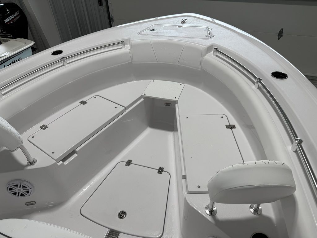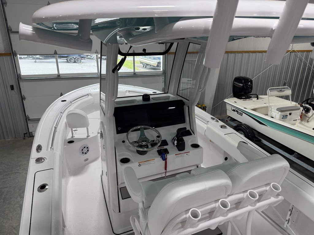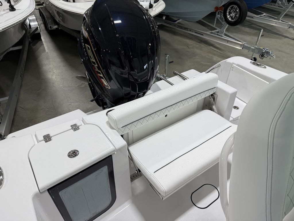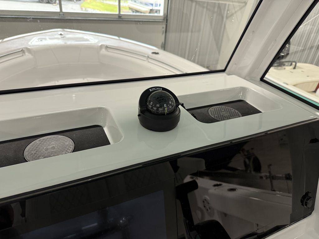 SportLink® Electronics Integration System Dual Battery Configuration w/ Switch & Trays Fiberglass Hard-Top w/ Integrated D-Tubing Frame Garmin Apollo™ RA670 Premium Stereo w/ SportTuun Garmin GT12M 350w CHIRP Bronze Thru-Hull Transducer Garmin VHF 115 Radio w/ Antenna Integrated Hard-Top Navigation Lights (Lumitec) Integrated Tempered Glass Windshield w/ Vent JL Audio M3-650X Gloss White Sport Grille Speakers Seakeeper Ride VACS Bow Cushion Set w/ Bolsters Bow Filler Board w/ Cushion Deluxe Leaning Post w/ Flip Up Bolsters Rear Fold Down Seat w/ Access Removable Bow Backrest 10 Gallon Freshwater Tank w/ Washdown 20 Quart Built-In Console Cooler Seat 25 Gallon Aquarium Livewell King Fish Rod Holders Raw Water Washdown 10-Year Hull Warranty 70 Gallon Fuel Tank w/ Fuel Level Sensor Built-In Swim Platform w/ 4-Step Ladder Dual Fuel Fills NMMA Certified Port and Starboard Toe Rail Recessed Bow Hand Rails Stern Anchor Storage Box w/ Anchor & Line Total Access Hatch Trolling Motor Battery Storage