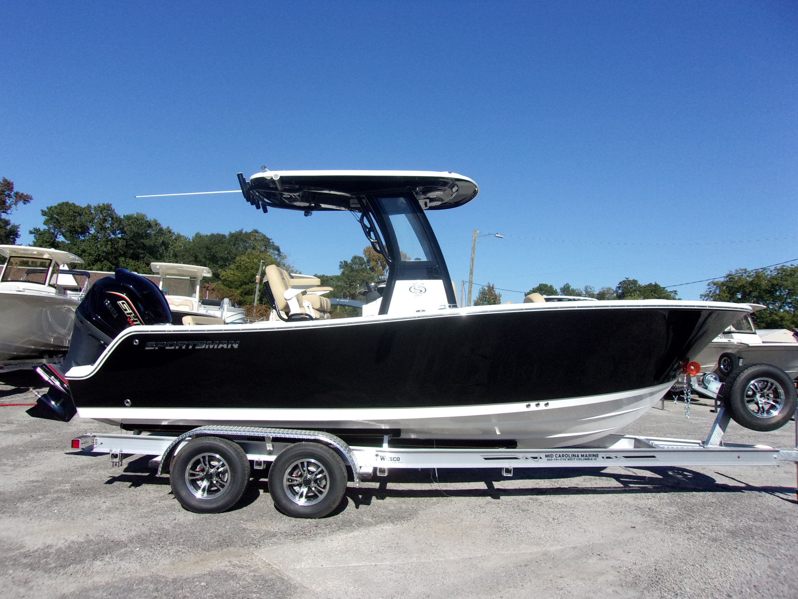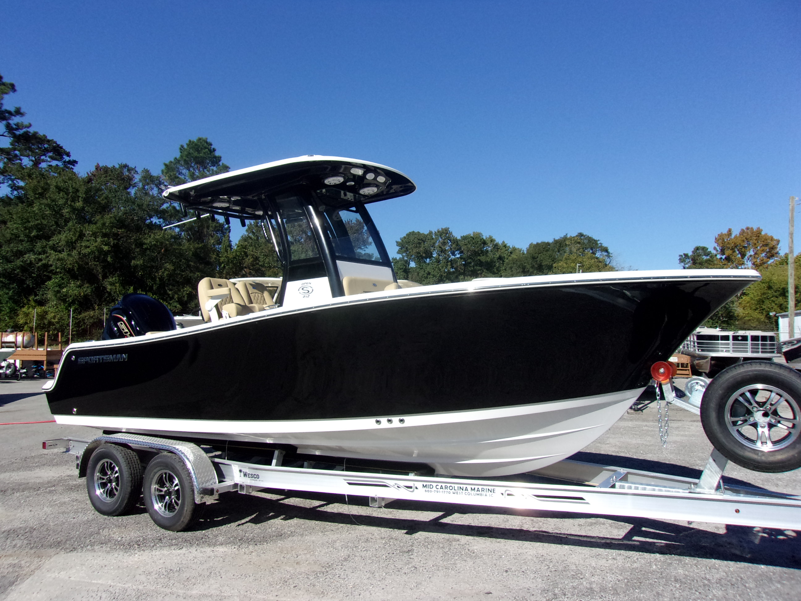 2025 Sportsman Open 212 with Yamaha VF-250 V-Max with Wesco tandem axle trailer! Factory options include premium lean post with armrest, under lean post tackle storage and trolling motor plug! Engine Horsepower: 150 bhp; 111.9 kW